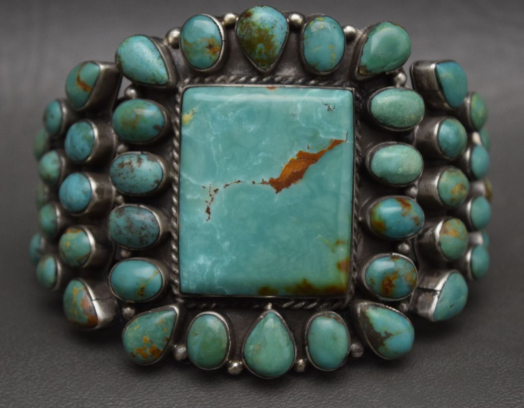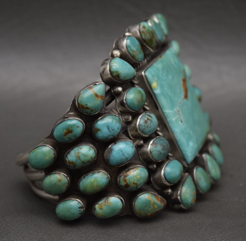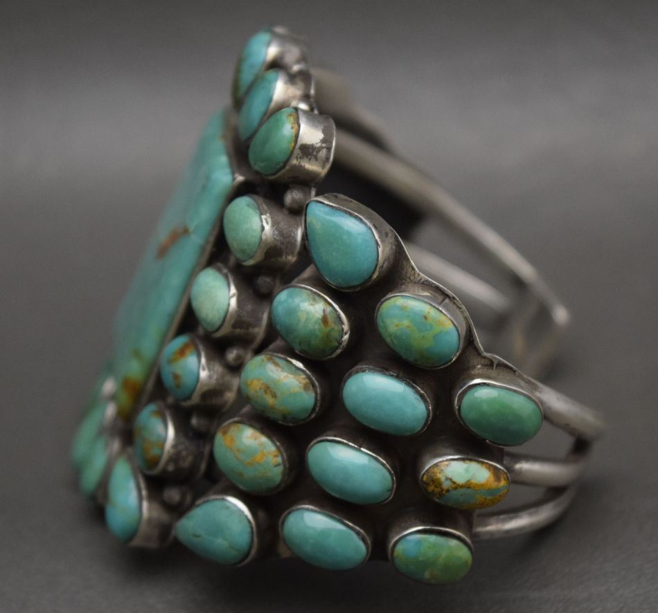 1980's sterling silver with turquoise cluster 2.25'' x 6'' x 1.25''