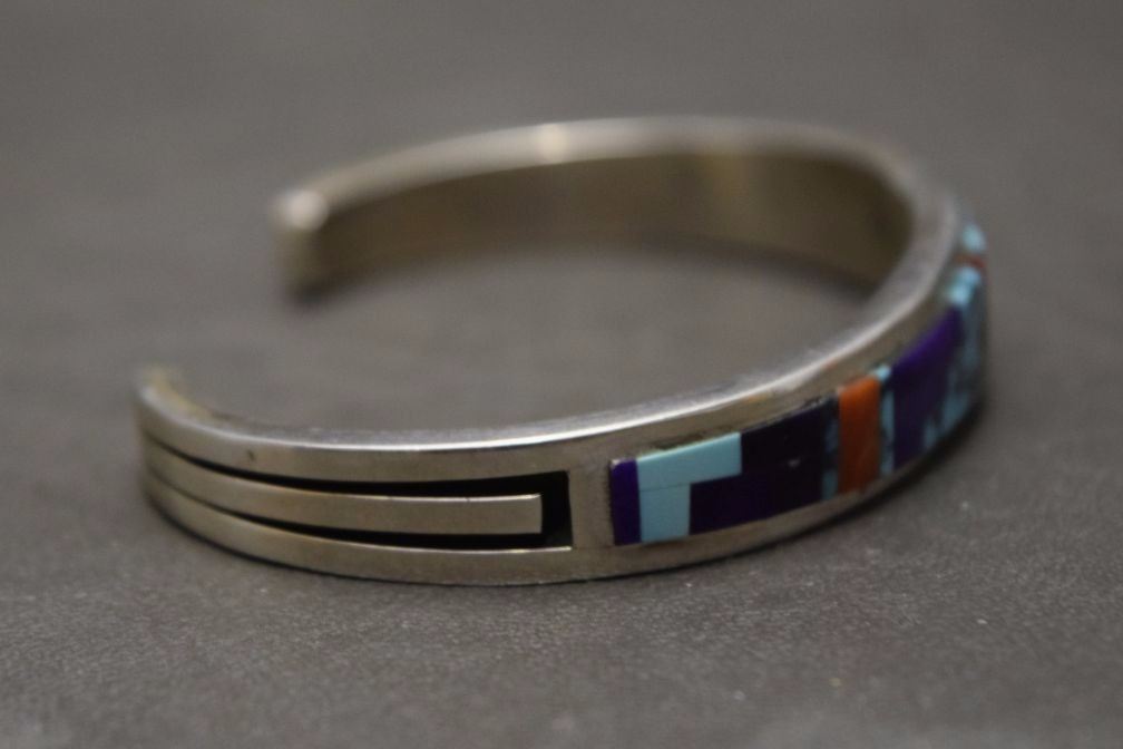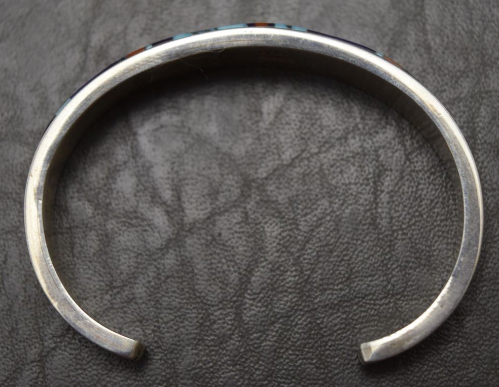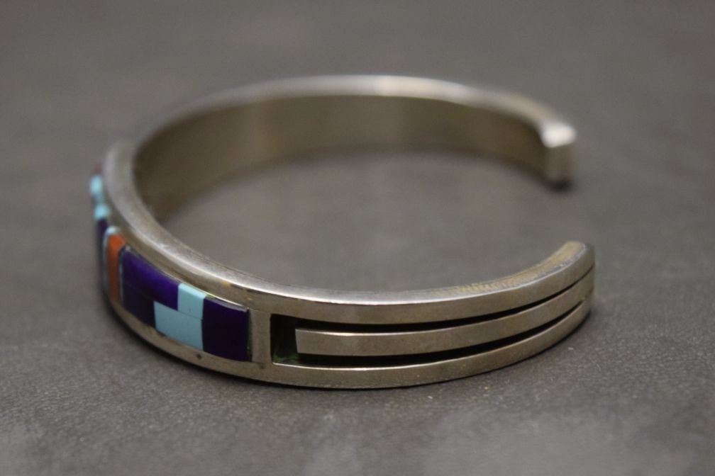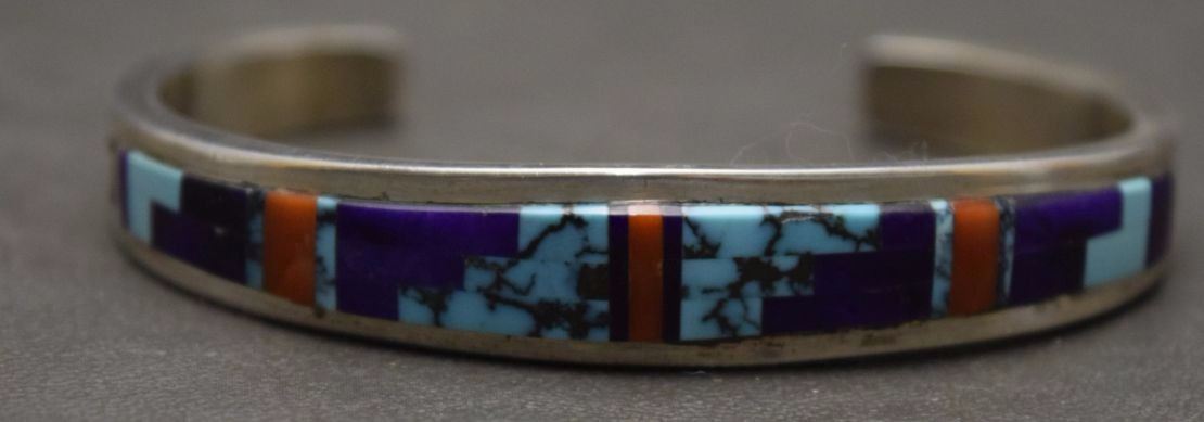 1980's mosaic in lay turquoise coral marked WM .5'' x 5.25'' x 1.25'' total weight 28 grams