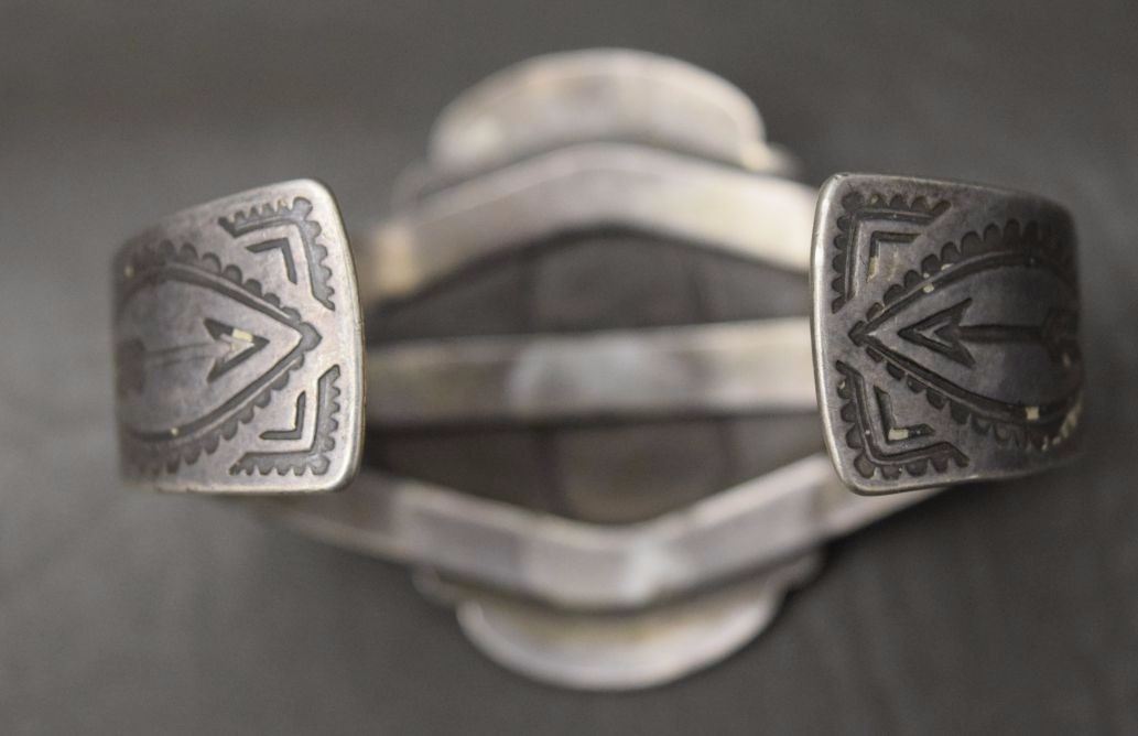 Damage that is visible in photos we do not note in description. Unless noted NO damage. All items have some amount of acceptable wear, scratches, nicks, missing stitches, etc. for their age. Measurements on paintings, pictures and prints are image size, paintings, pictures and prints that are in frames have not been examined outside the frame. Bracelets measurements are inside circumference, width, opening. Weight on jewelry includes stones, leather from Concho belts and bolos removed when possible.