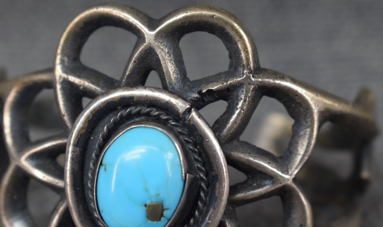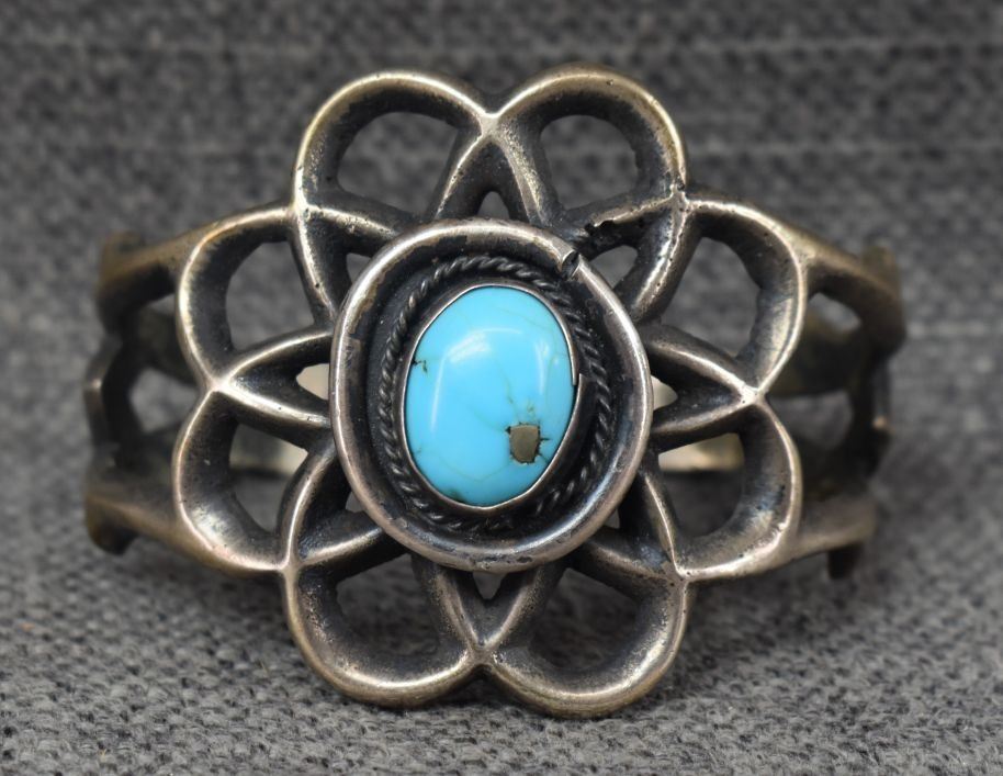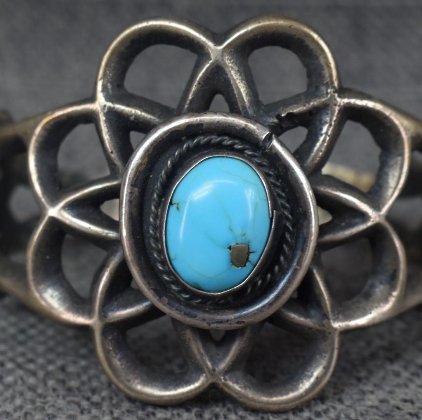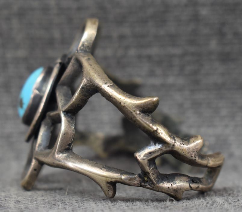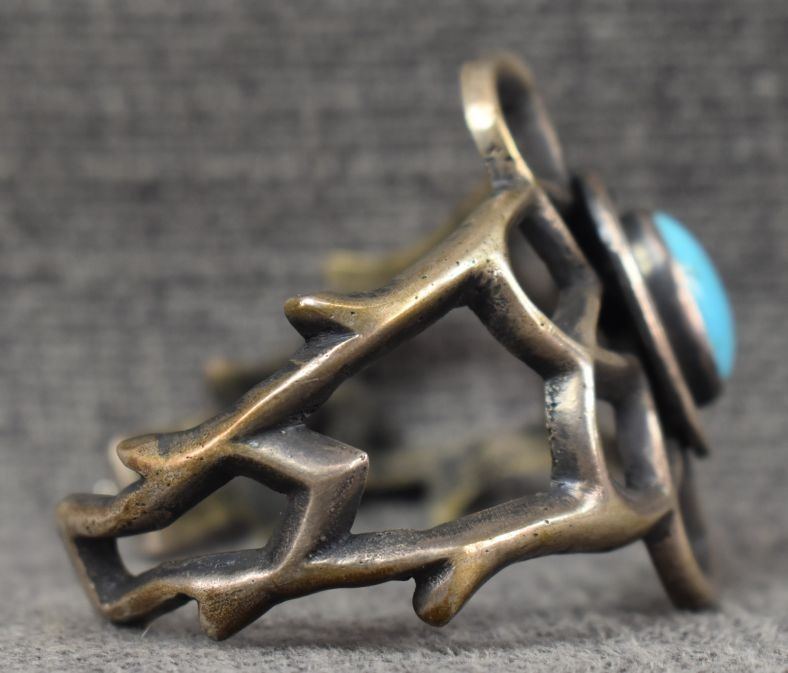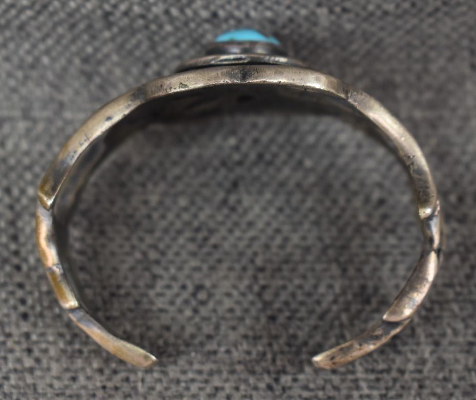 1960-70's Navajo, sterling silver sand cast design with turquoise stone 2" x 5.75" x 1" total weight 69 grams