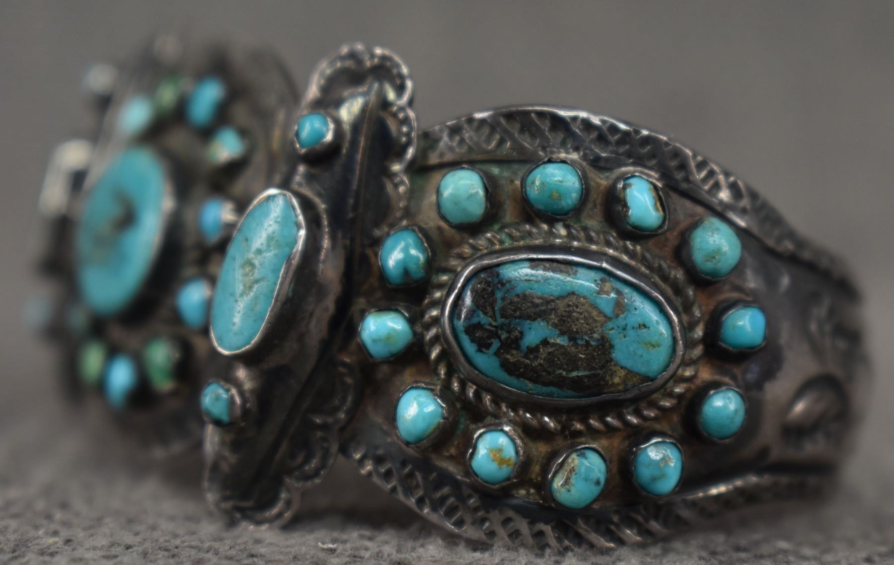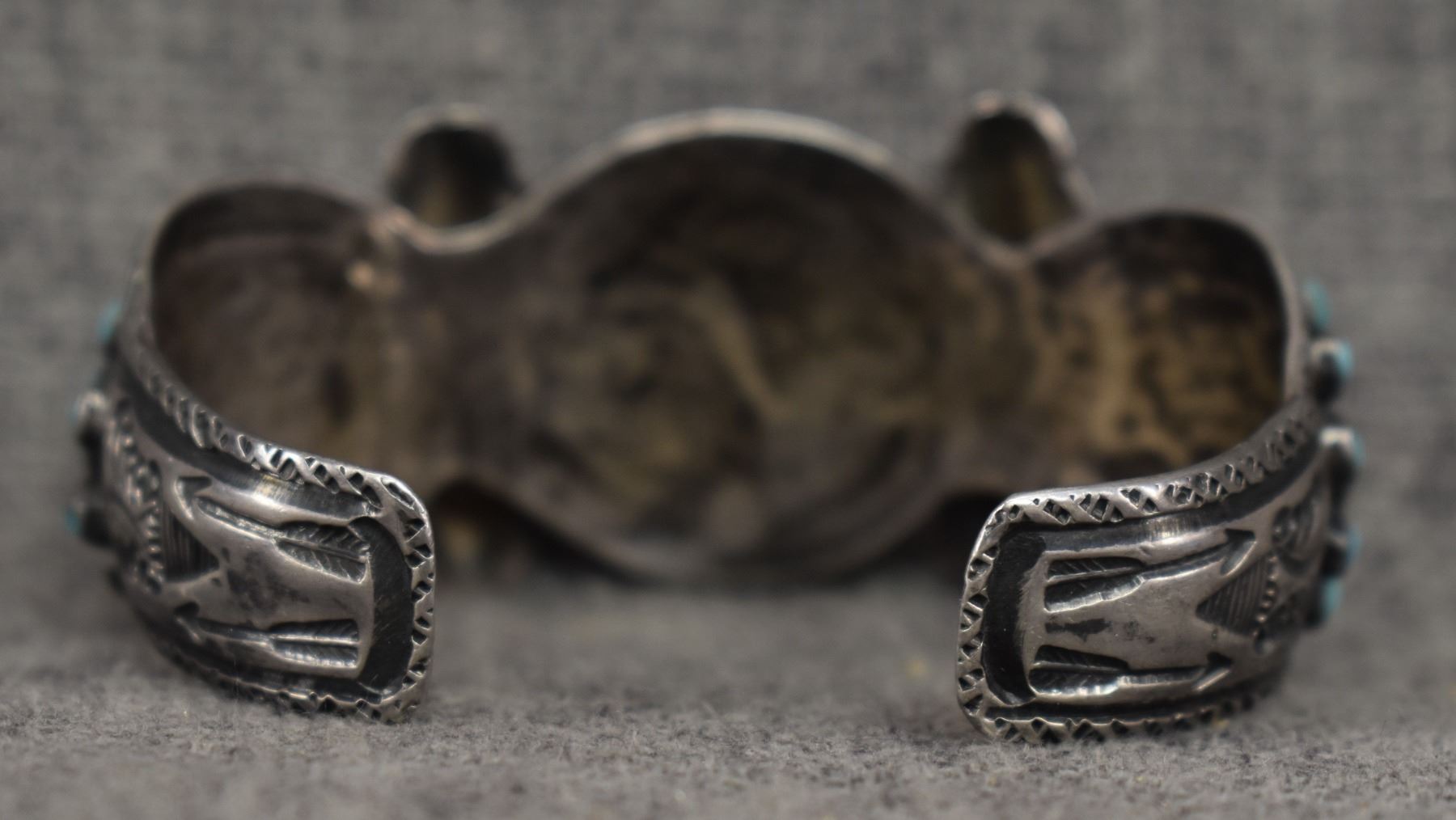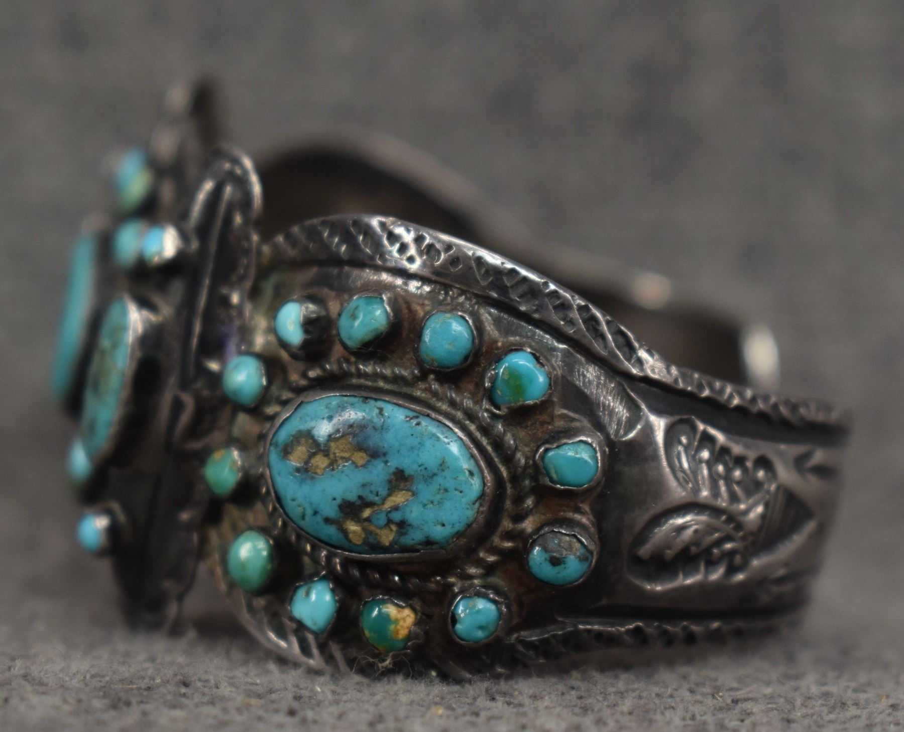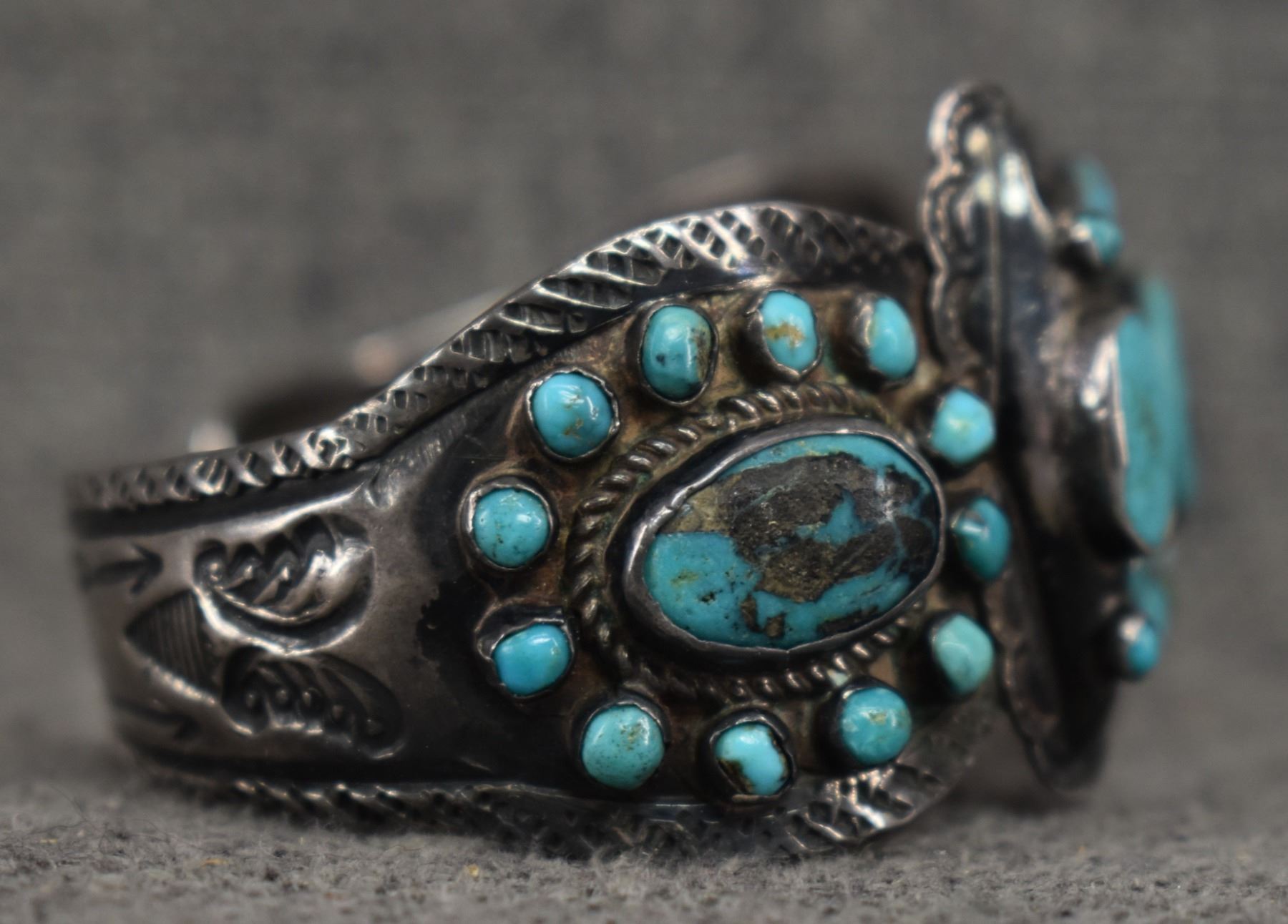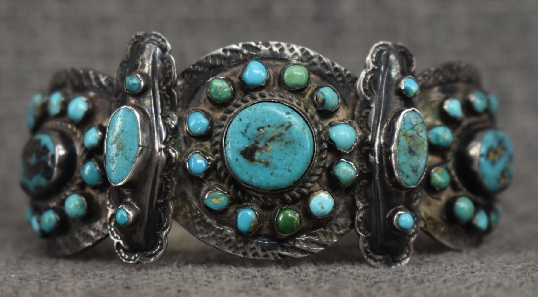 1960's Navajo. Sterling silver and turquoise bracelet, 1.25'' x 5.5'' x 1''. Total weight 40 grams