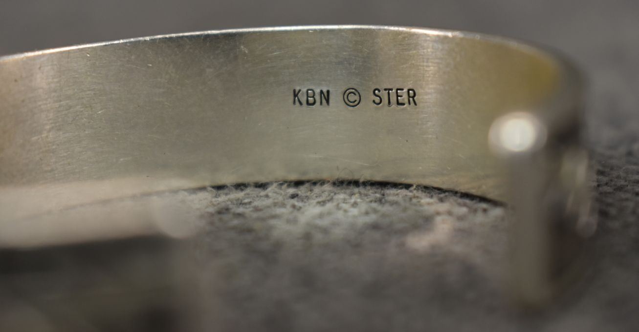 1990's Navajo, sterling silver bracelet, signed KBN. .5'' x 5.25'' x 1''. Total weight 37 grams