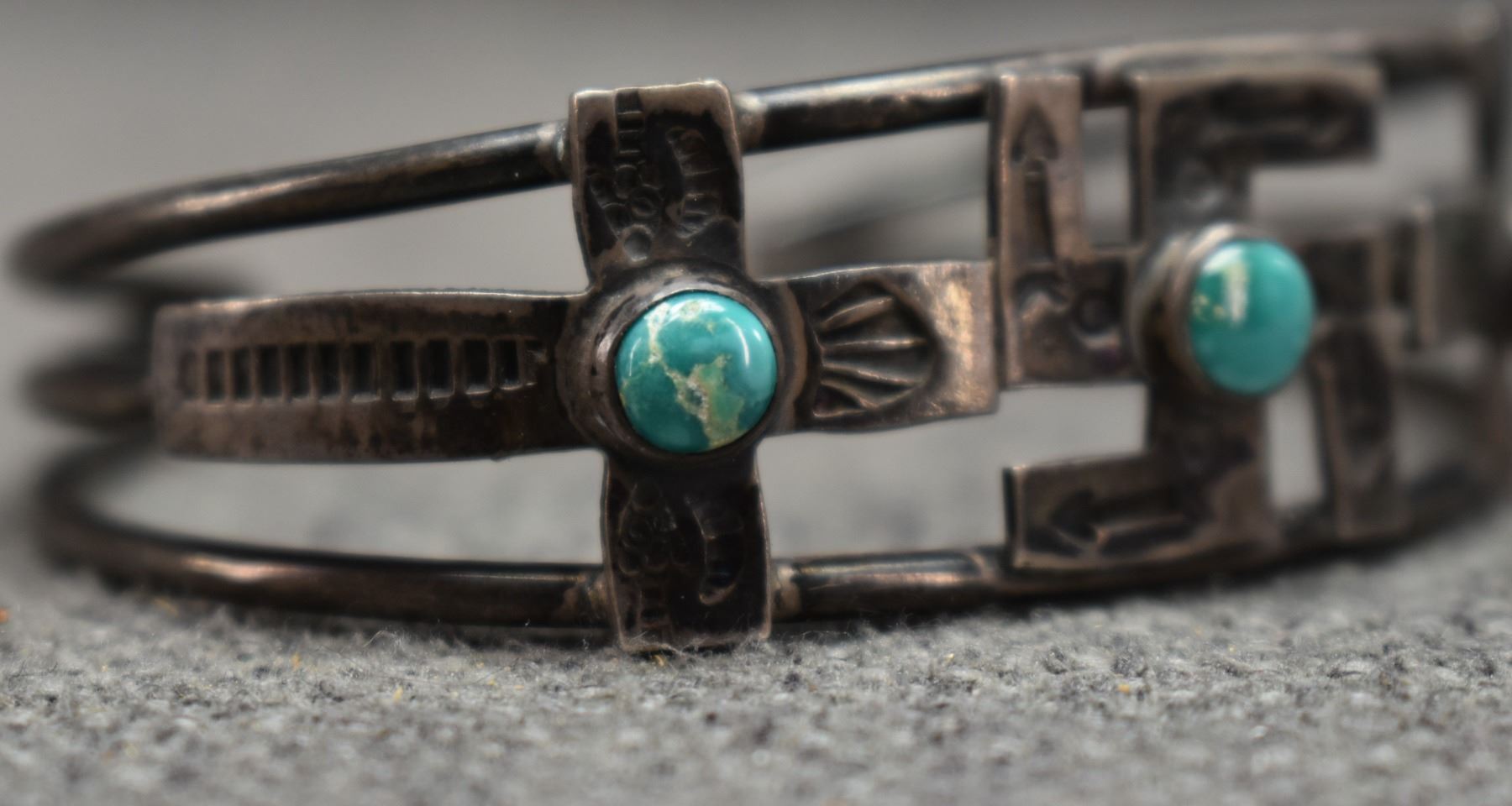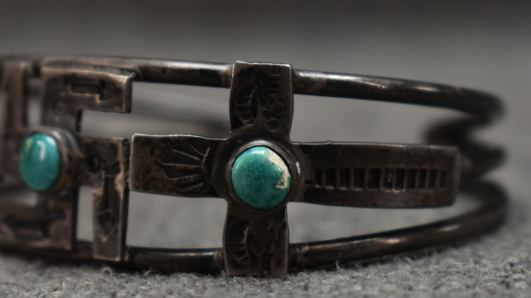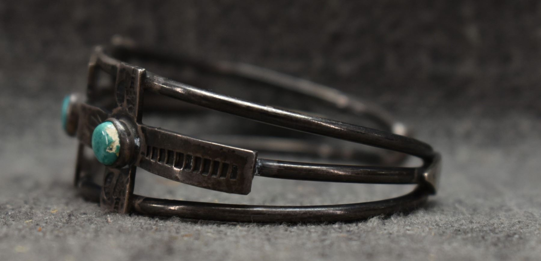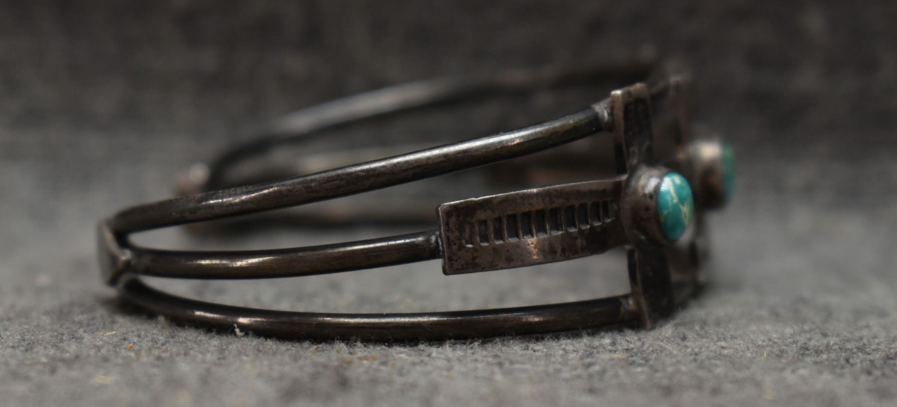 1960's Navajo. Sterling silver and turquoise bracelet. .75'' x 5.5'' x 1''. Total weight 28 grams