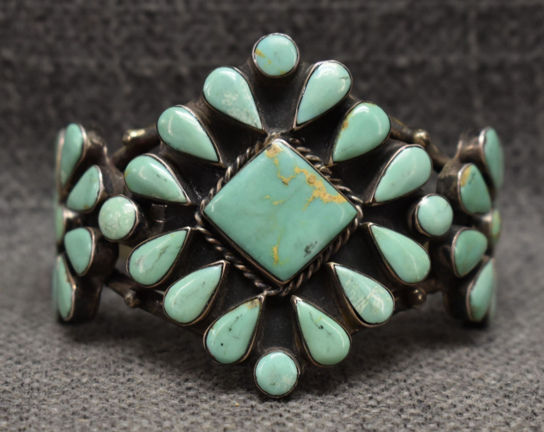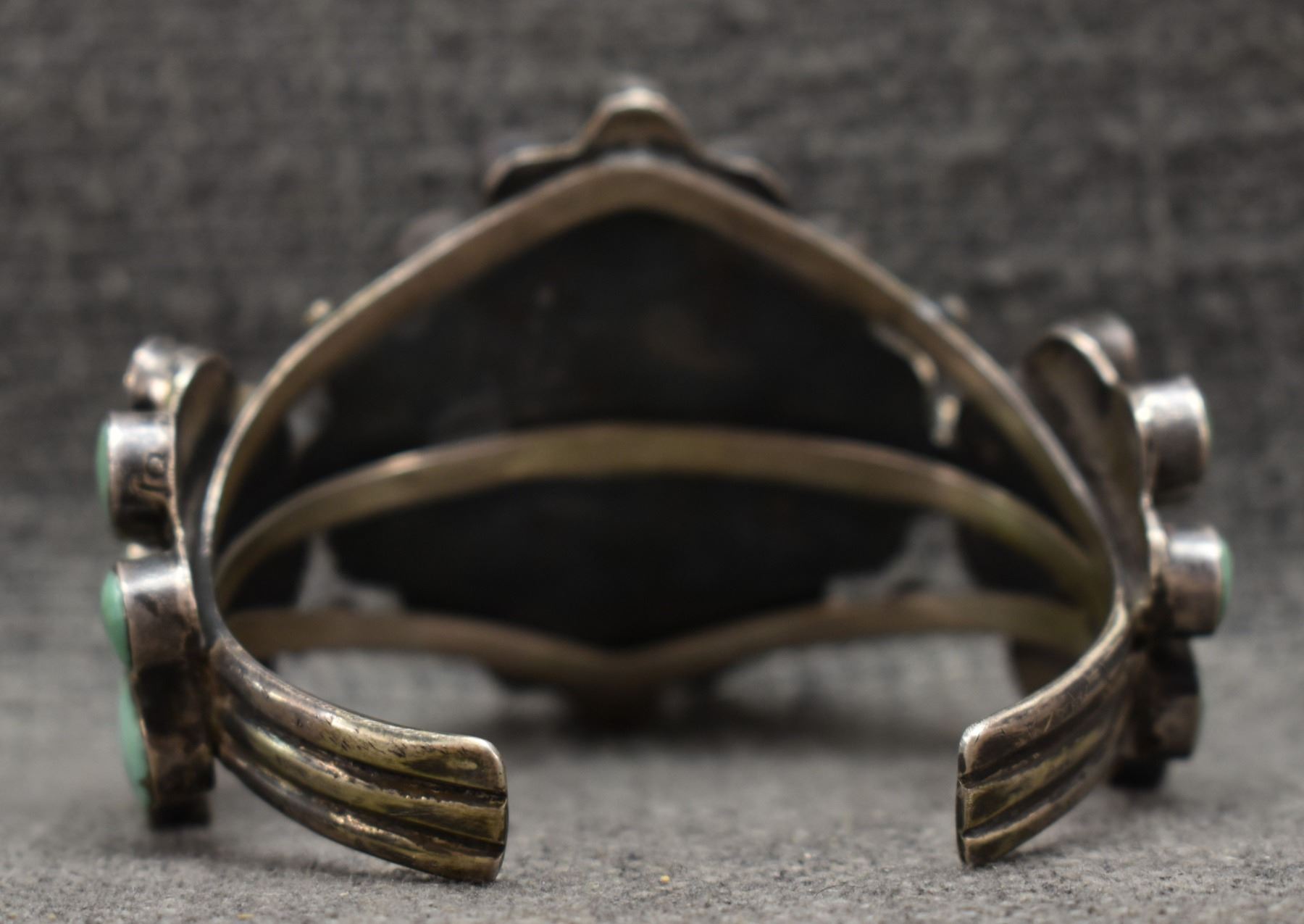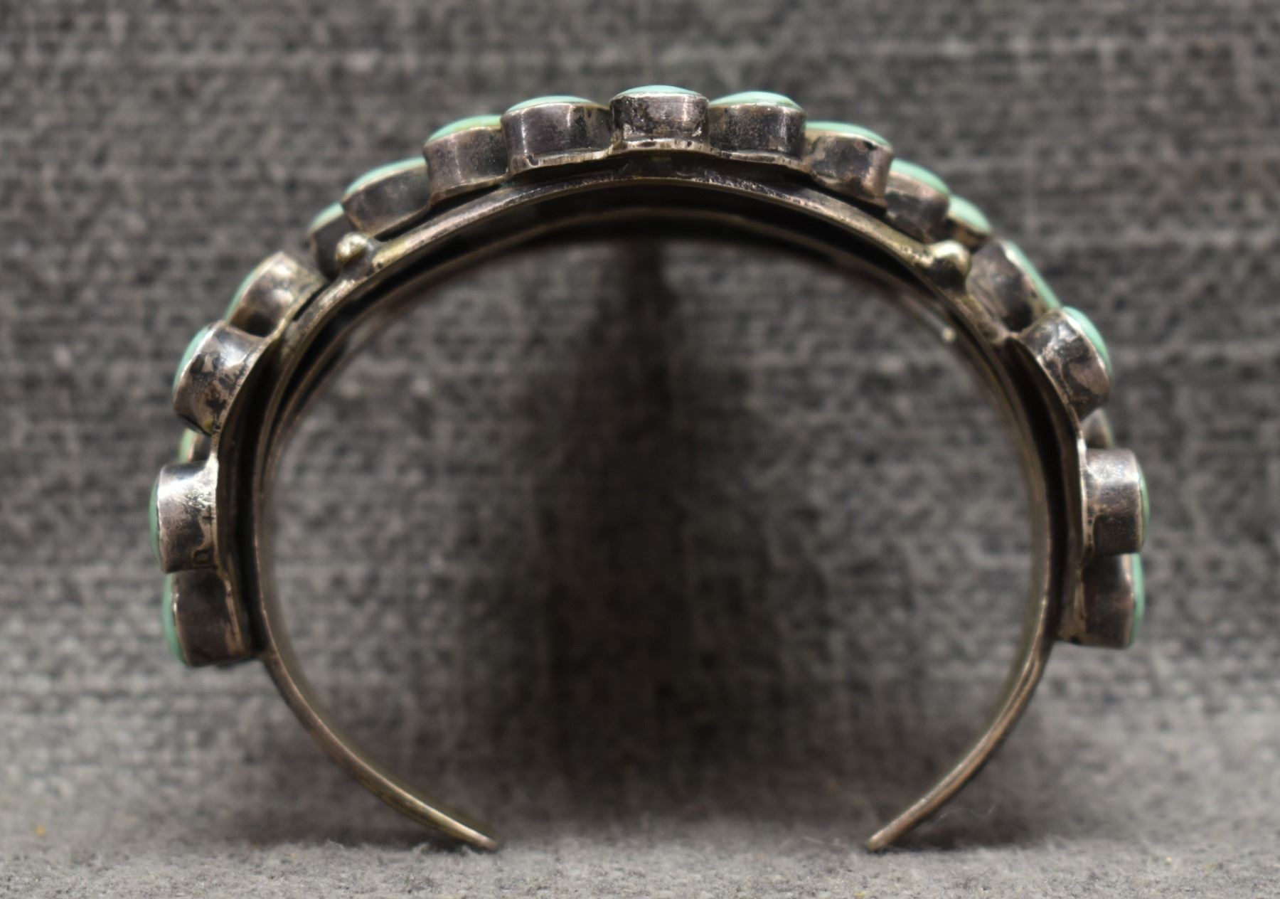 1960's Navajo. Sterling silver and turquoise bracelet. 2.25'' x 5.75'' x 1.25''. Total weight 74 grams