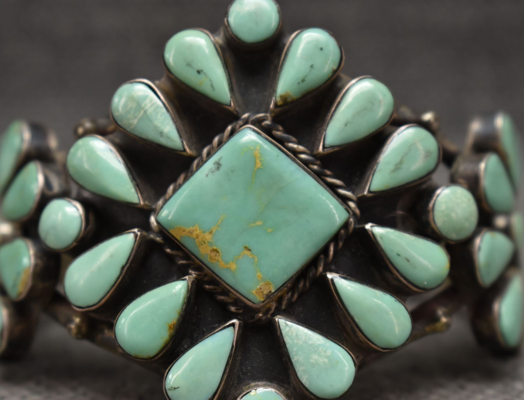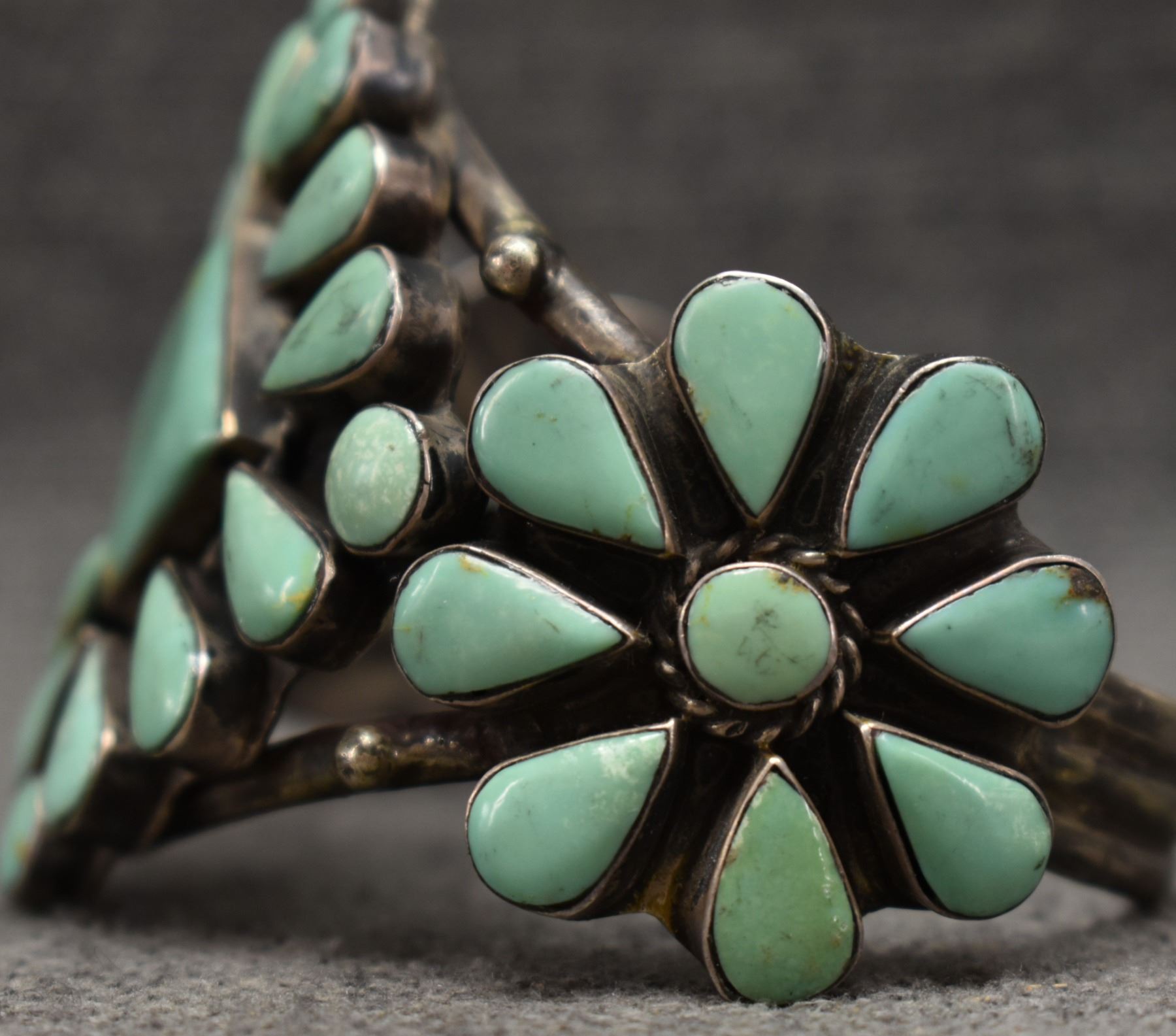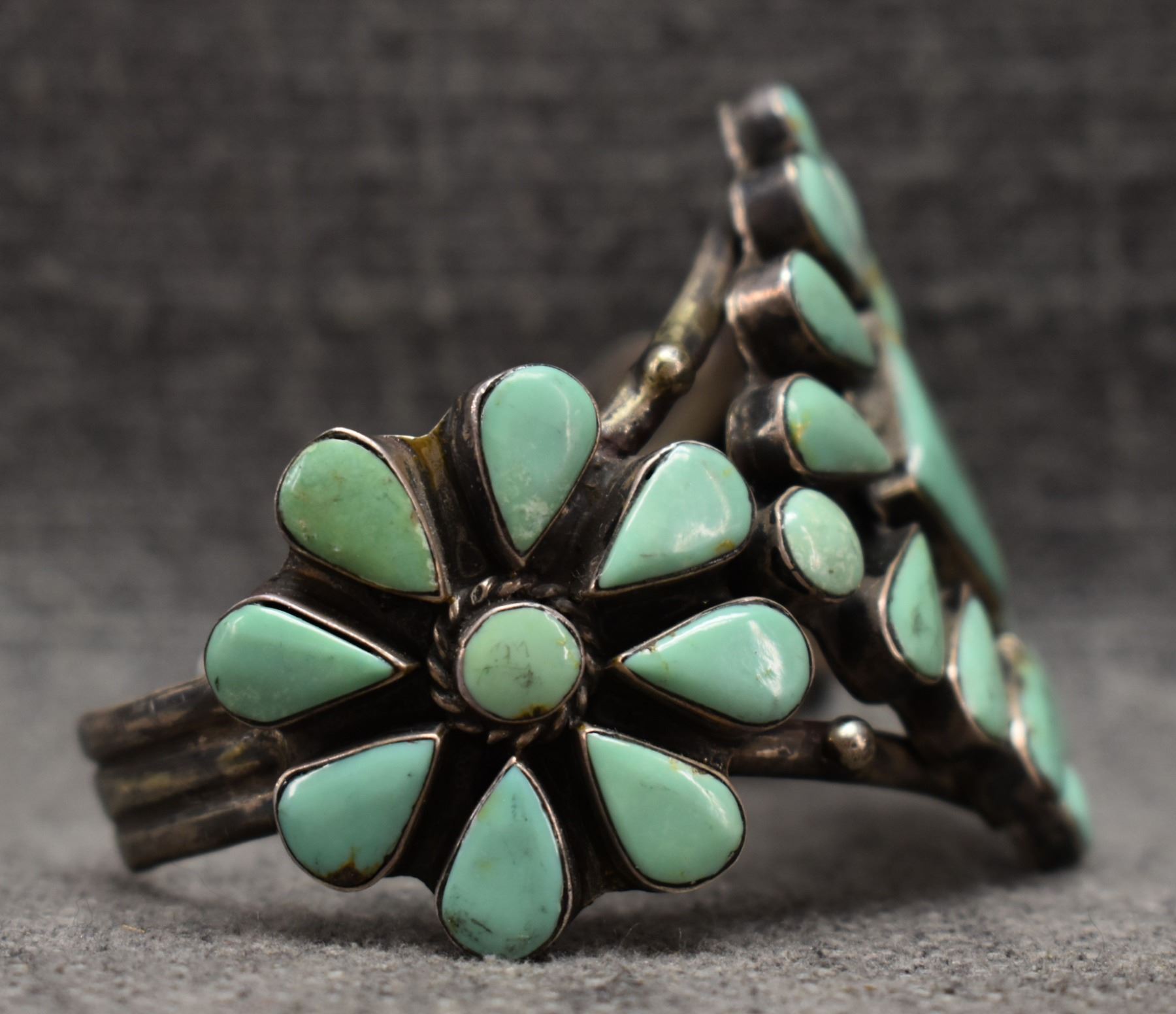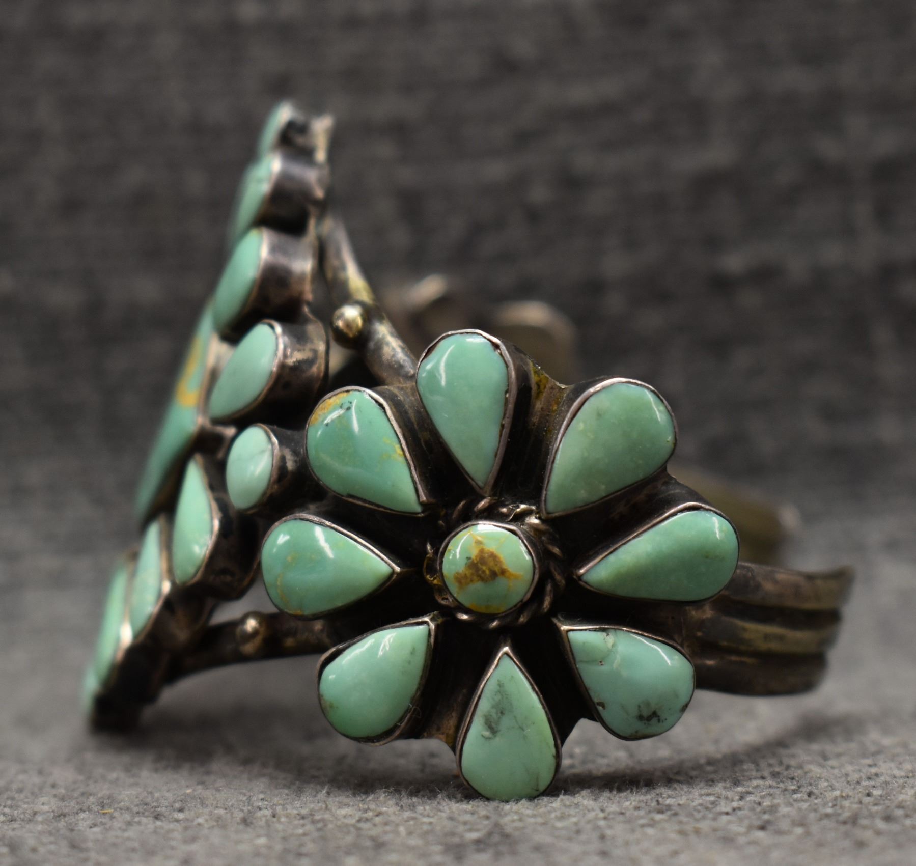 1960's Navajo. Sterling silver and turquoise bracelet. 2.25'' x 5.75'' x 1.25''. Total weight 74 grams