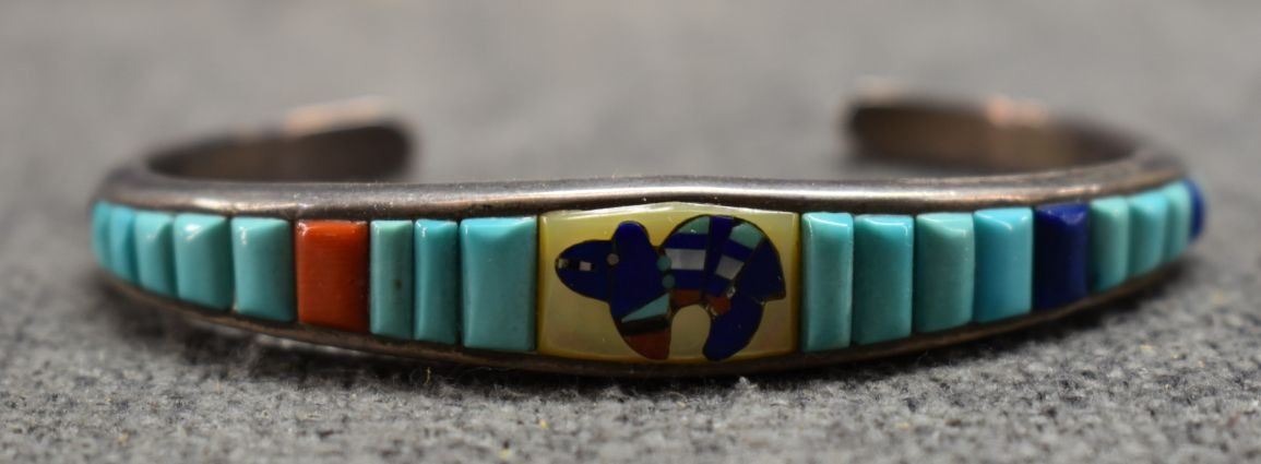 Damage that is visible in photos we do not note in description. Unless noted NO damage. All items have some amount of acceptable wear, scratches, nicks, missing stitches, etc. for their age. Measurements on paintings, pictures and prints are image size, paintings, pictures and prints that are in frames have not been examined outside the frame. Painting glass is not insurable Alvord/Munn auction is not responsible for brakeage of glass or frames during shipping. Bracelets measurements are width, inside circumference, opening. Weight on jewelry includes stones, leather from Concho belts and bolos removed when possible.