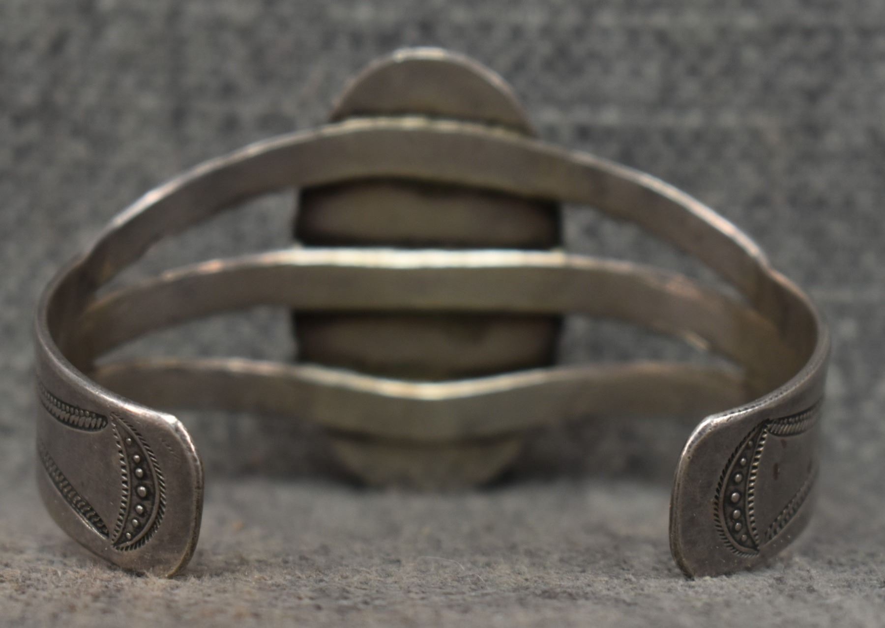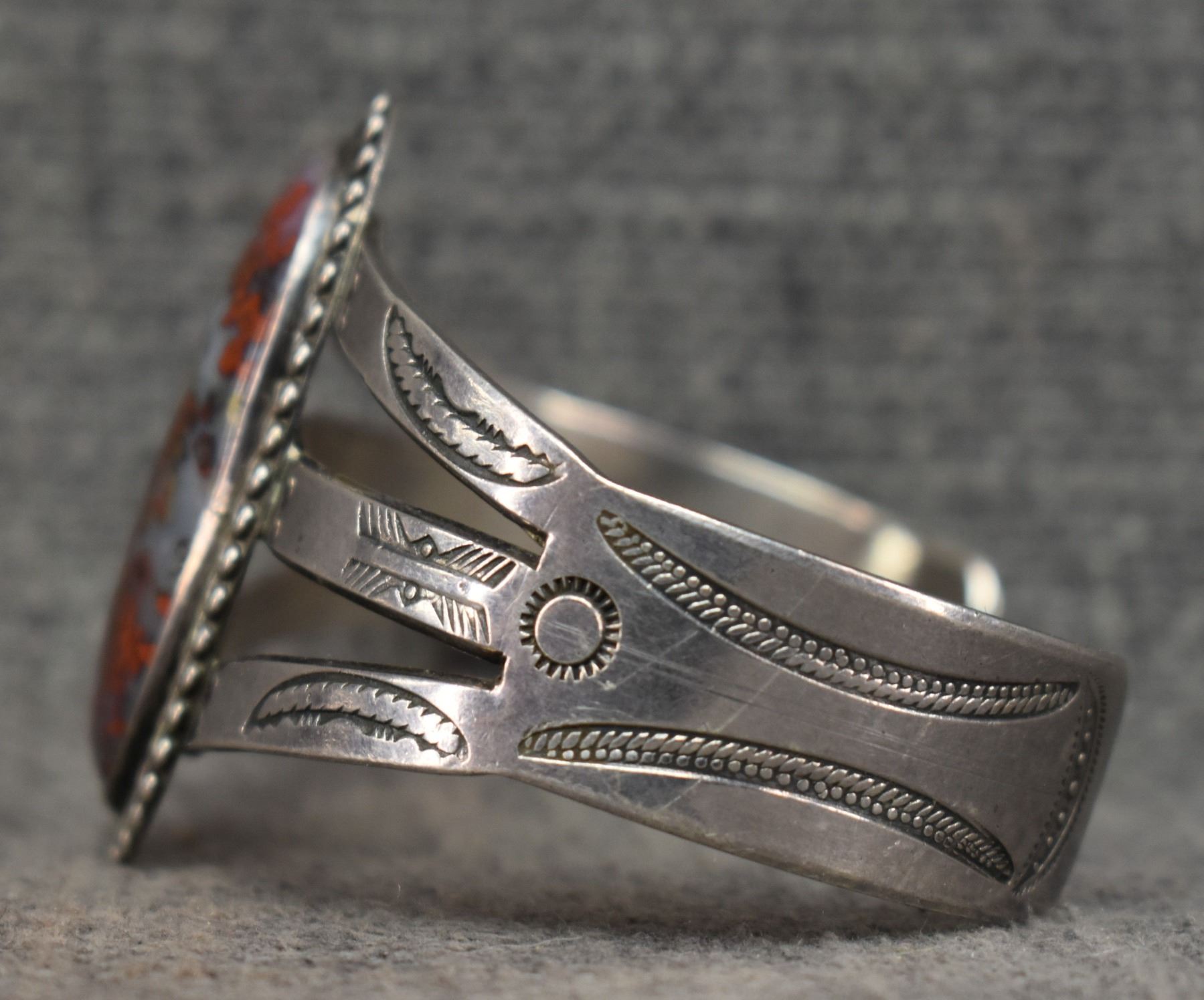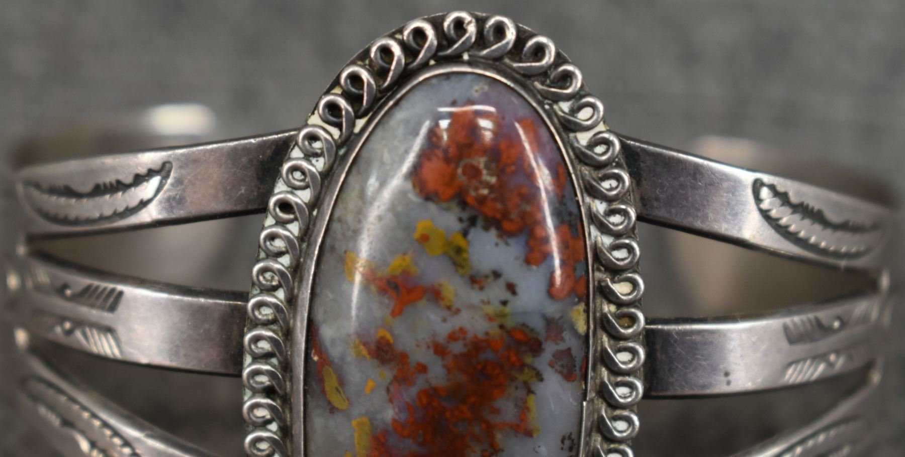 1940's Navajo. Sterling silver and agate bracelet. 1.75'' x 5.5'' x 1.5''. Total weight 41 grams