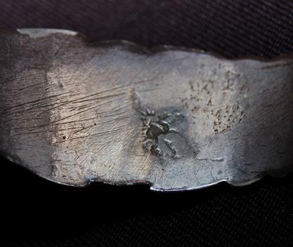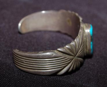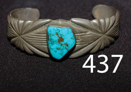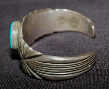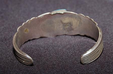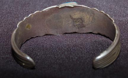 ca. 1970’S cast silver, turquoise setting, 1.5” opening, 5” around, 1” wide.