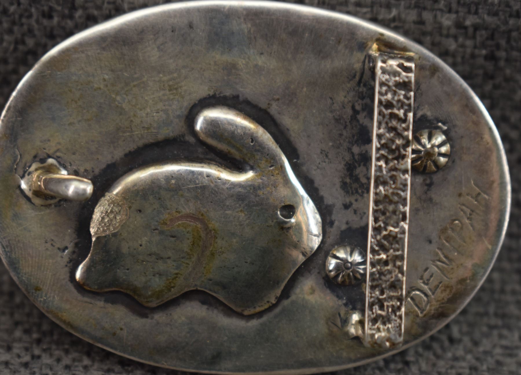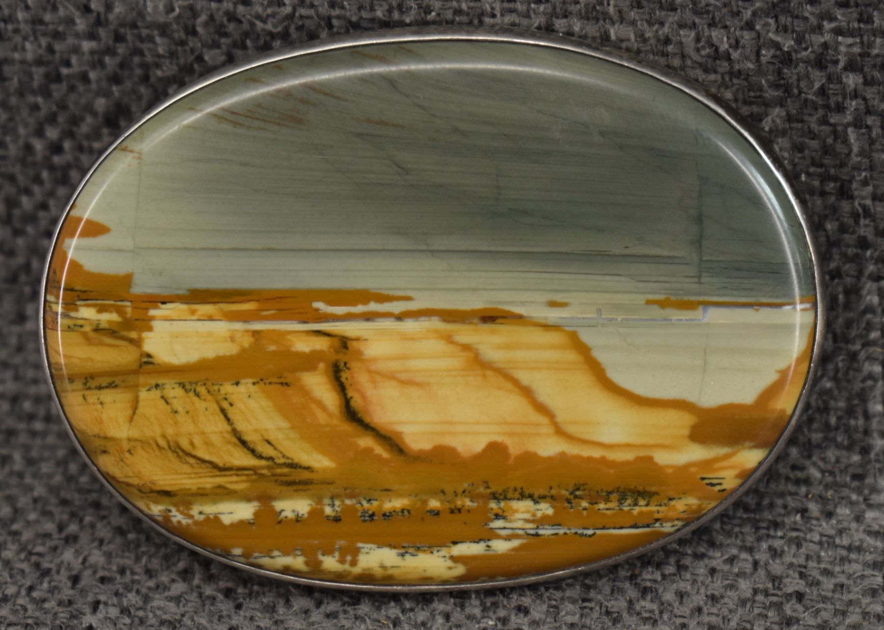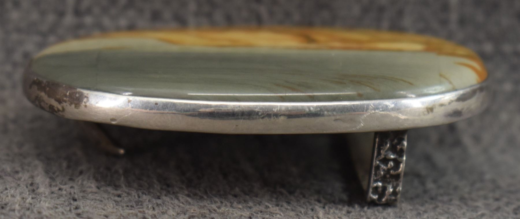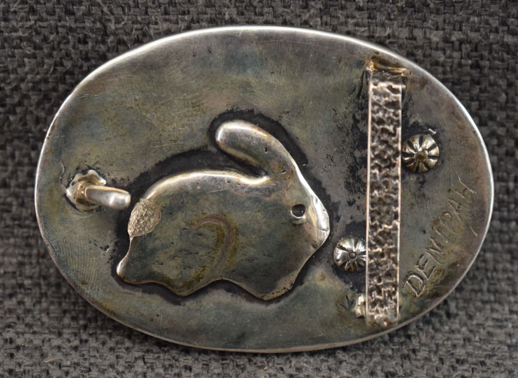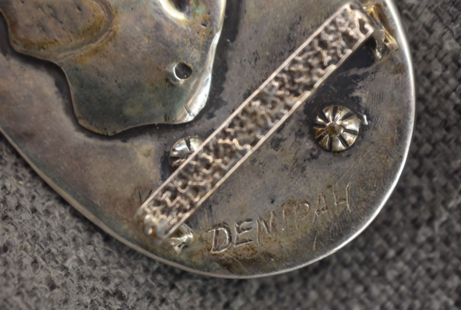 1990's Navajo. Sterling silver and picture agate buckle signed Denipah. 2'' x 2.75'' made for 1.25'' belt. Total weight 99 grams