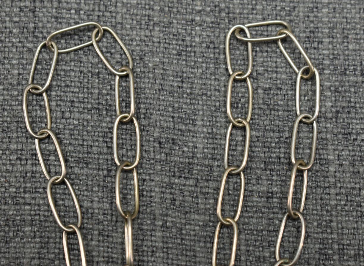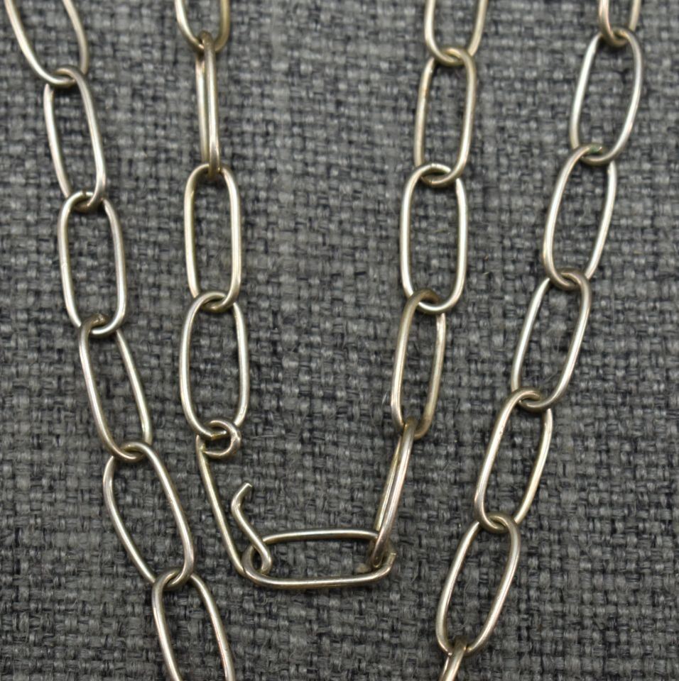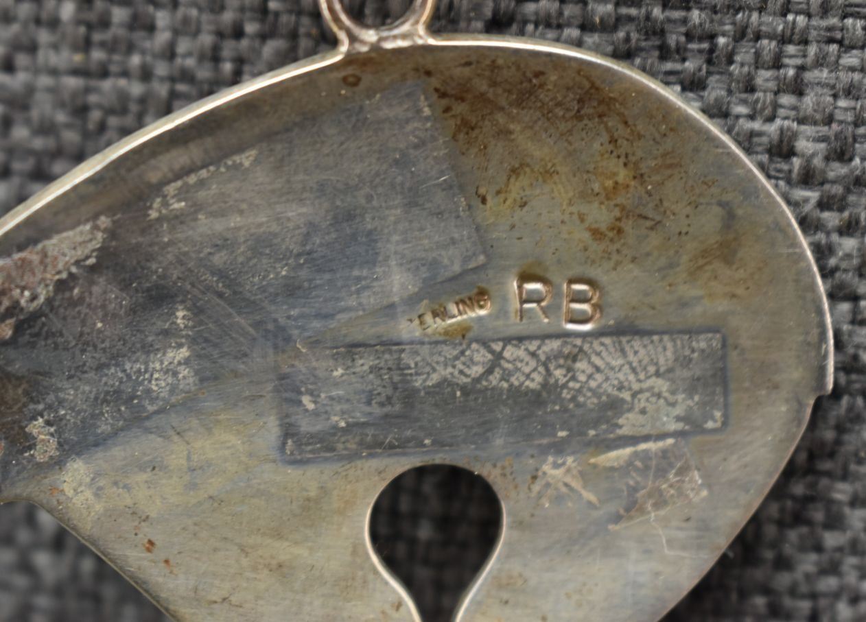 1980's Navajo, sterling silver hand made chain 22" long with sterling silver sand cast and inlaid heartline bear signed RB. 2.25" x 2.25" total weight 49 grams