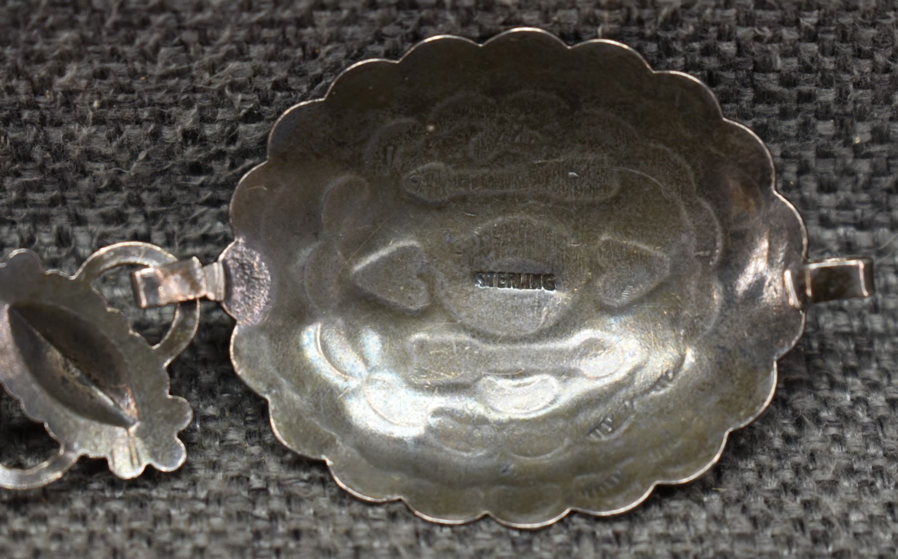 1970's Navajo, sterling silver stamped design, nine conchos and buckles 1.5" x 1.75" and nine butterfly's .75" x .75" total length 33.5" long total weight 123 grams