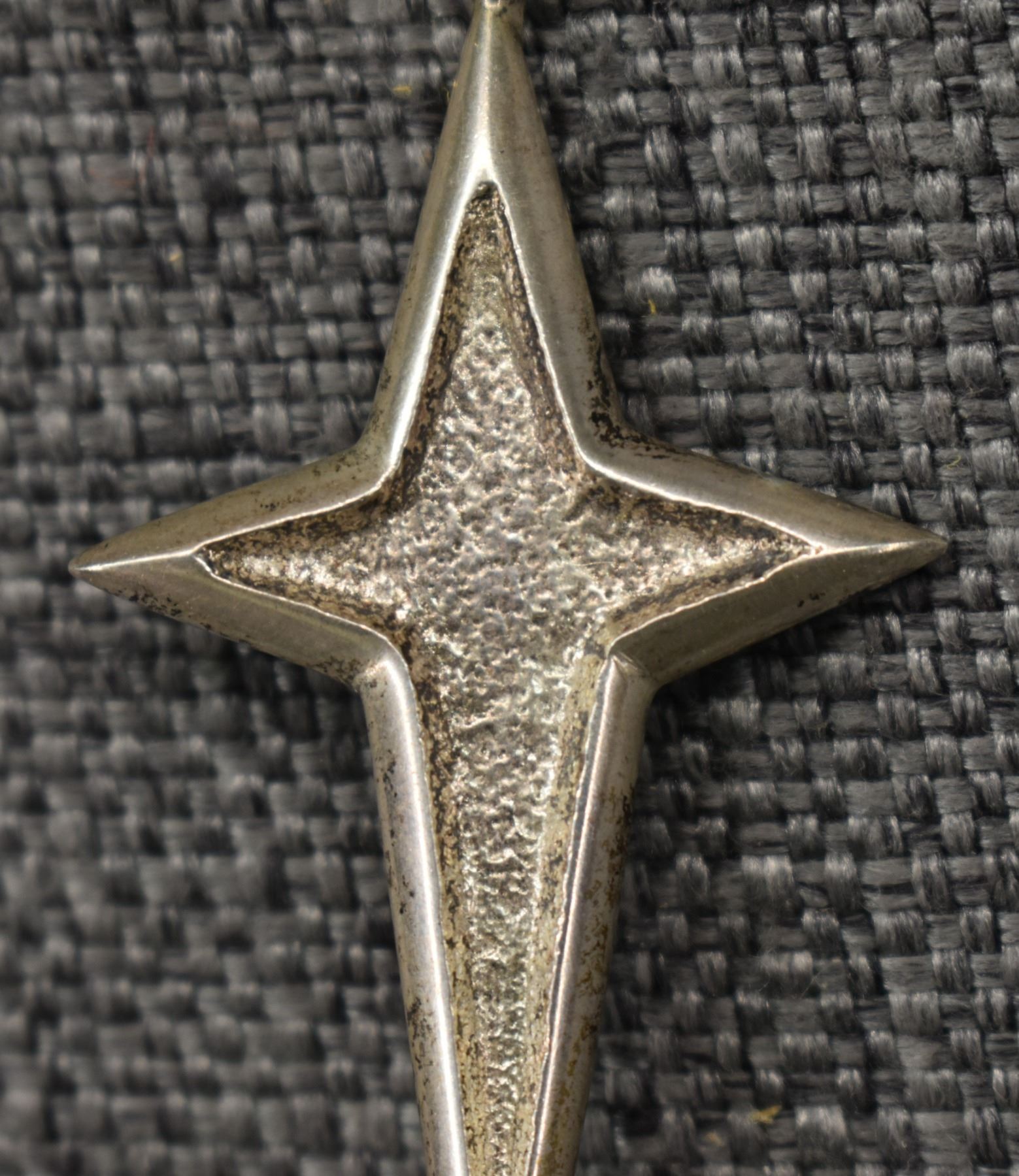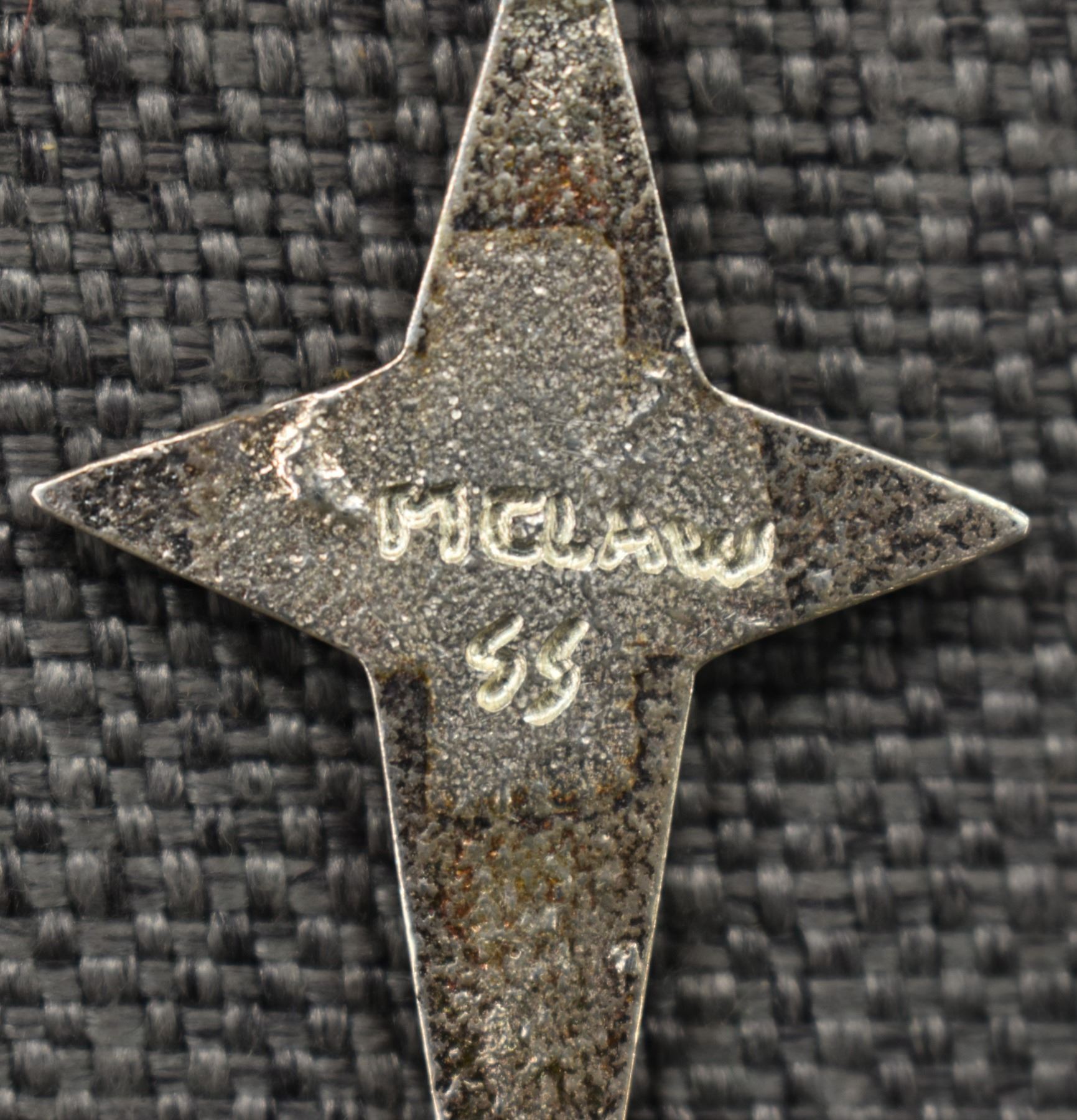 2000's Navajo, Sterling silver tufa cast cross by Monty Claw, 2.5" x 1.25" total weight 9 grams