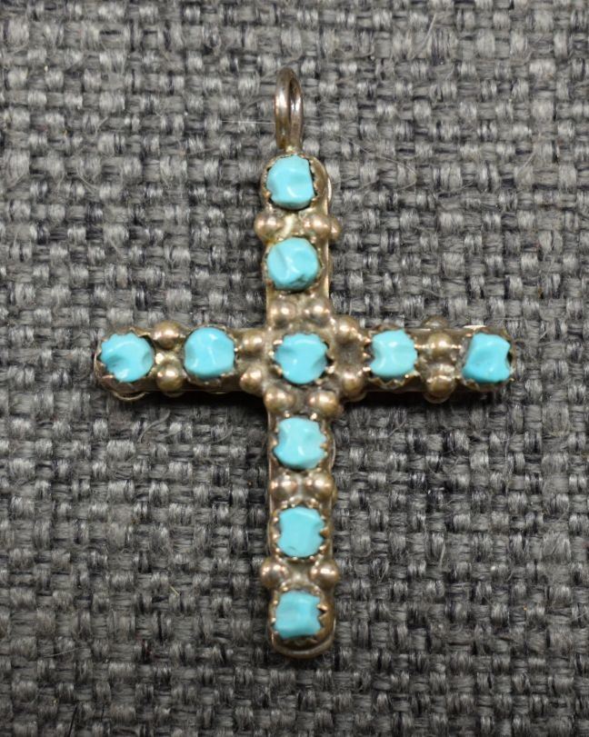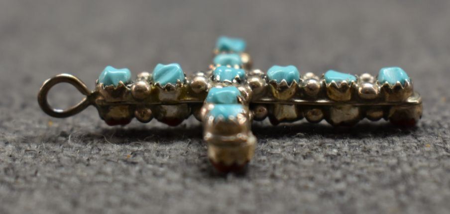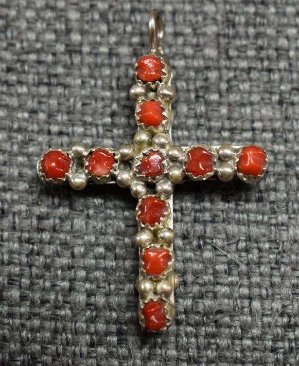 1970-80's Navajo, sterling silver double sided coral and turquoise 1.5" x 1" total weight 7 grams