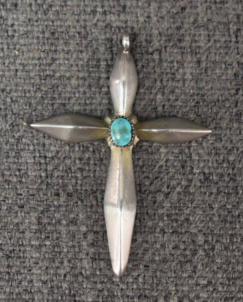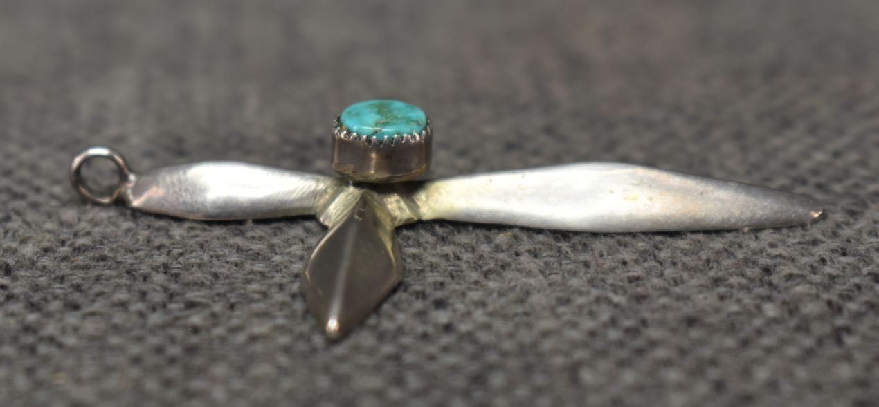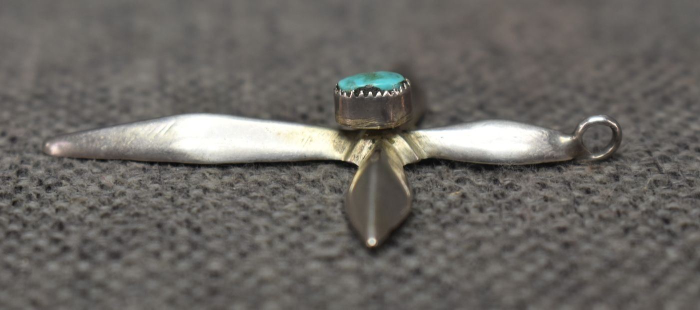 1980's Navajo, sterling silver sand cast with turquoise stone 2.25" x 1.75" total weight 12 grams