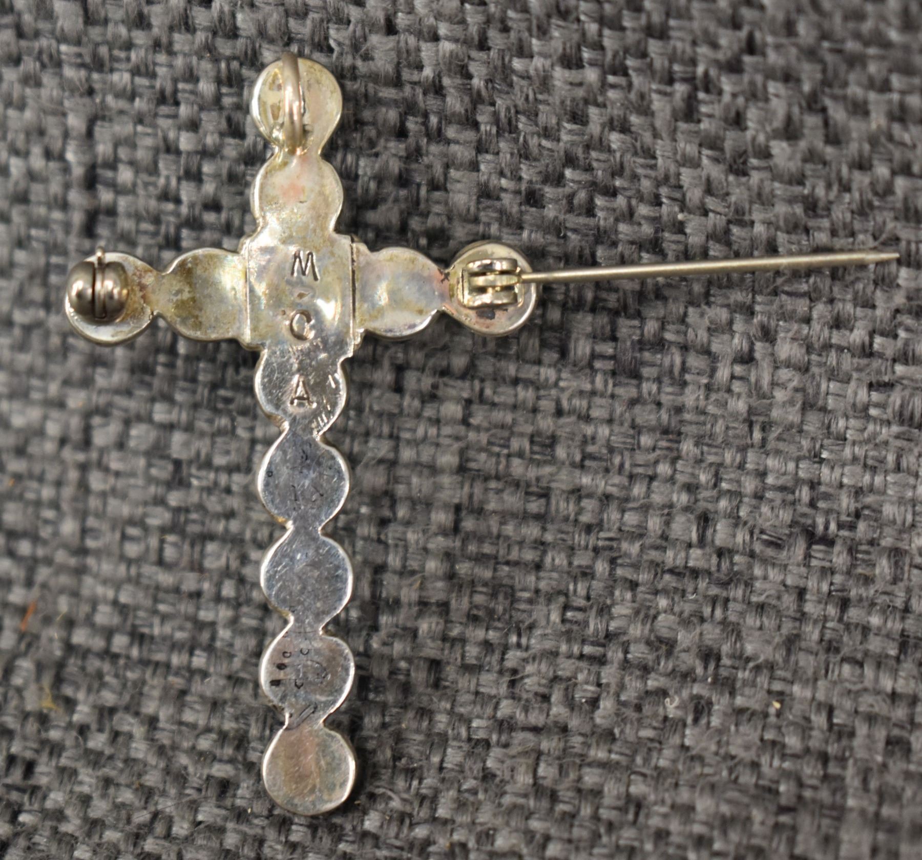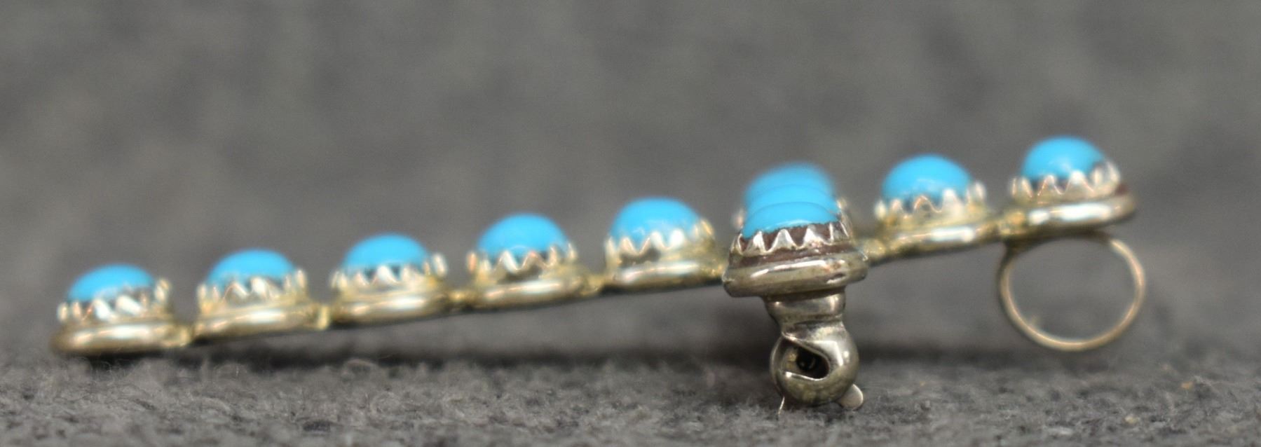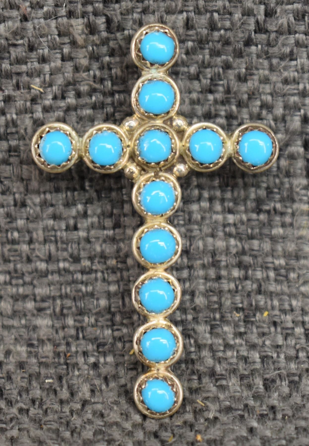 1980s Navajo. turquoise stone cross and turquoise pin/pendant. 2'' x 1.25''. Total weight 3 grams