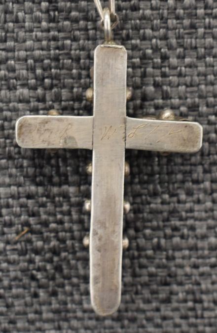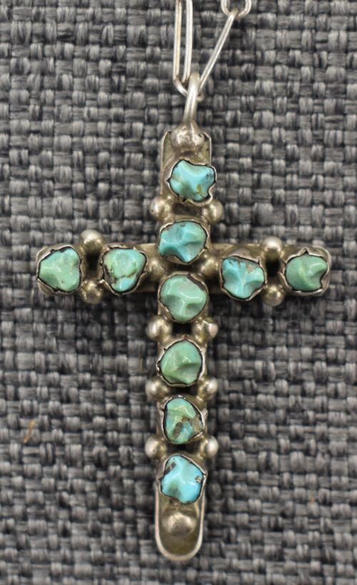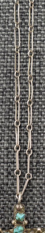 Navajo Silver and Turquoise cross signed with sterling link chain total weight 12 grams 2" x 1"