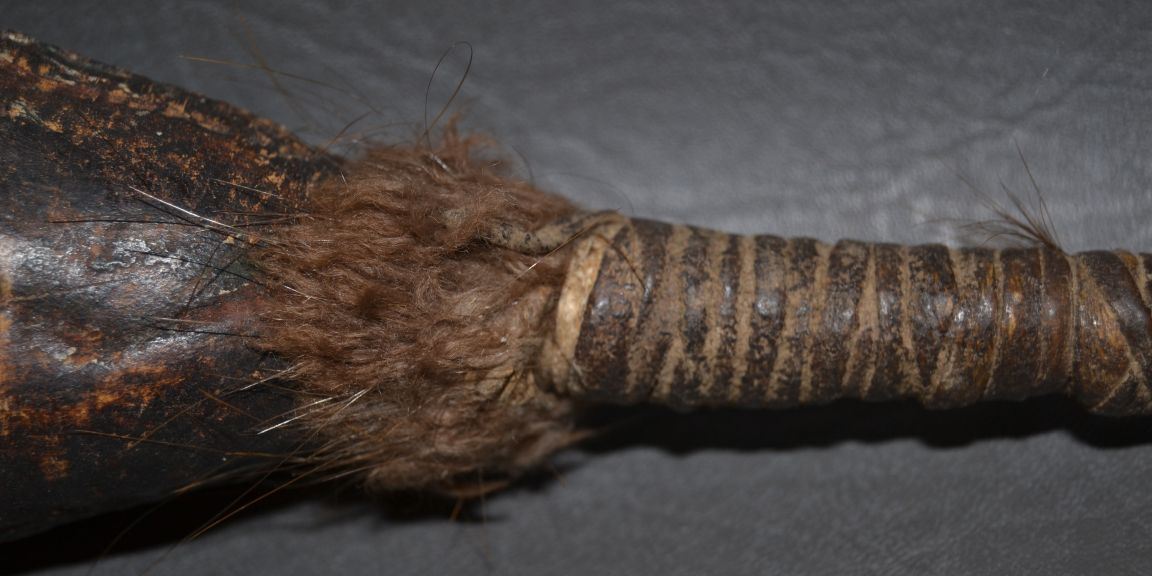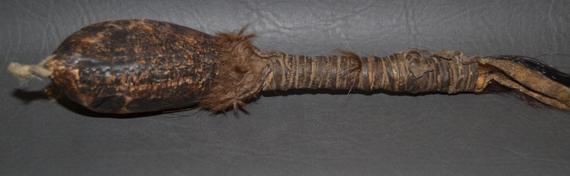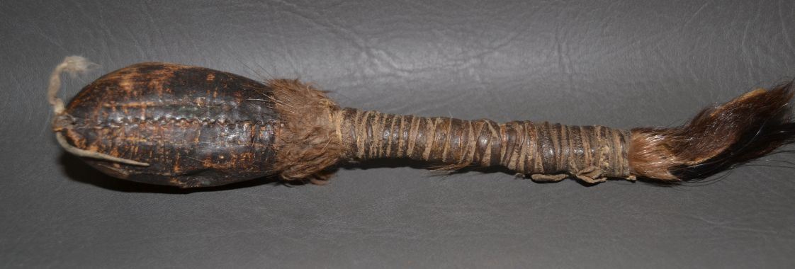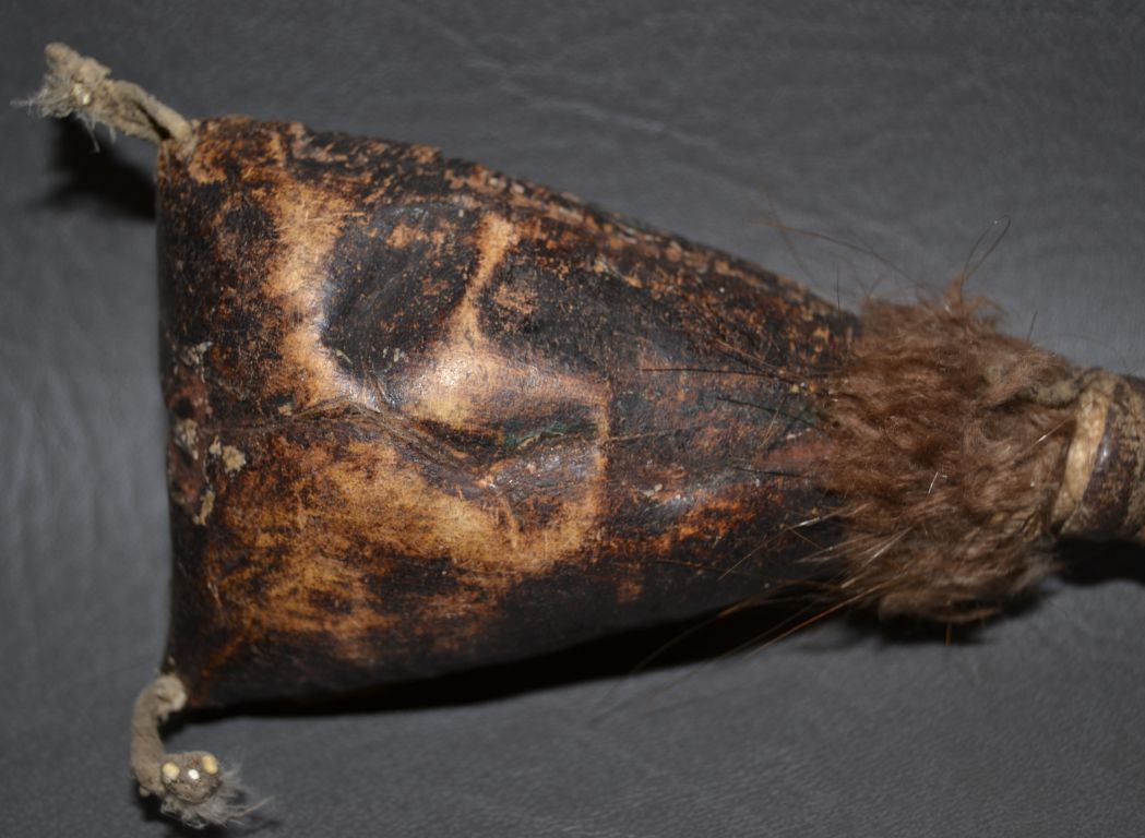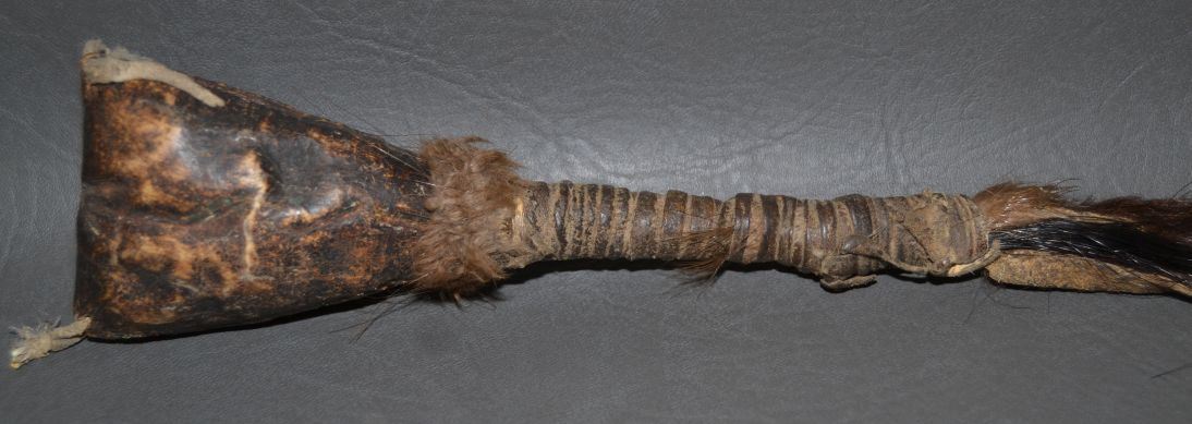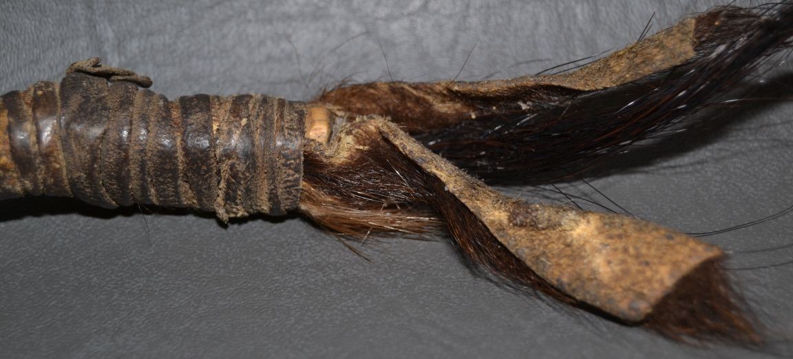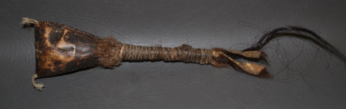 1940s hide head & wrapped handle with horse hair drop, 8" x 2.5"