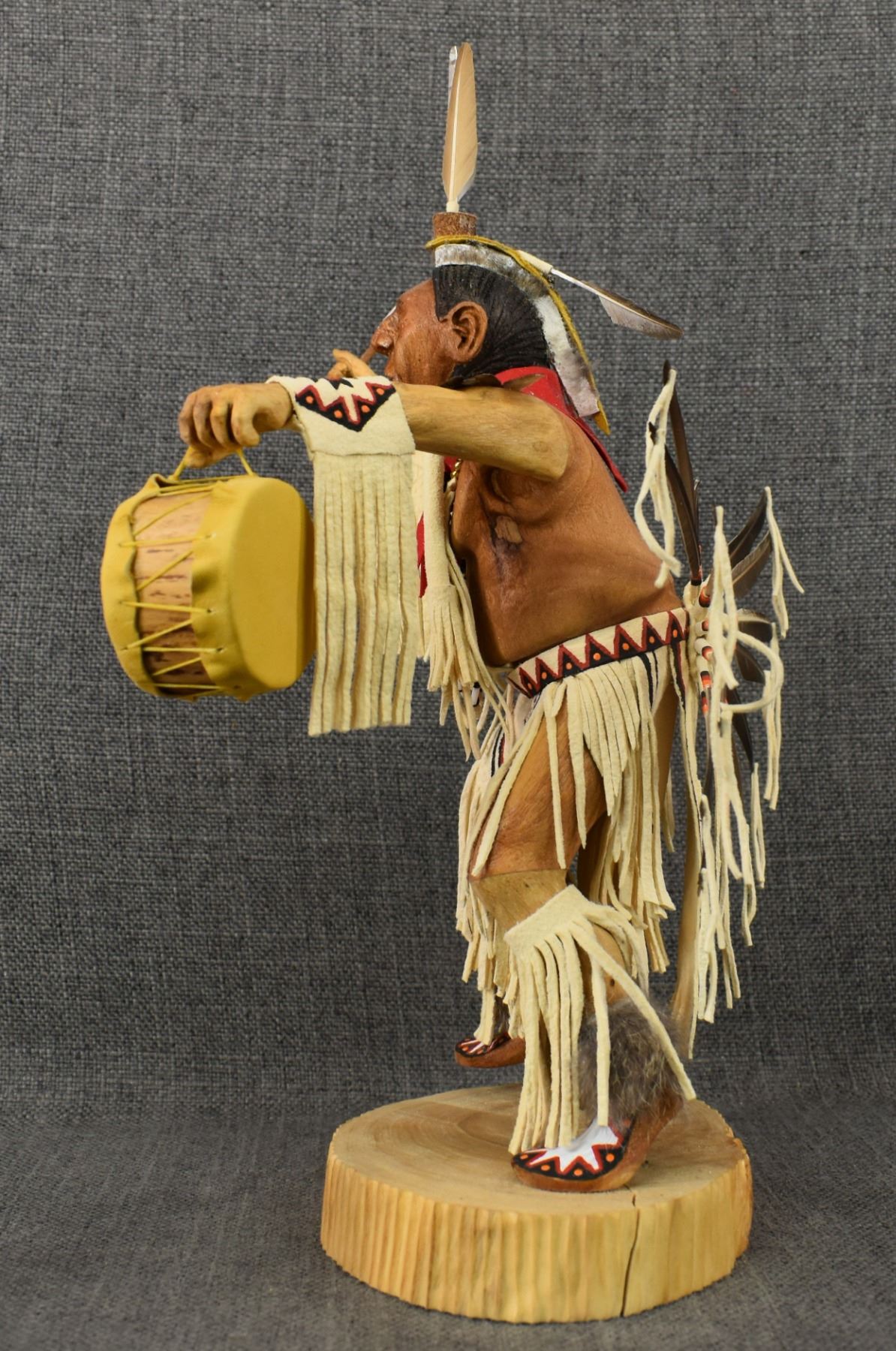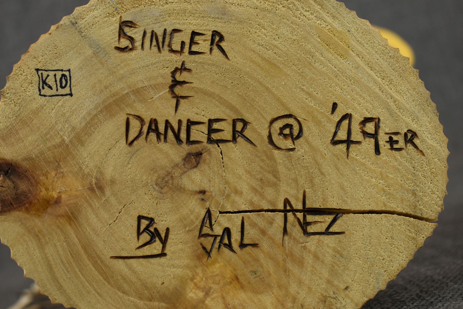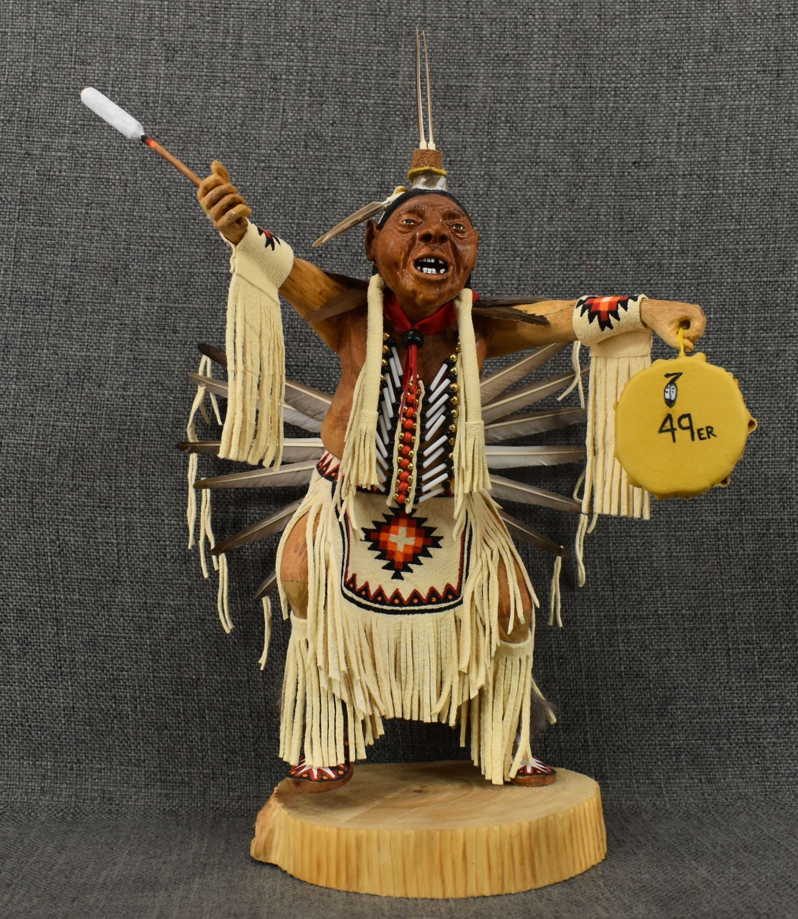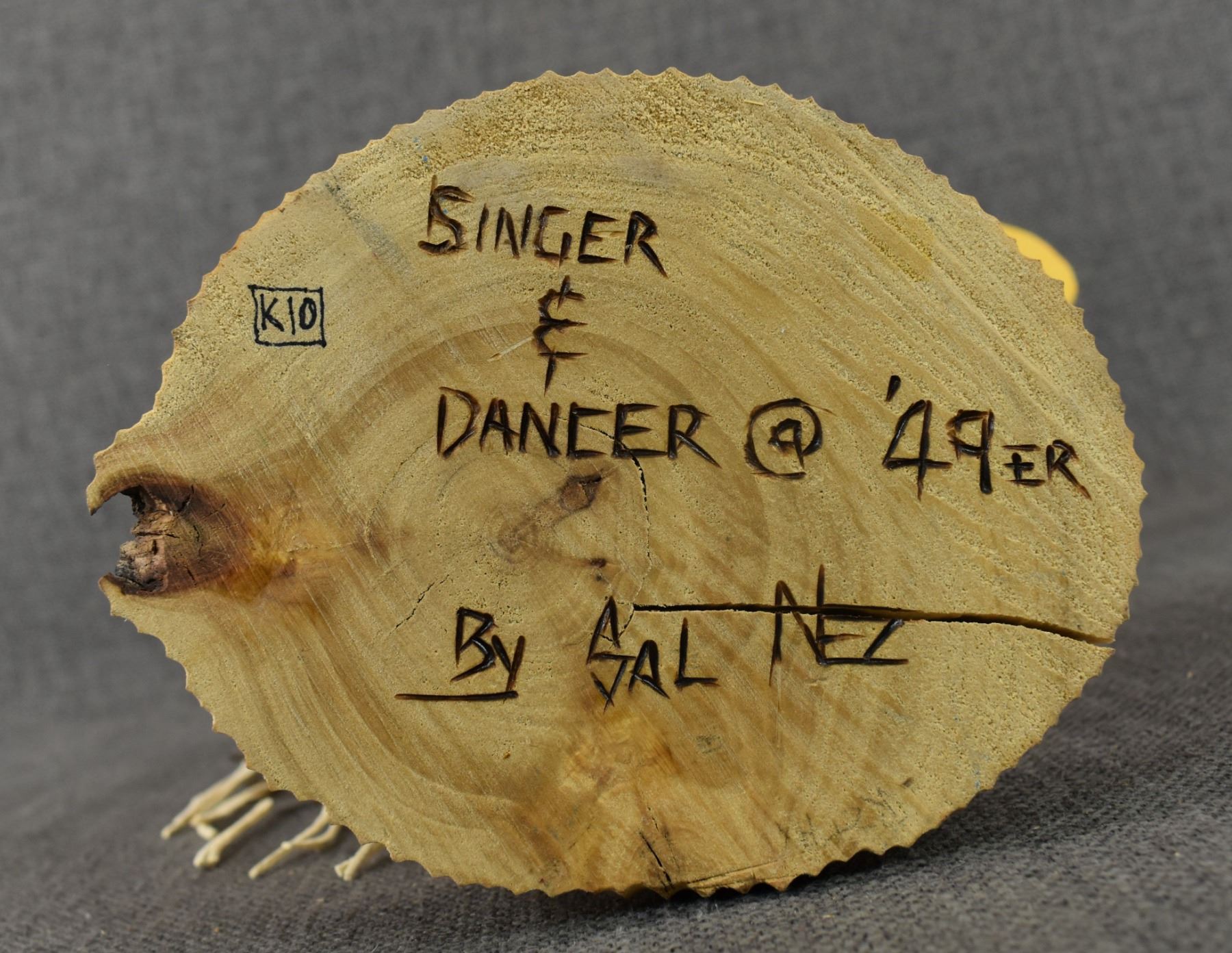 1990-2000's Navajo, carved and painted wood titled "Singer and Dancer @49" by Sal Nez, 13.25" tall