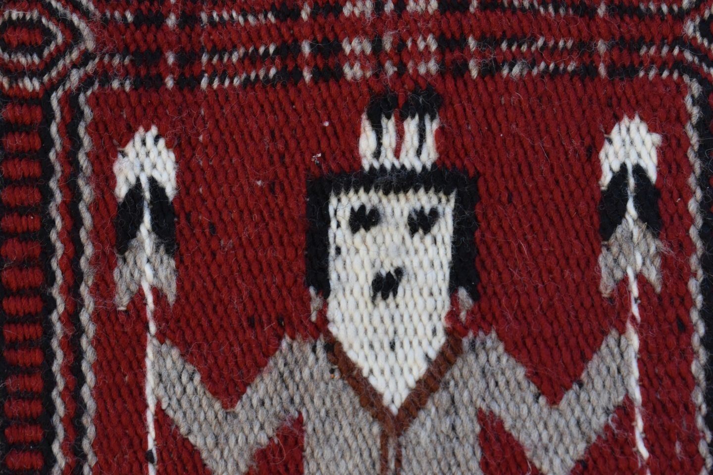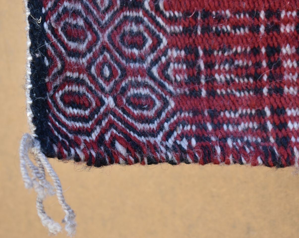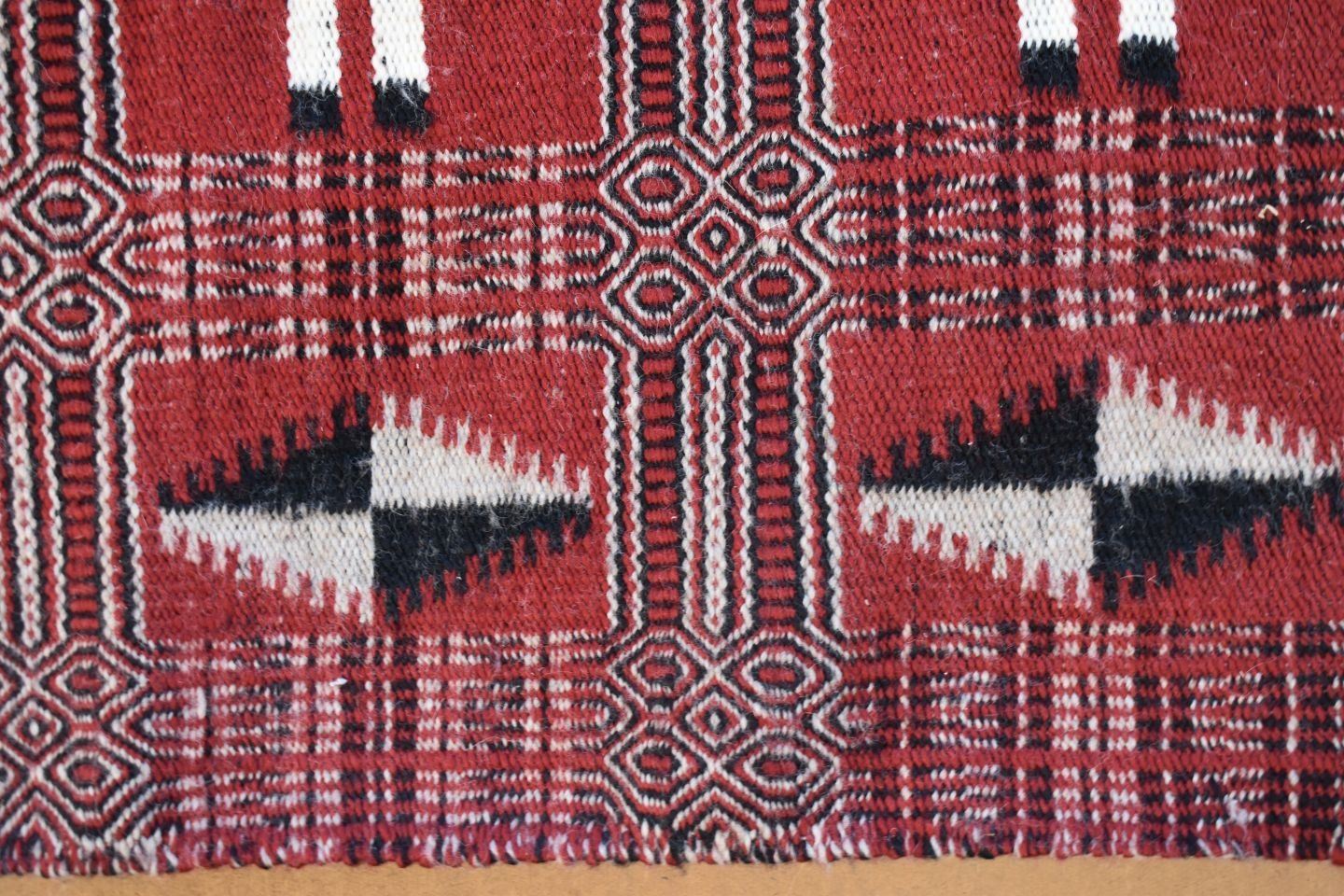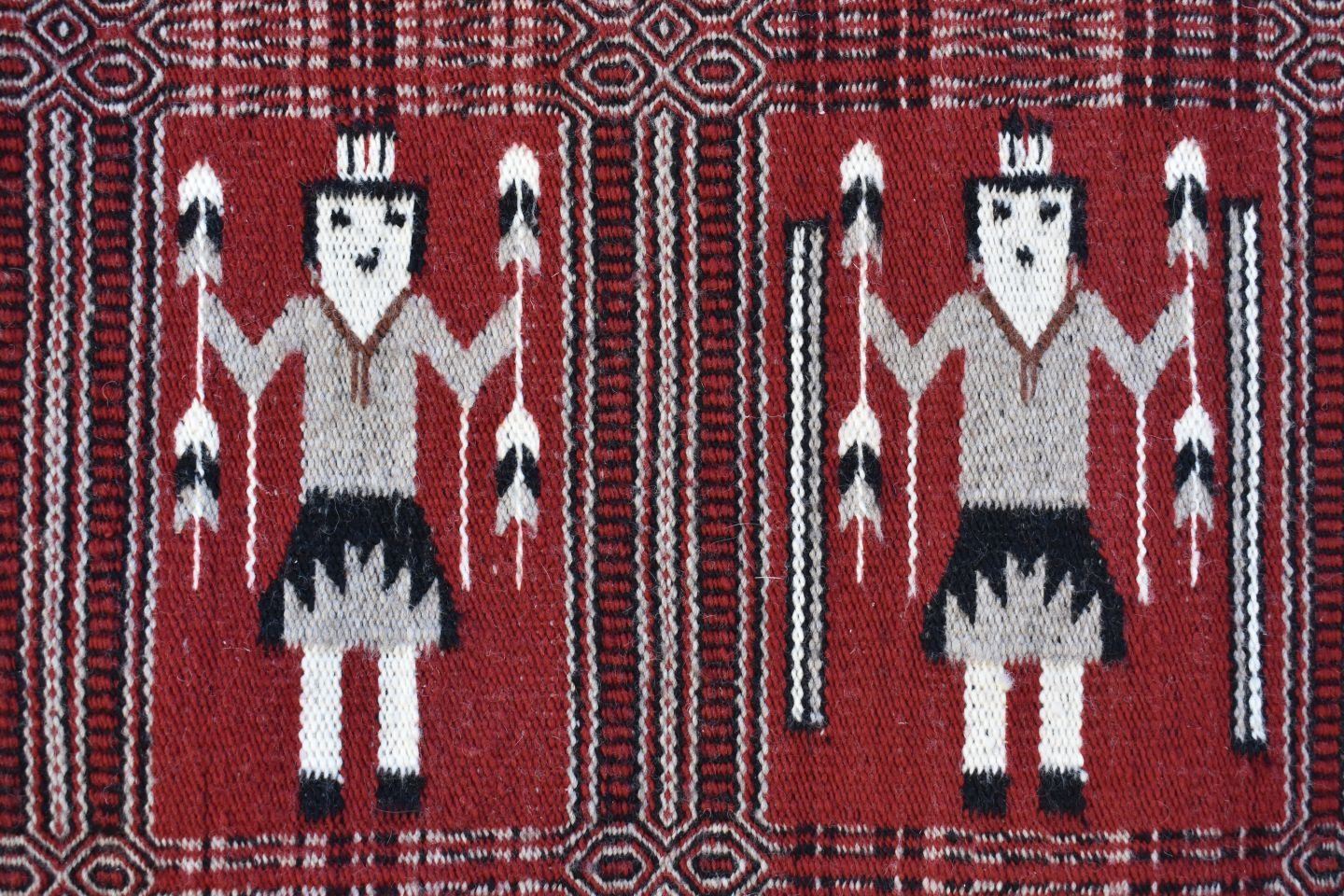 1980's Navajo, hand woven twill and Yei double sided design by Lucy Wilson, has Hubble tag and photo of weaver, 28" x 48"