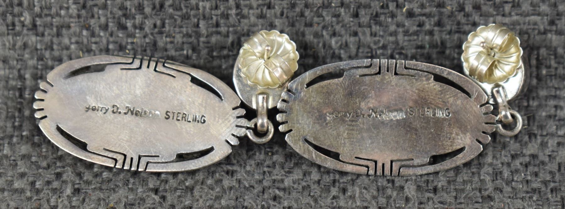 1990's Navajo. Sterling silver and shell earrings. Signed Jerry Nelson. .75'' x 2''. Total weight 20 grams