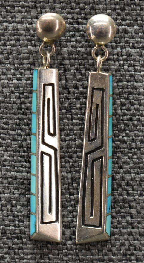 1980's Navajo, sterling silver with channel inlaid turquois by Lonn Parker 2.5" long total weight 12 grams
