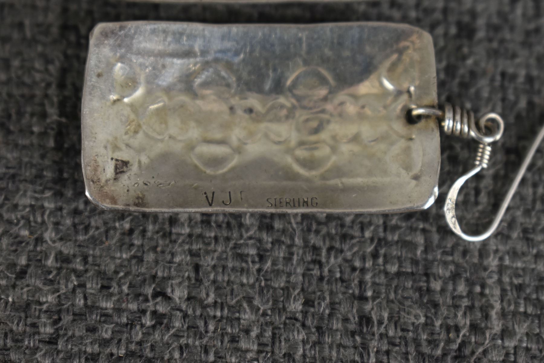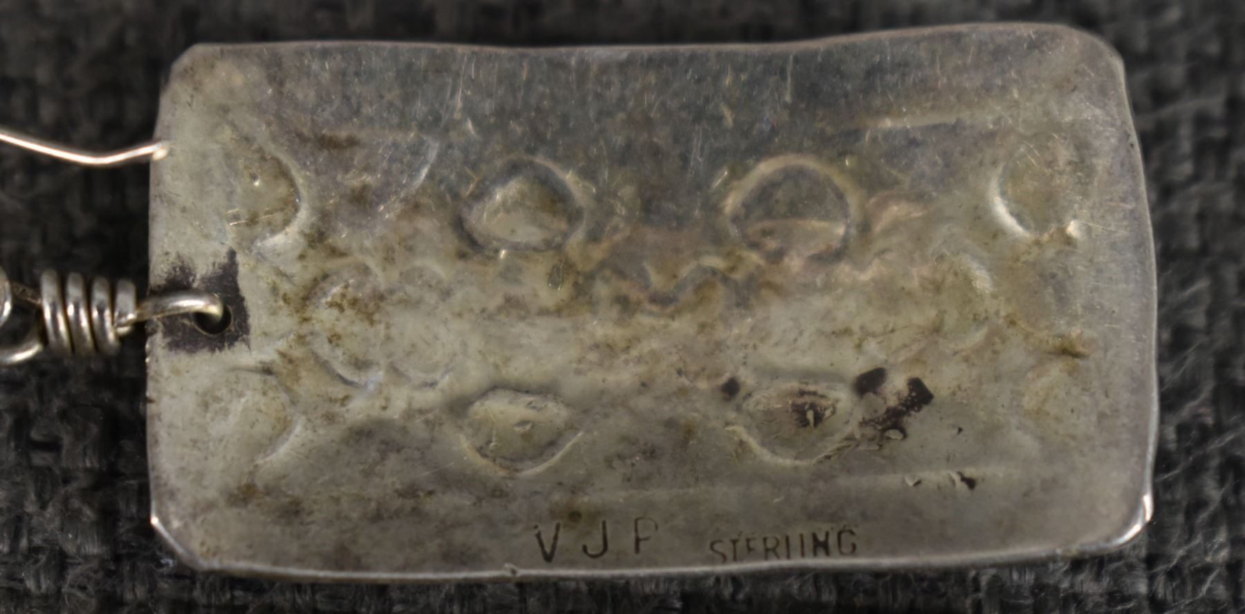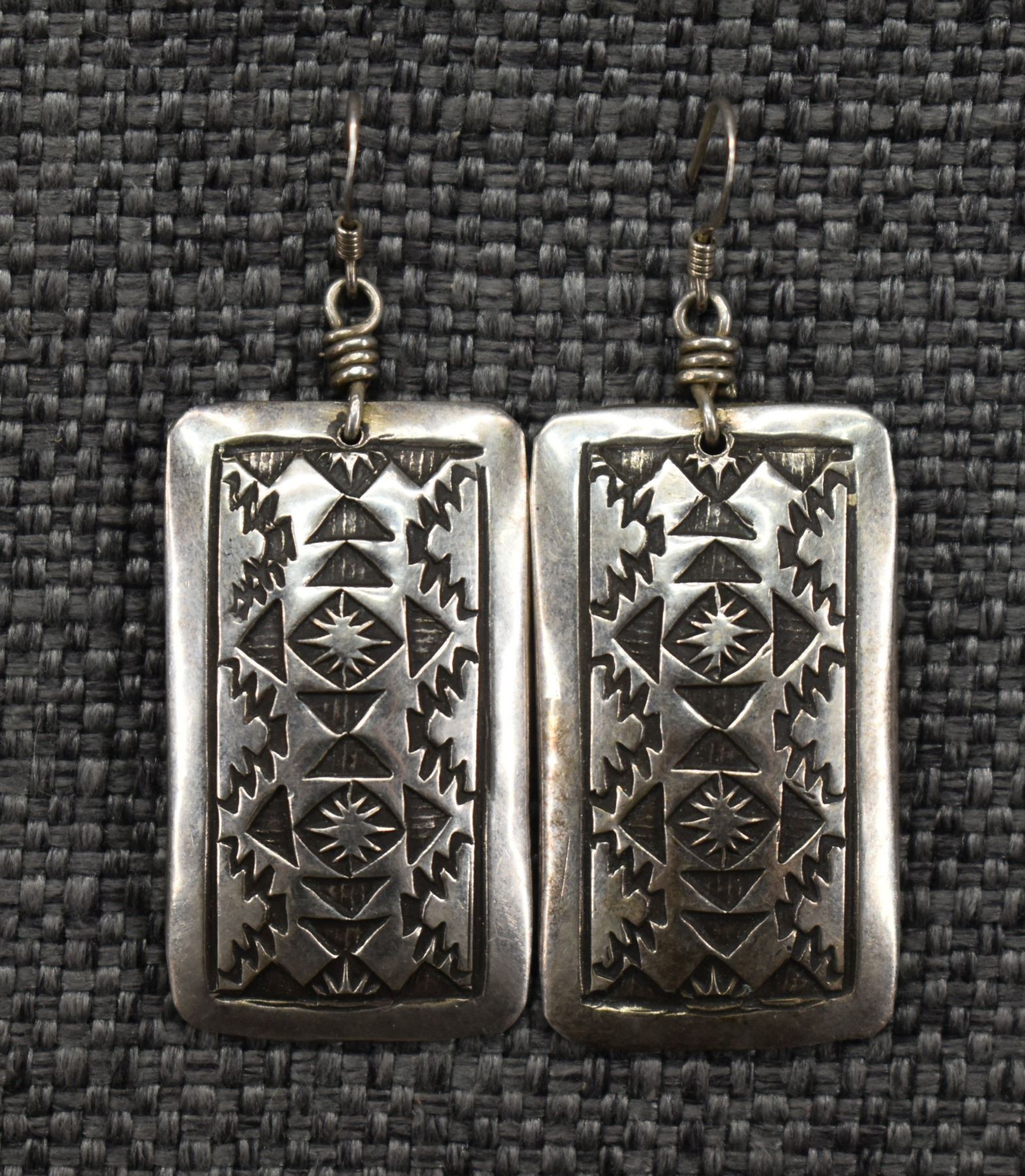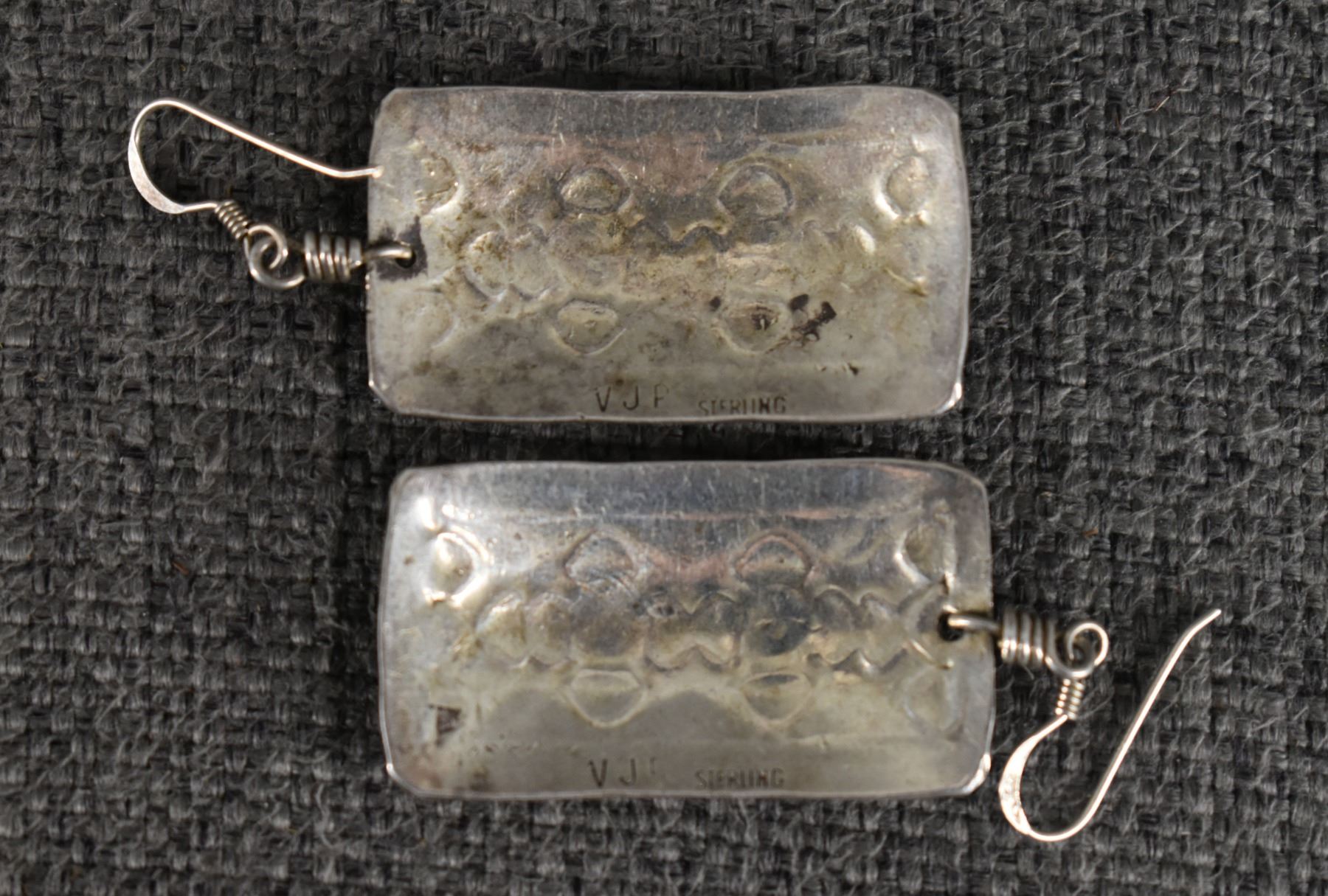 1980's Navajo. Sterling silver earrings. Signed V.J.P. 1.5'' x .75''. Total weight 12 grams