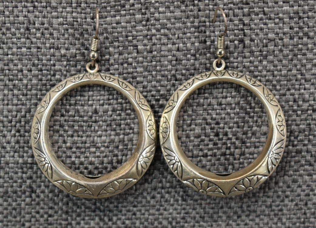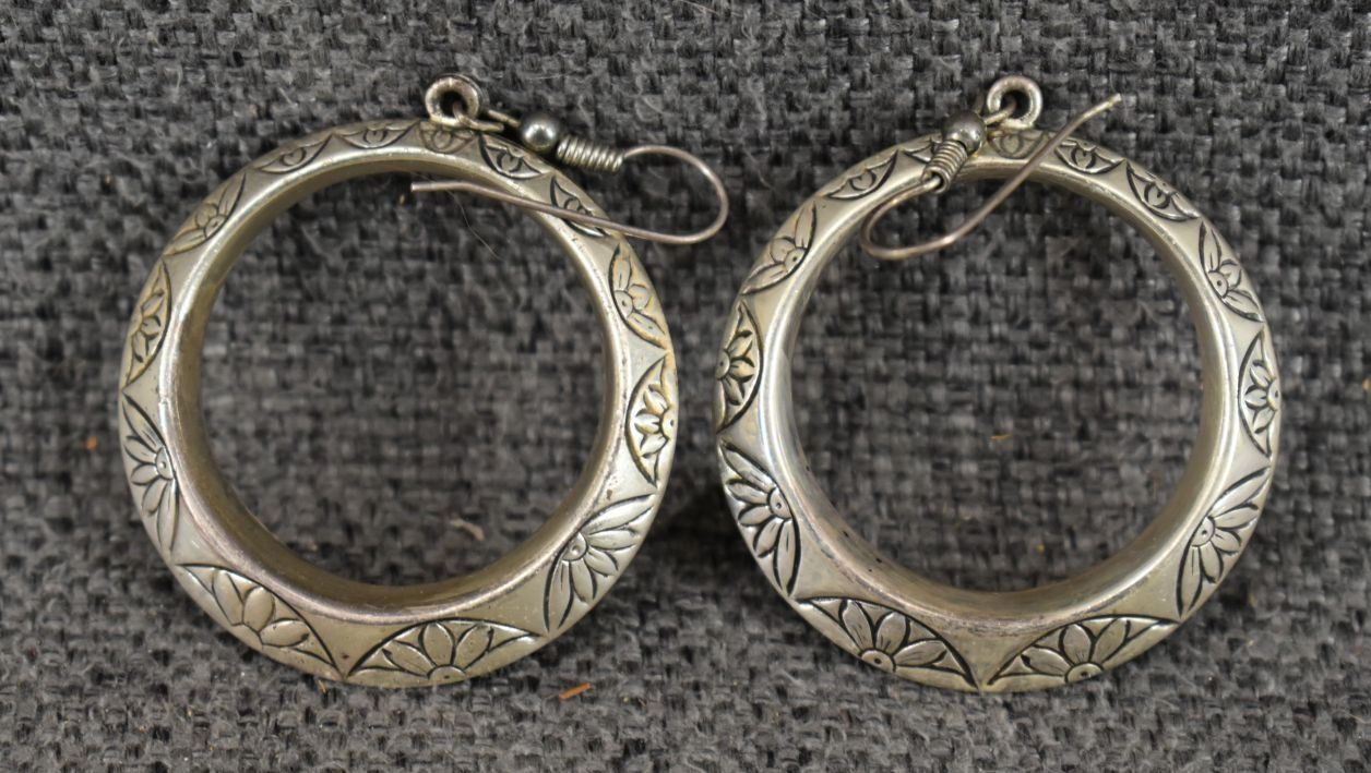1980's Navajo. Sterling silver earrings, 1.5'' dia. Total weight 15 grams
