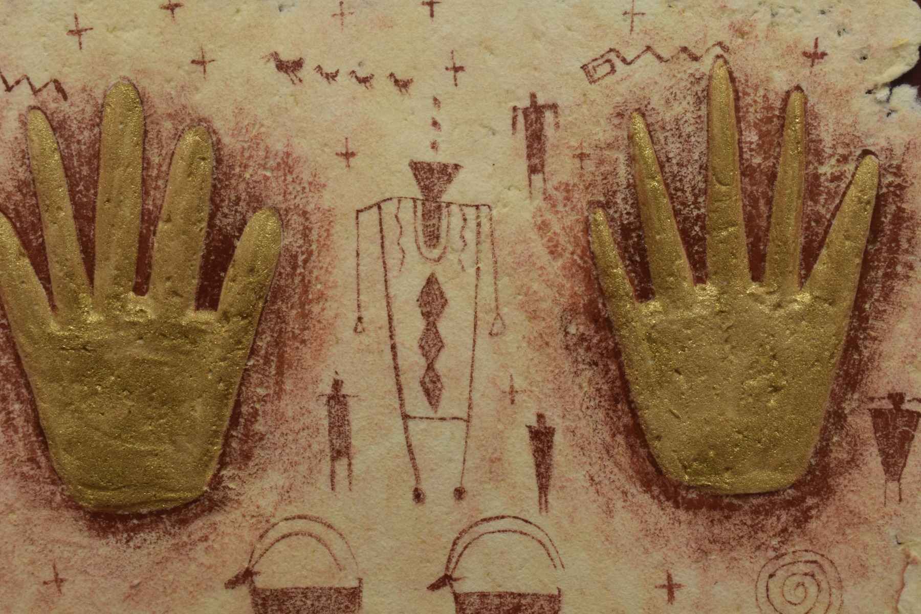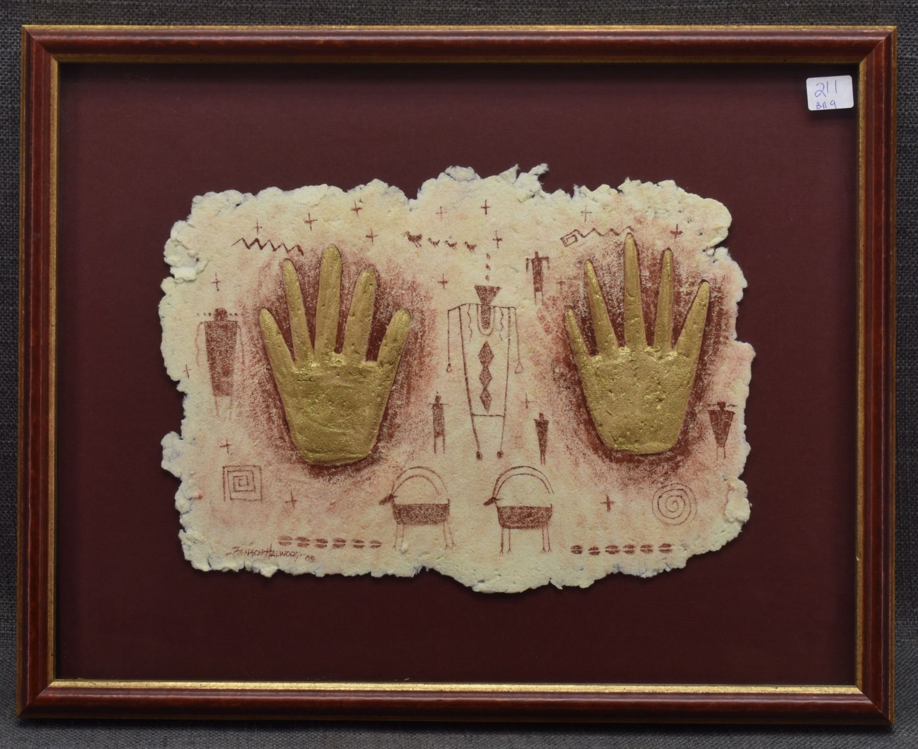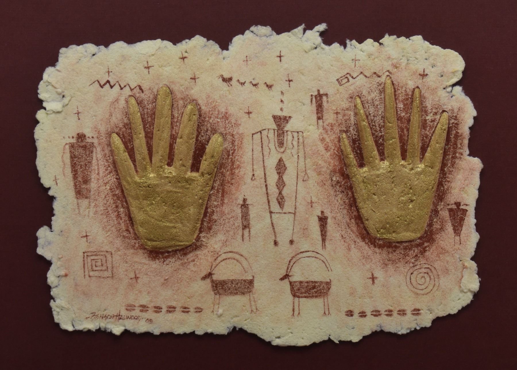 1998 Navajo. Original embossed paper depicting deer figure, signed Benson Halwood. 8''x 11'' frame size 13'' x 17''