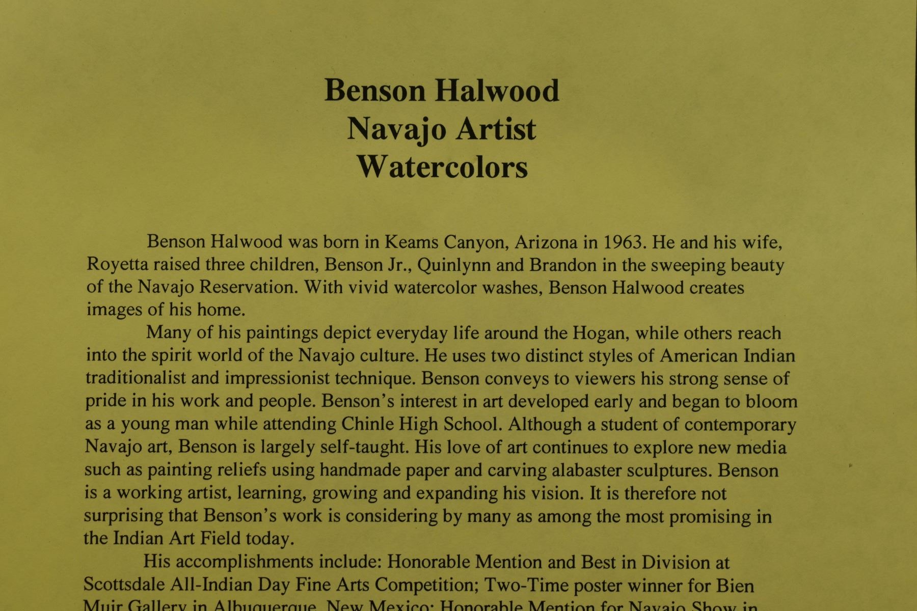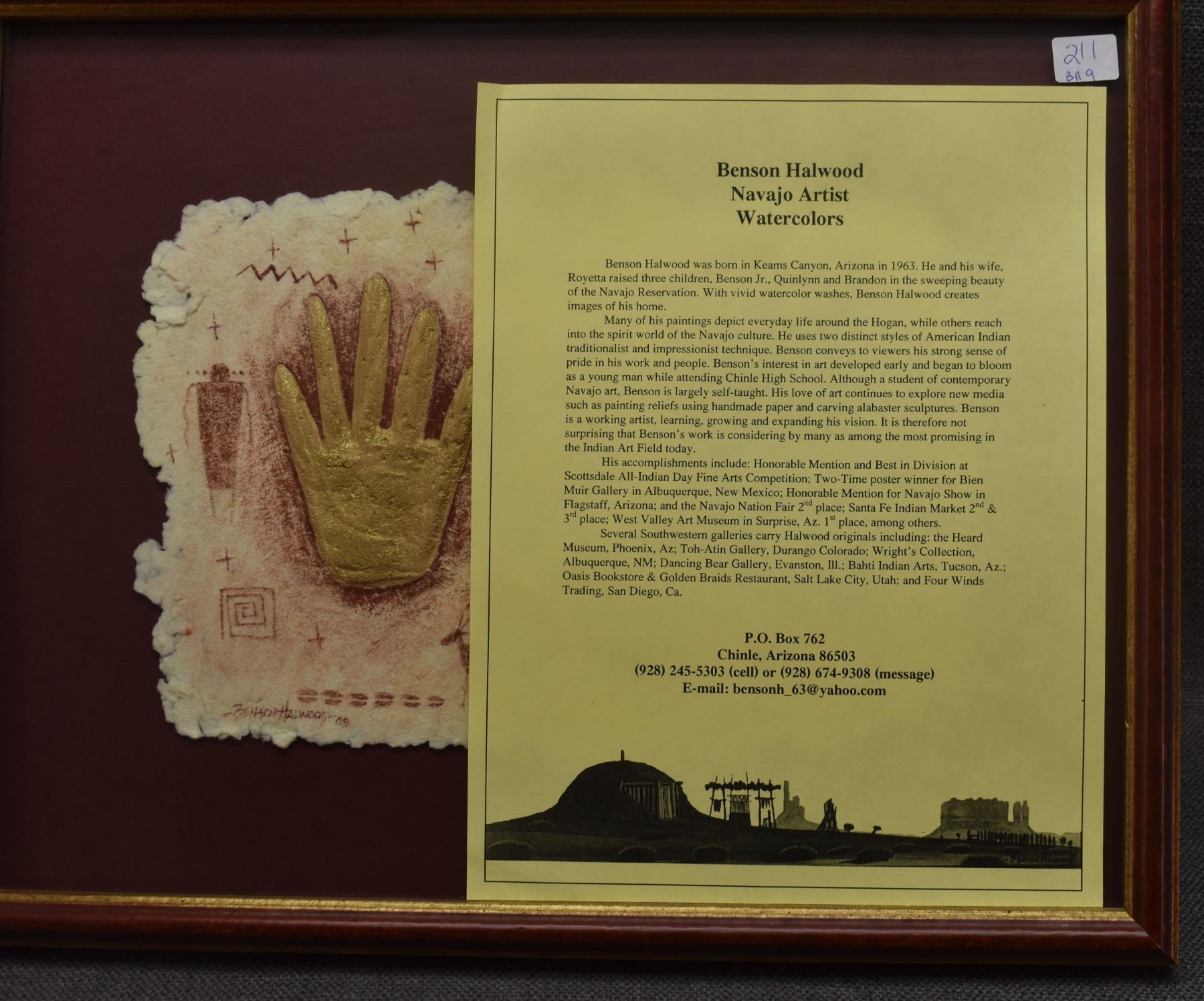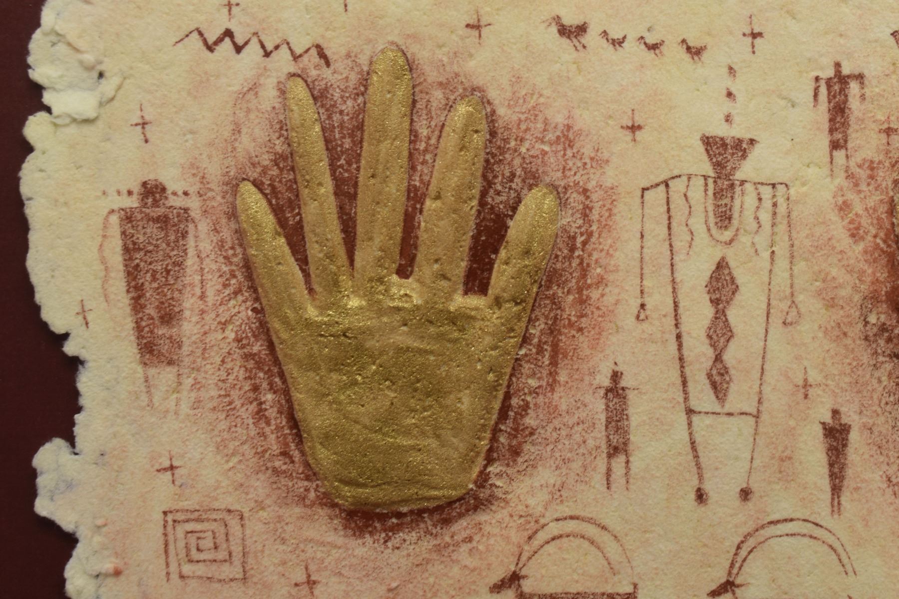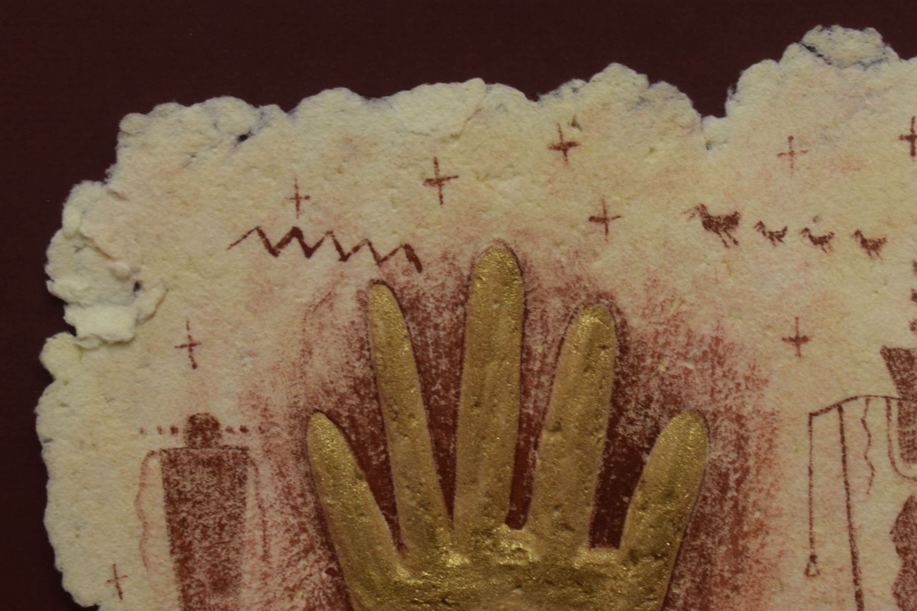 1998 Navajo. Original embossed paper depicting deer figure, signed Benson Halwood. 8''x 11'' frame size 13'' x 17''