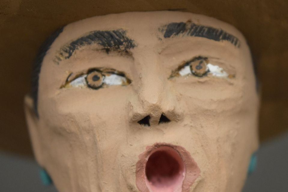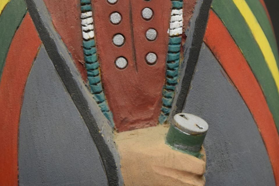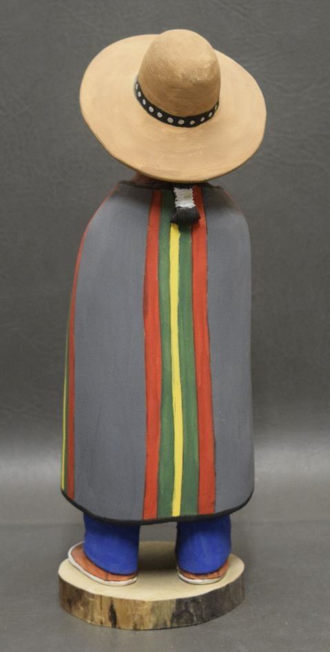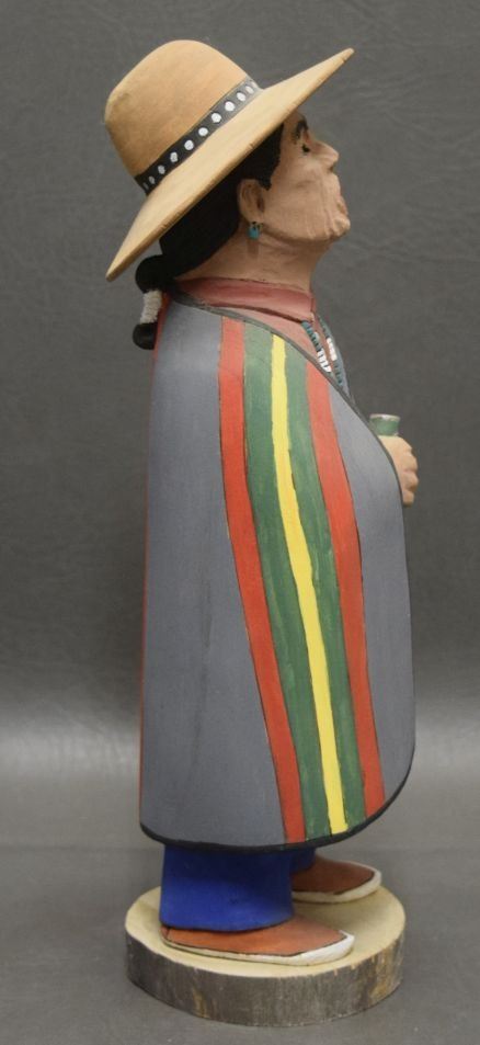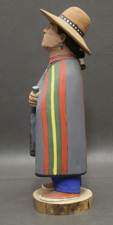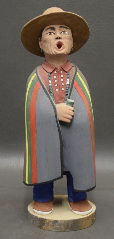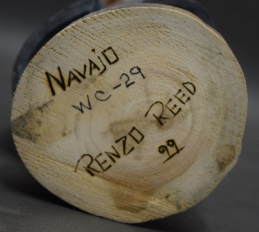 1999 hand carved and painted cotton wood depicting native man, signed Renzo Reed. 13'' tall