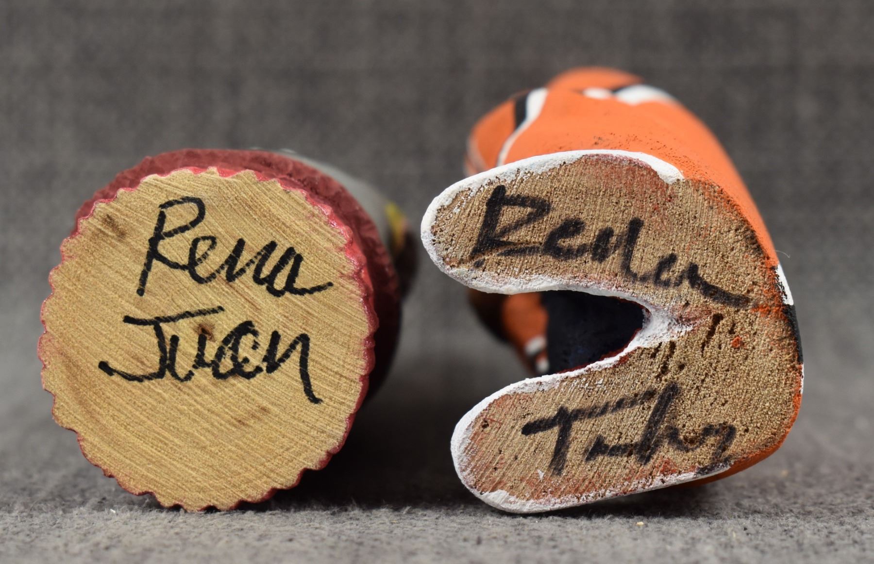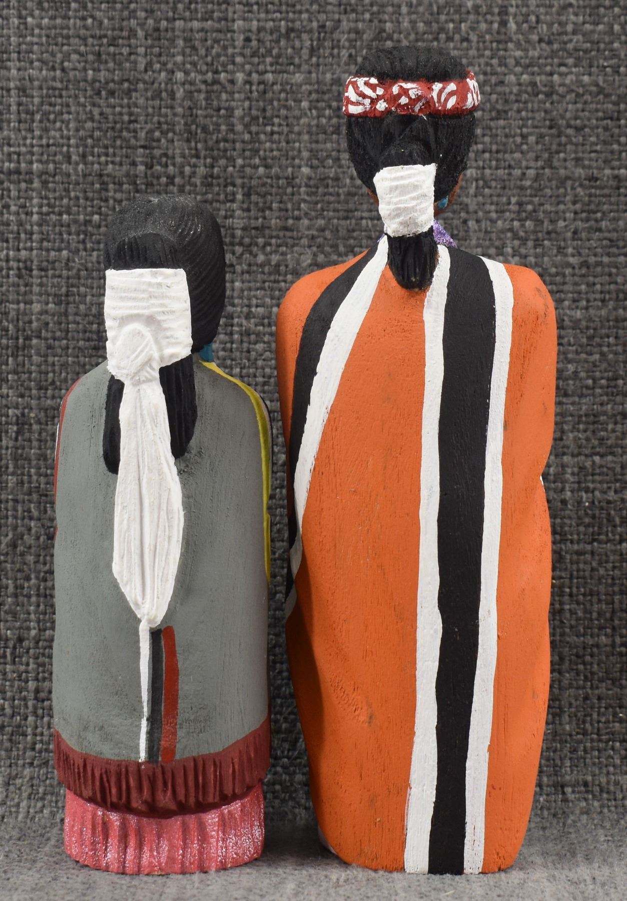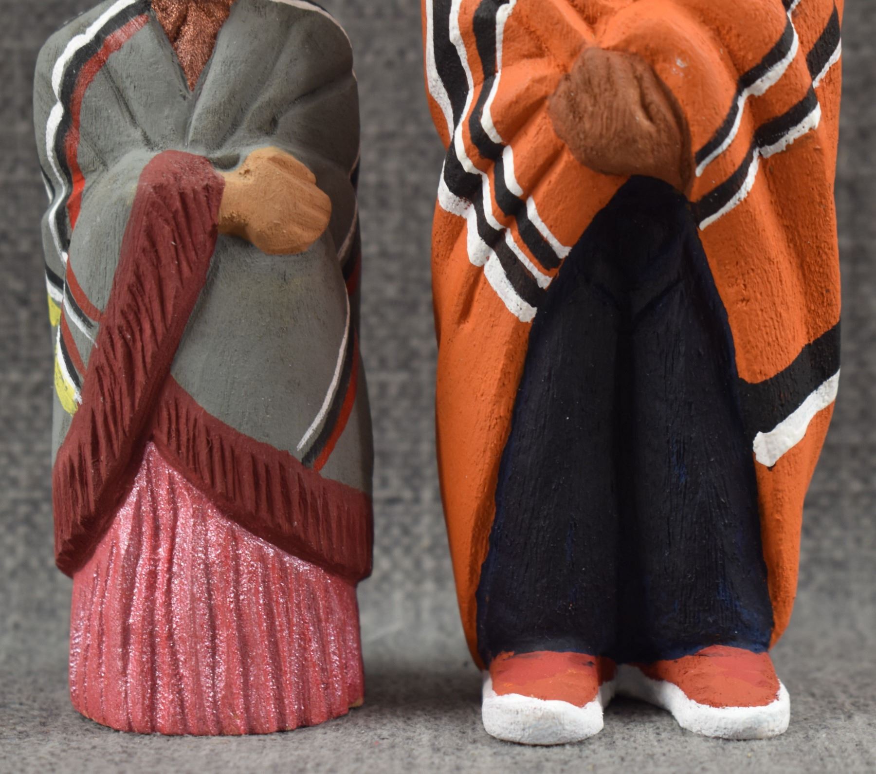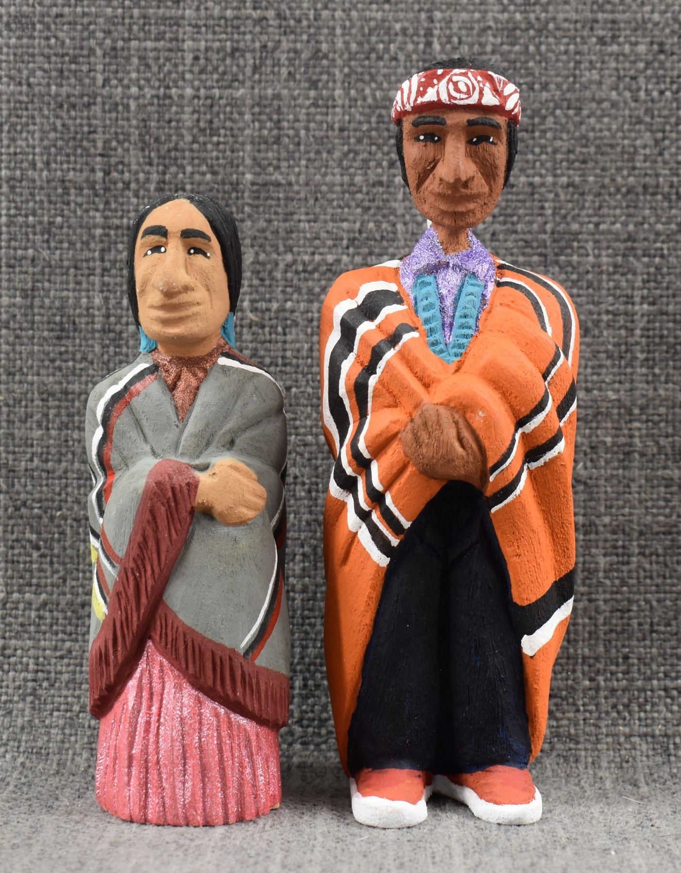 1990's Navajo, carved and painted wooden man and woman by Rena Juan 5.5" x 2" and 4.5" x 1.5"