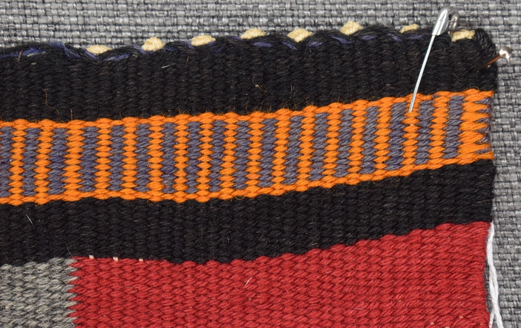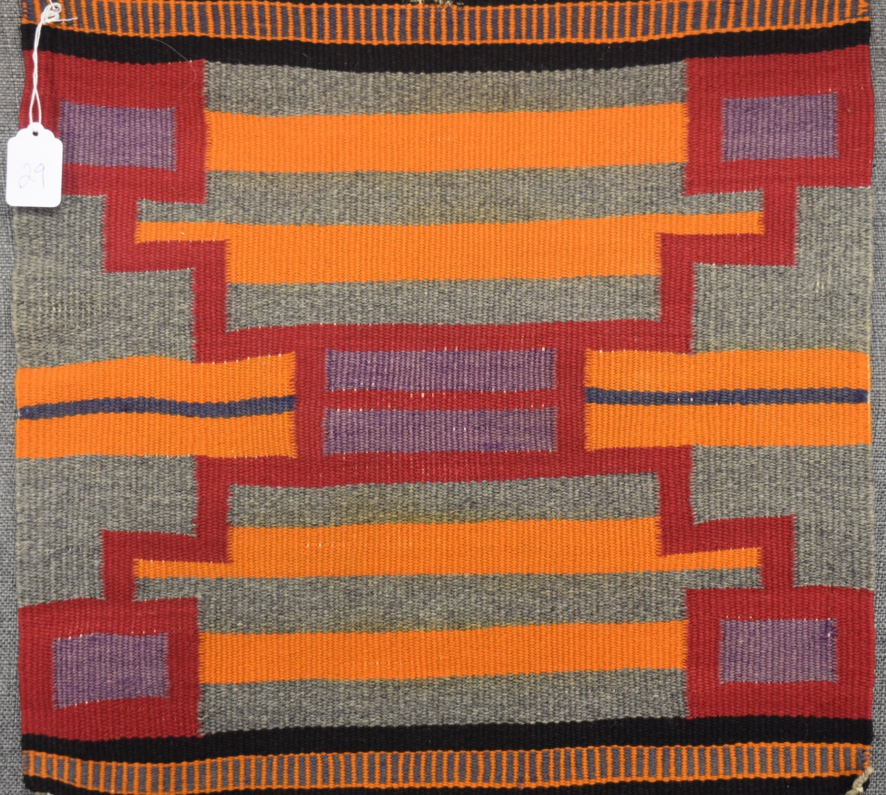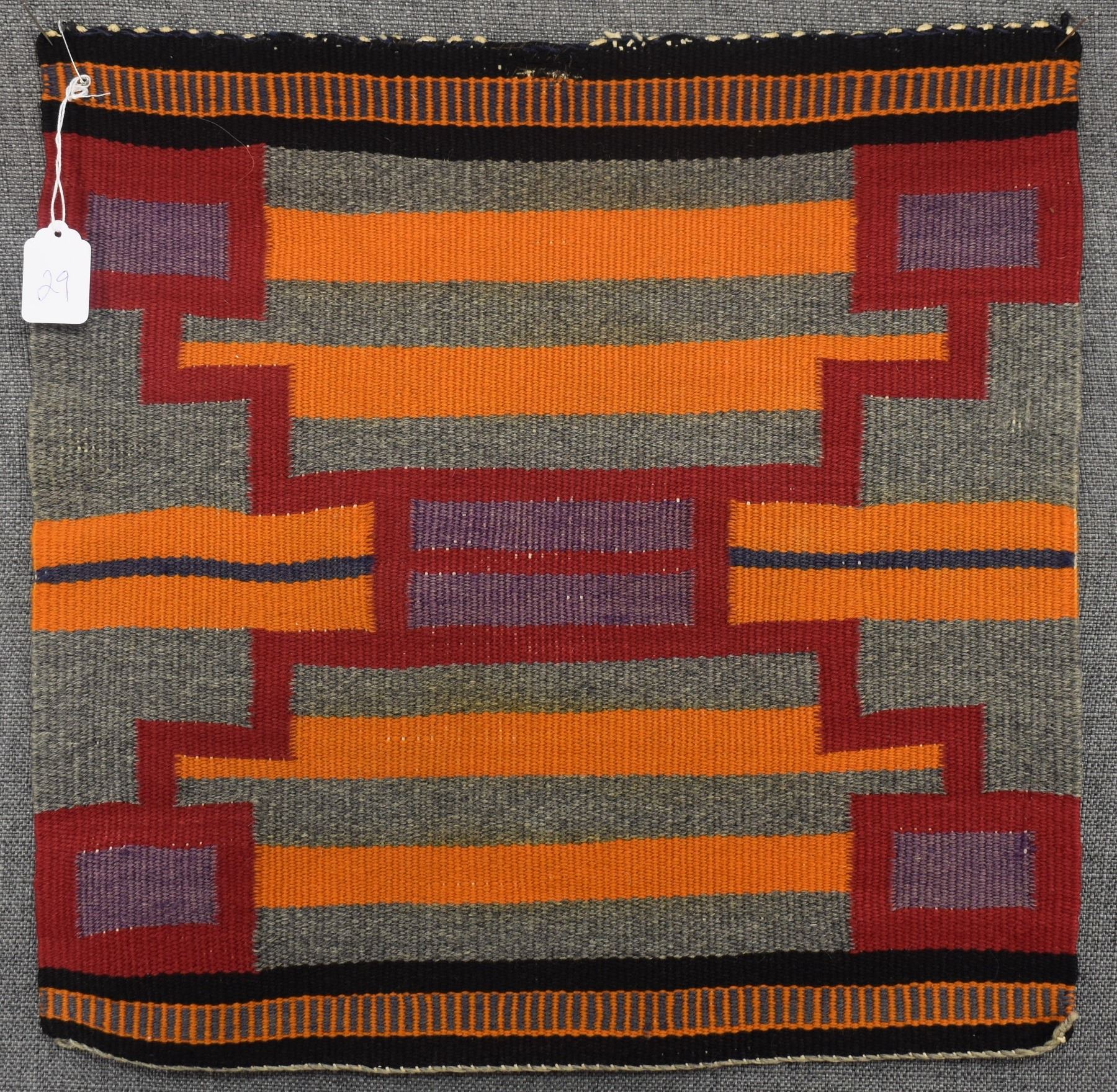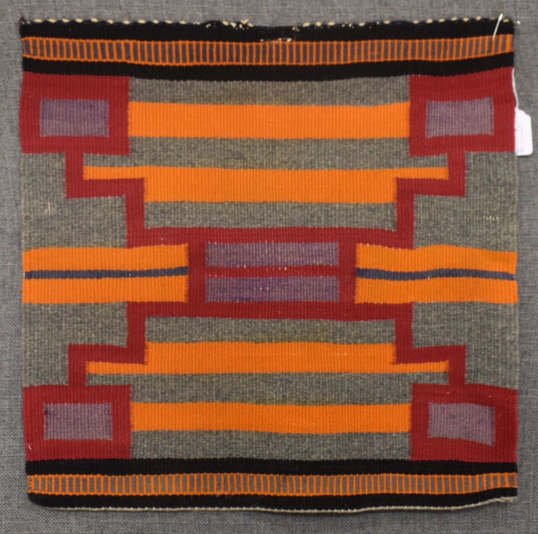 1900's Navajo. Hand woven storm pattern Germantown sampler textile. 18'' x 18''