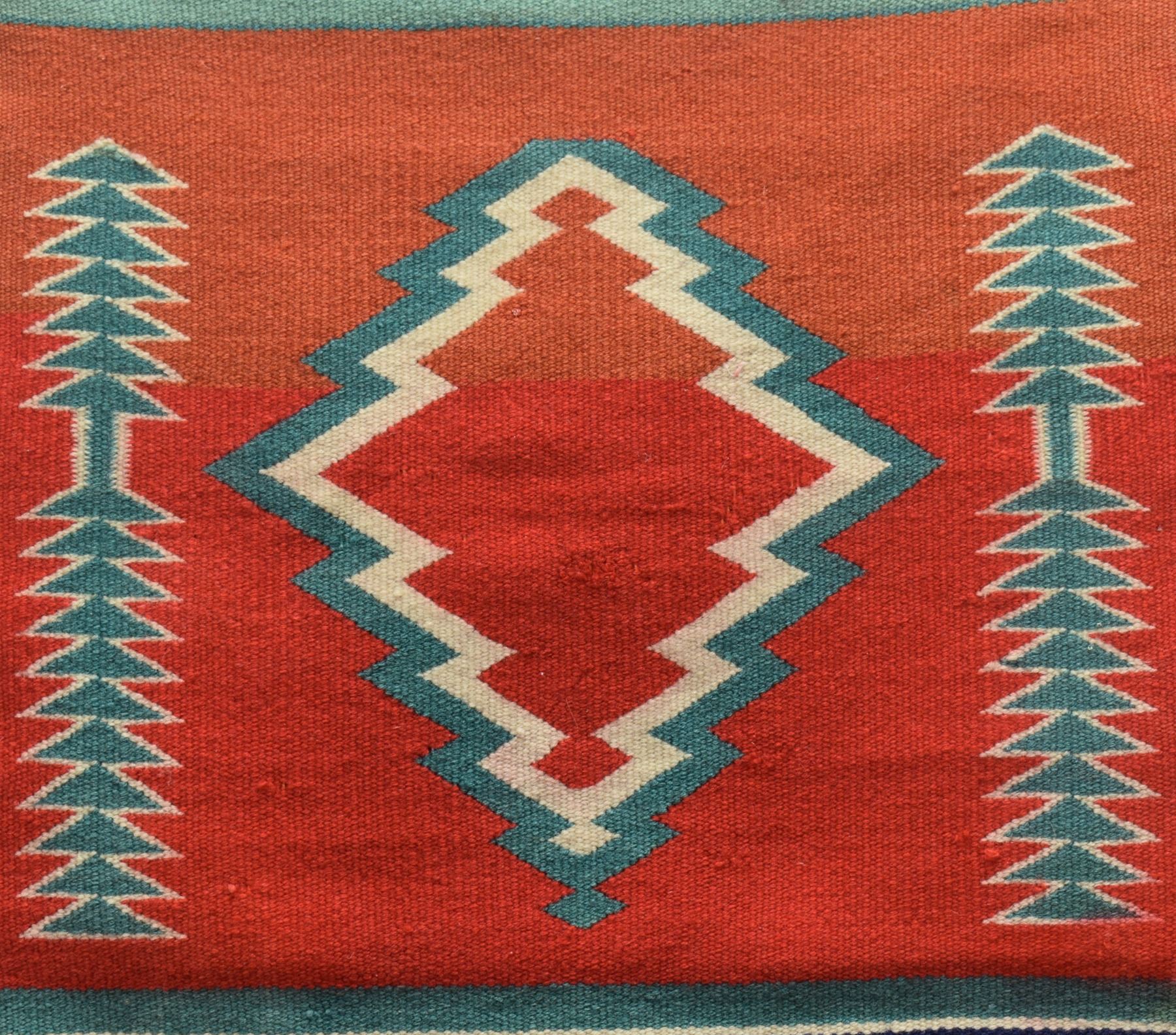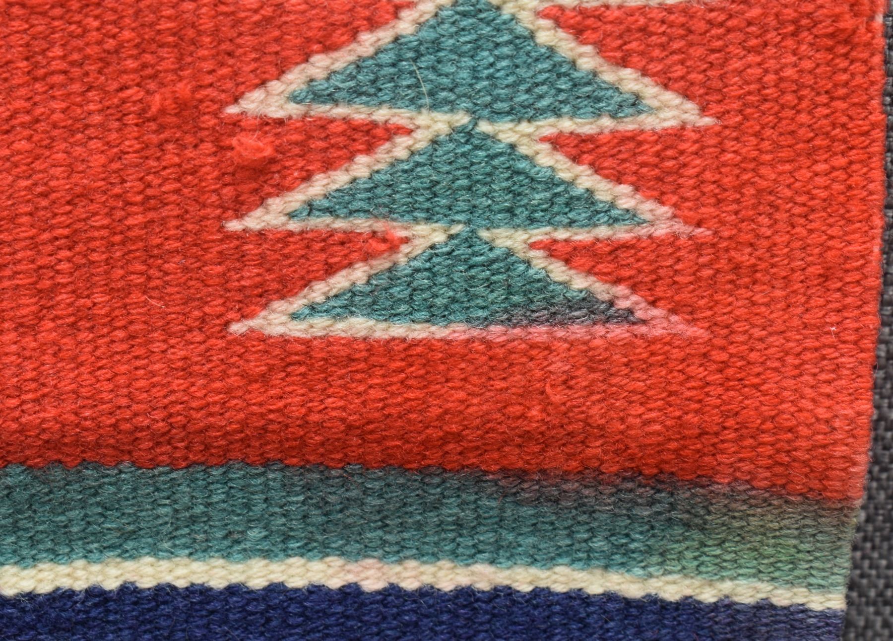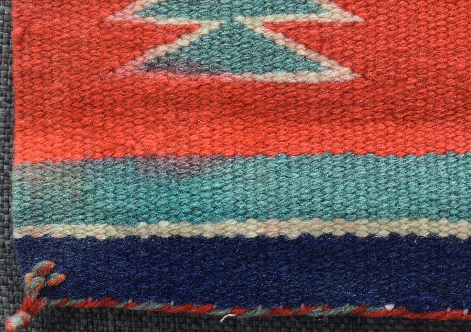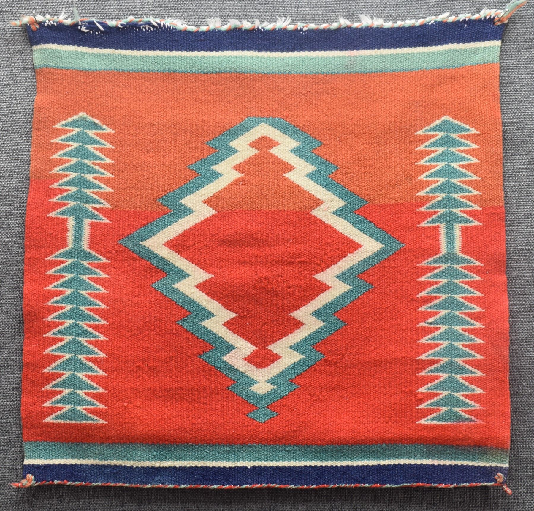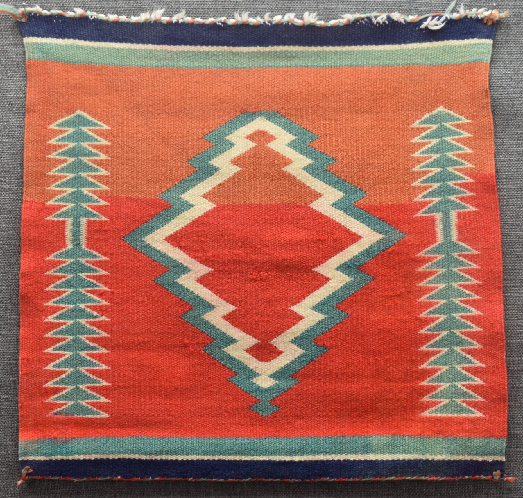 1900's Navajo. Hand woven geometric design Germantown sampler textile. 18'' x 19''