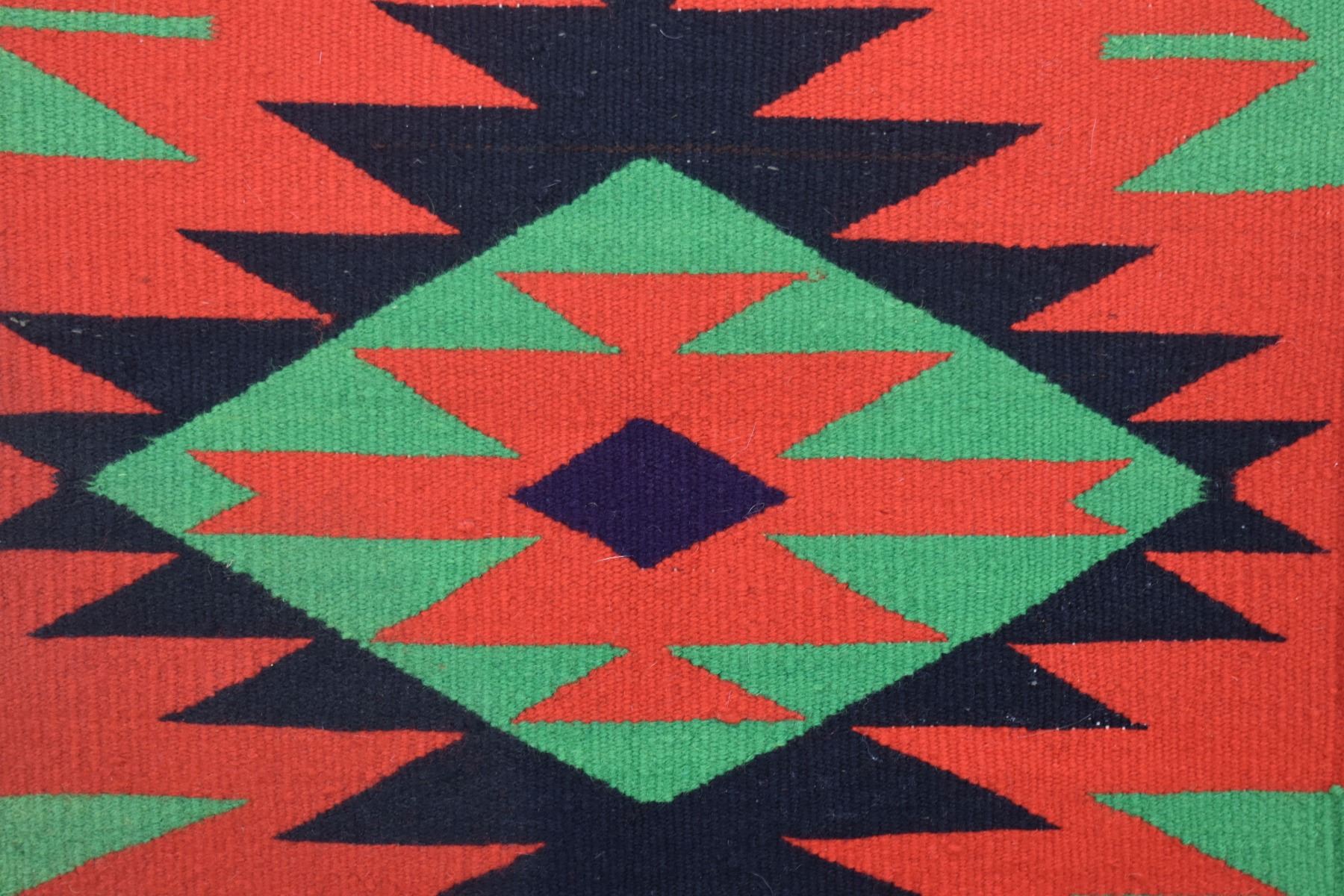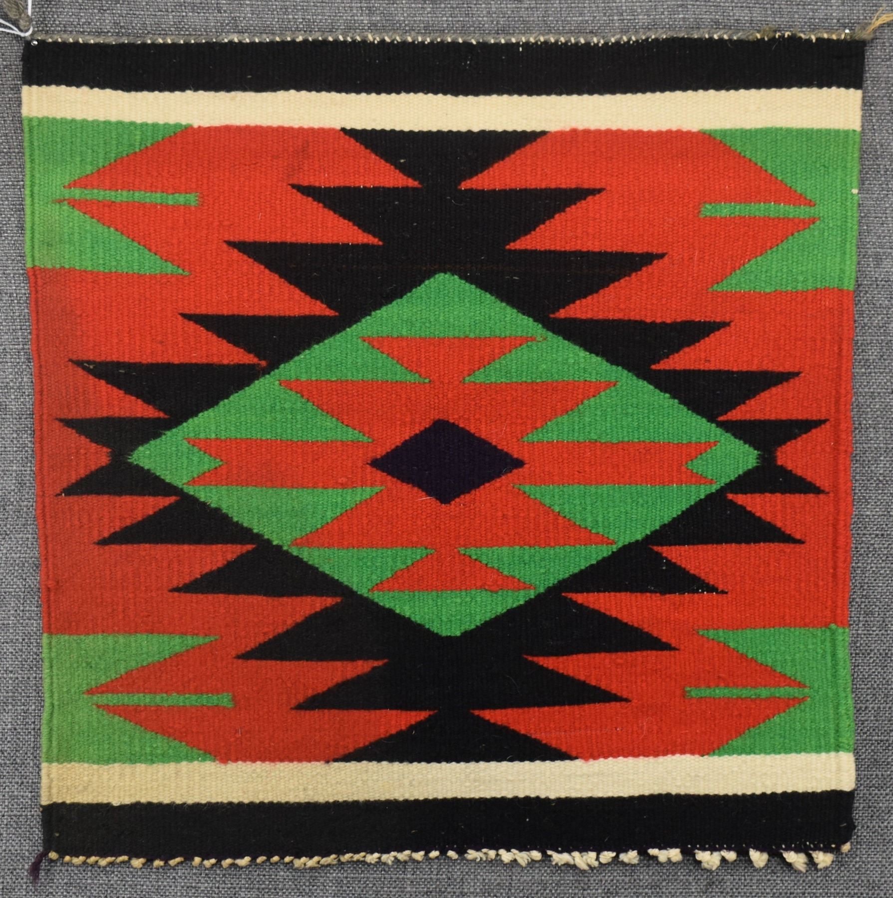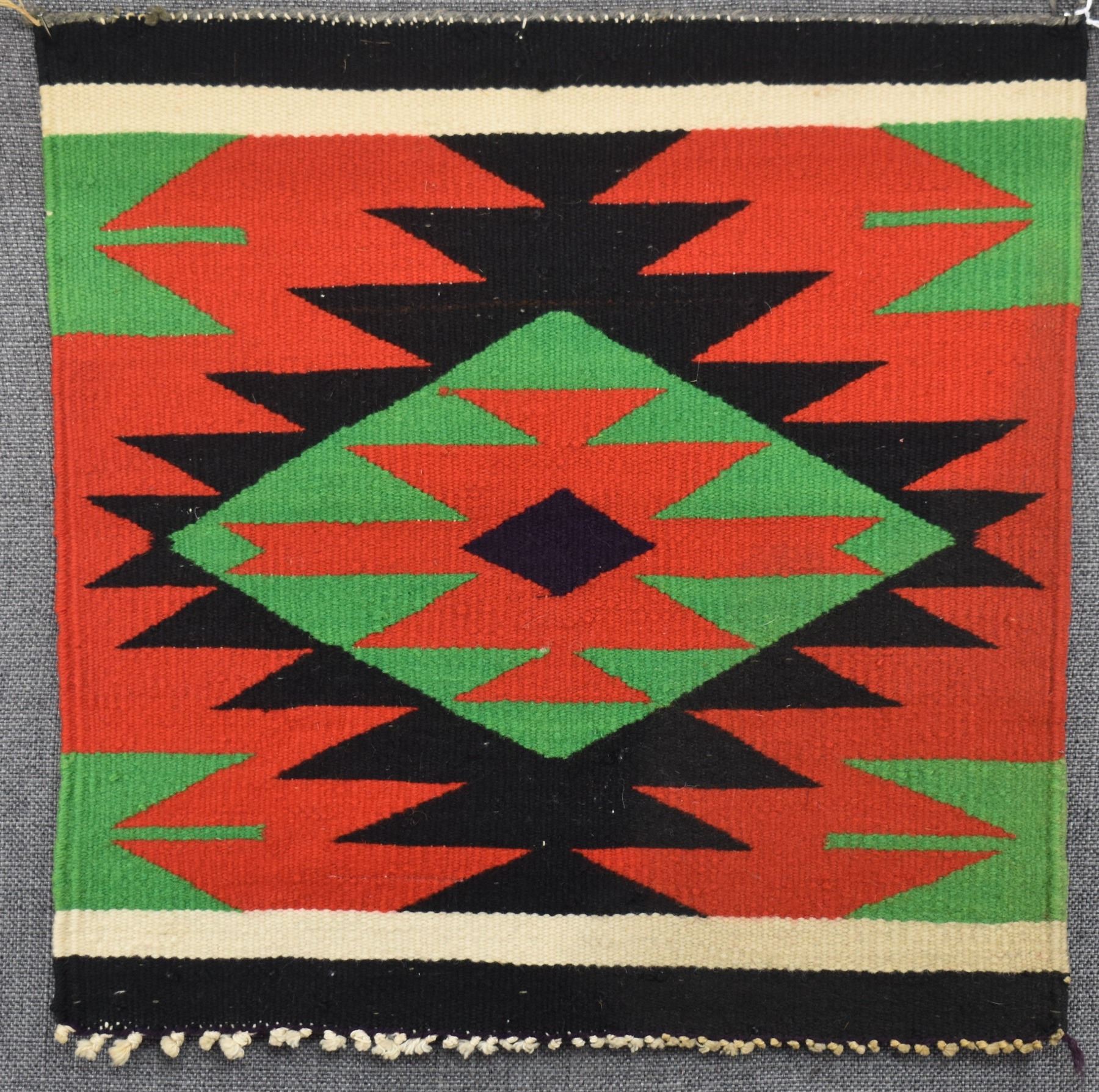1900's Navajo. Hand woven diamond design Germantown sampler. 16'' x 16''