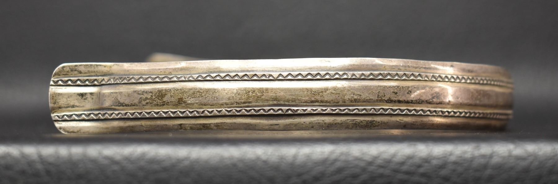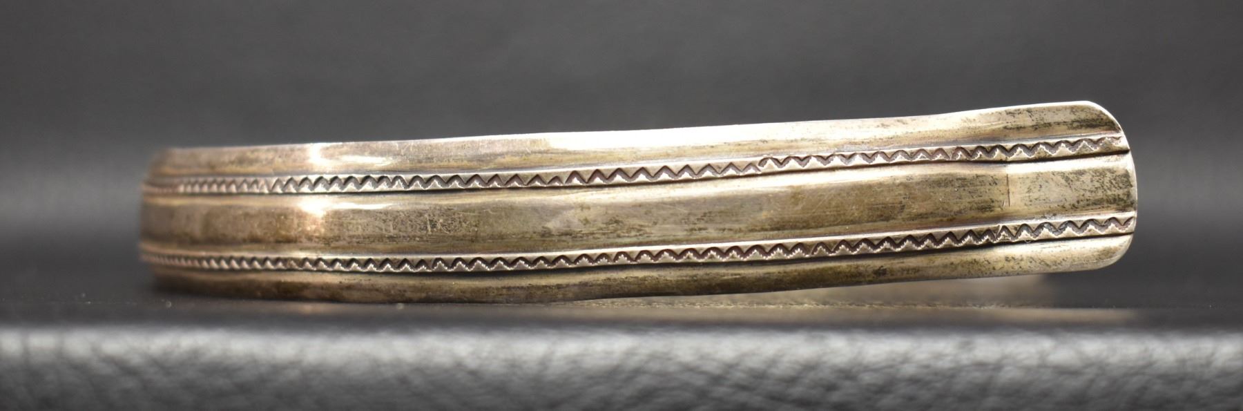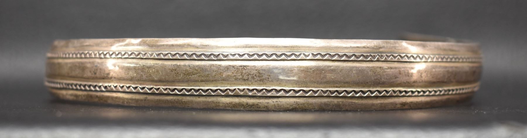 1960-70's Navajo, sterling silver stamped design 1.75" x 13.75" total weight 65 grams