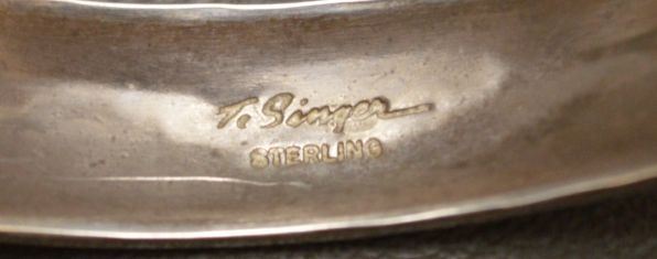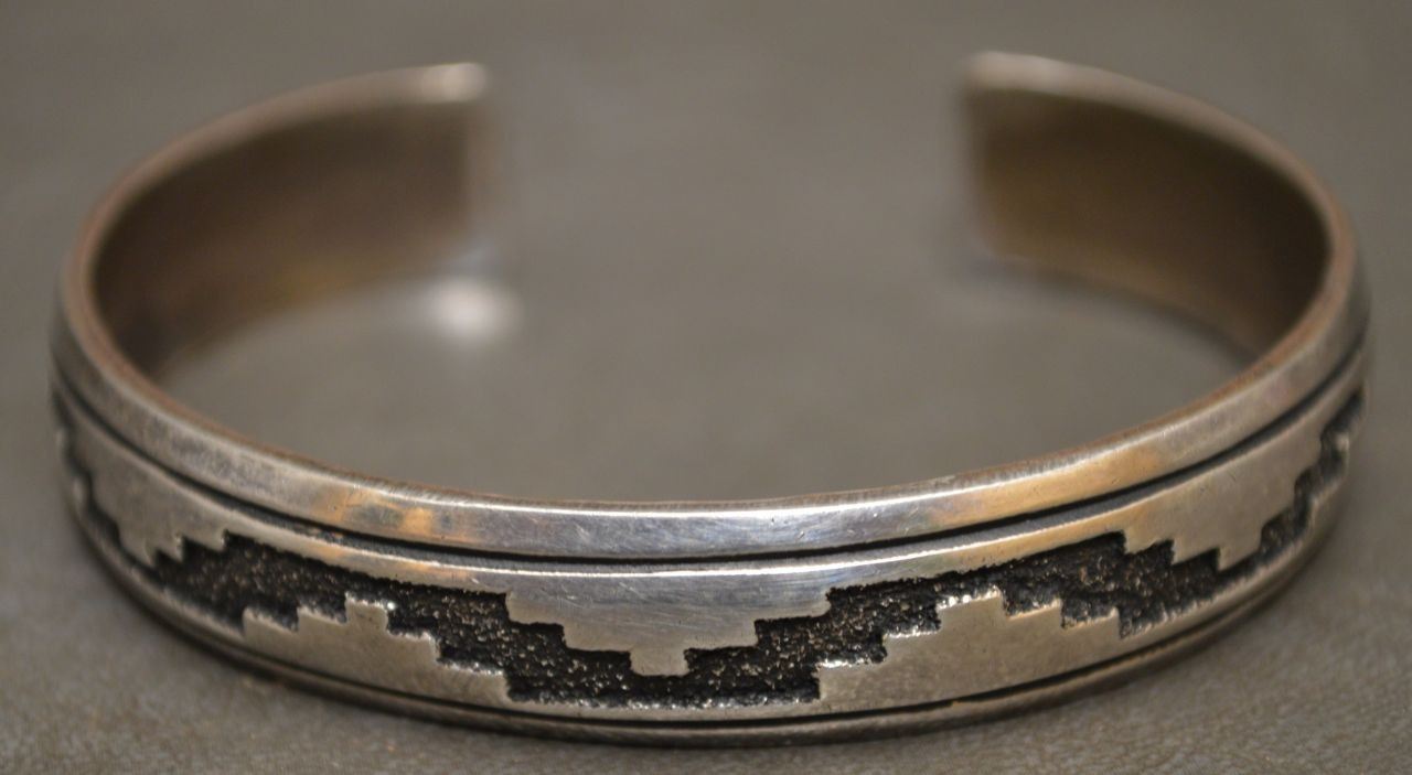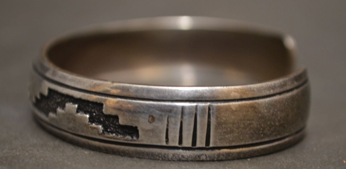 1980's Navajo Indian. Sterling silver cut out design bracelet signed T Singer, .5'' x 5.25'' x 1'' total weight 21 grams
