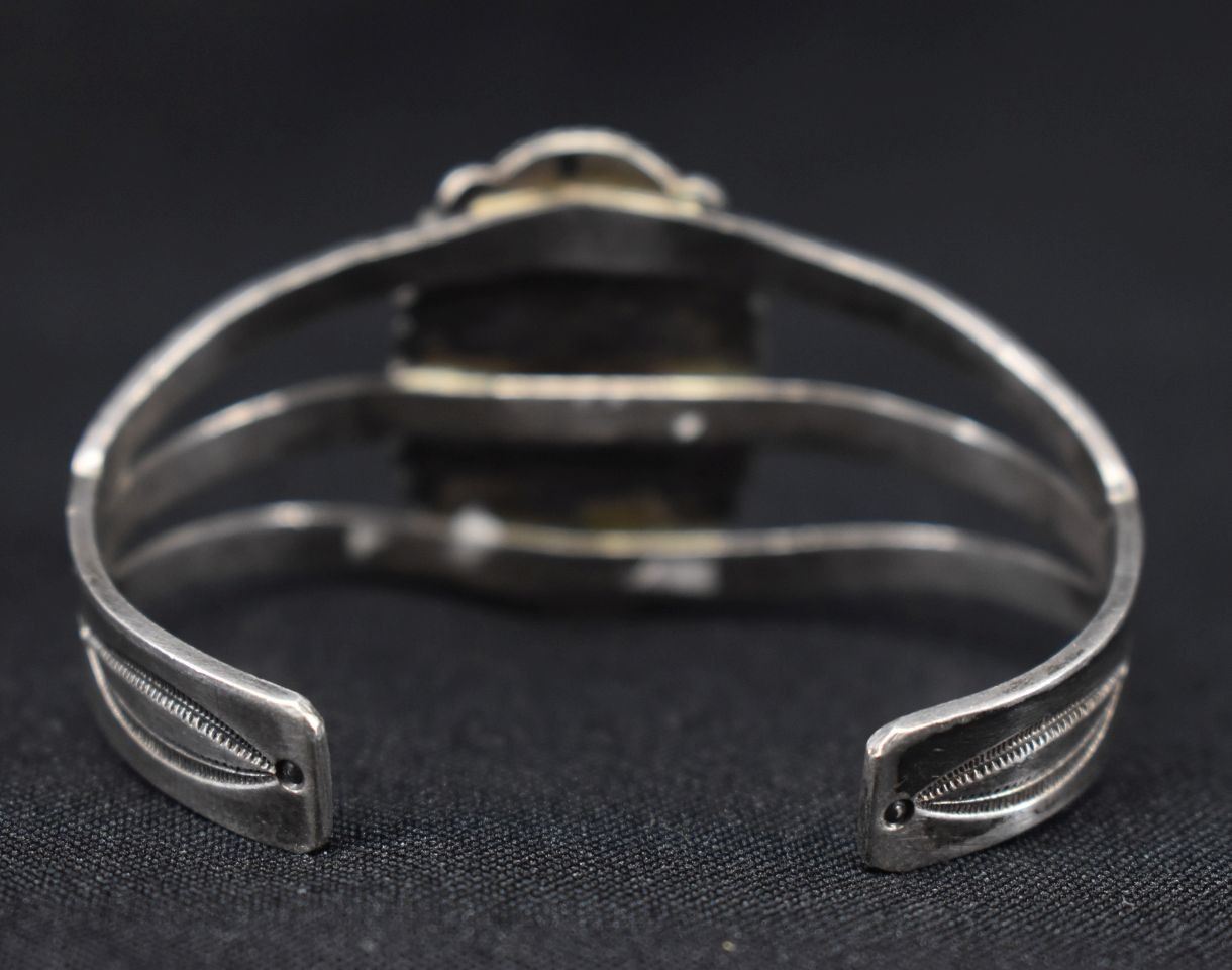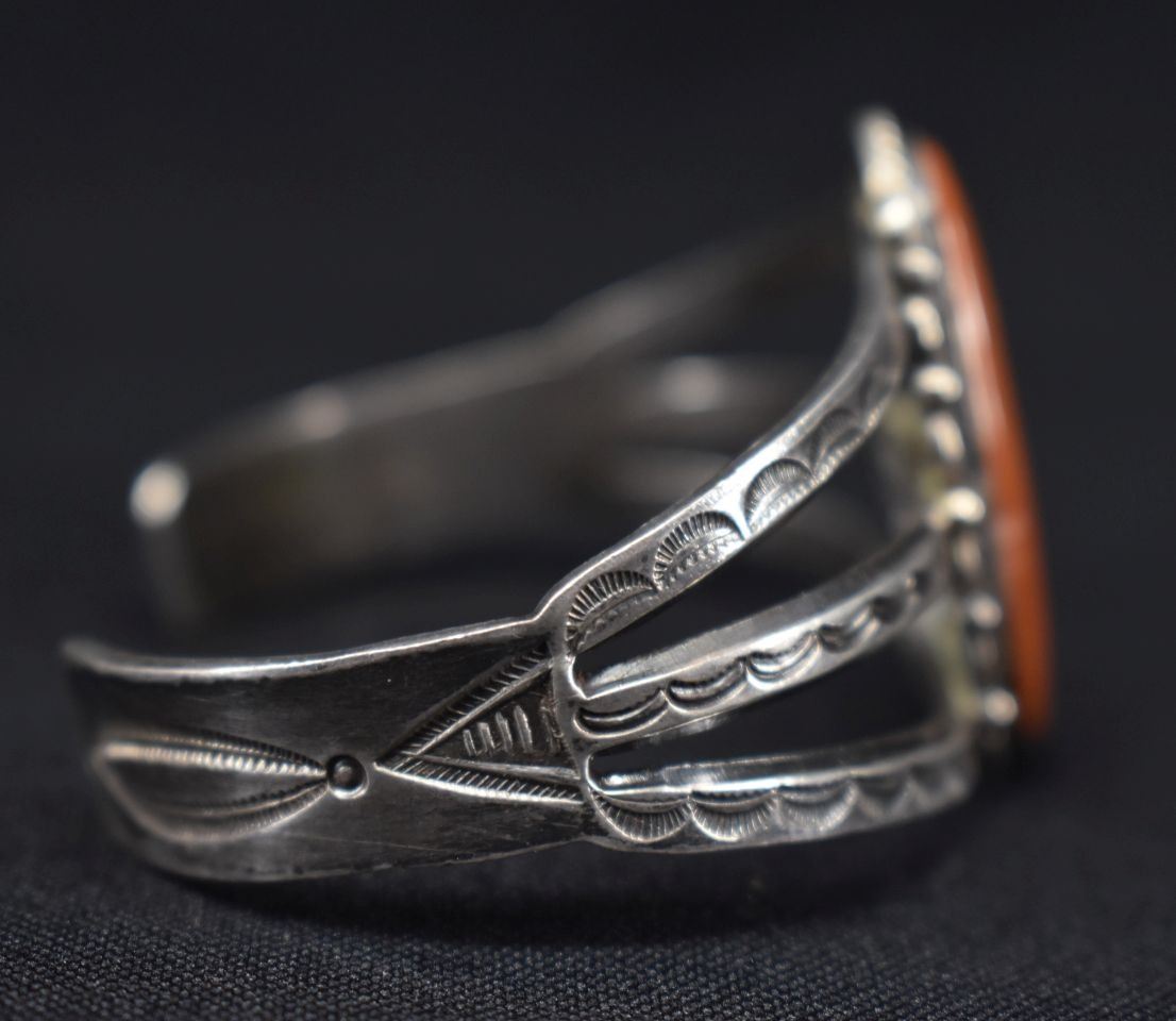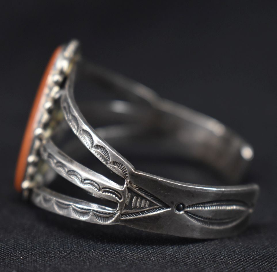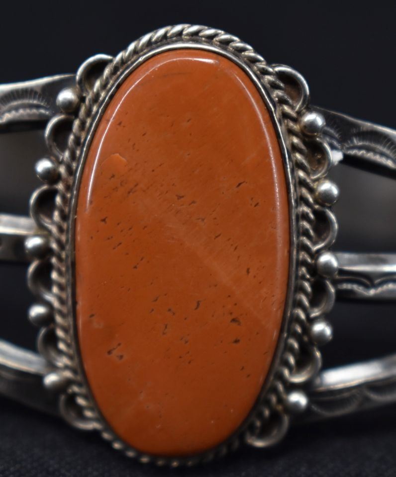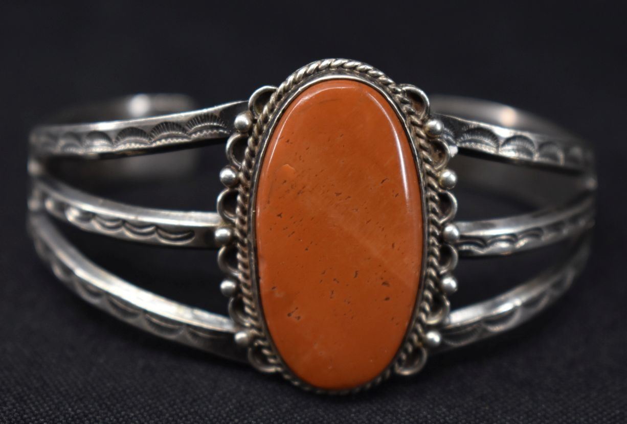 01940's Navajo Indian. Sterling silver and agate braclet,1.5'' x 5.5'' x 1.5'' total weight35 grams'