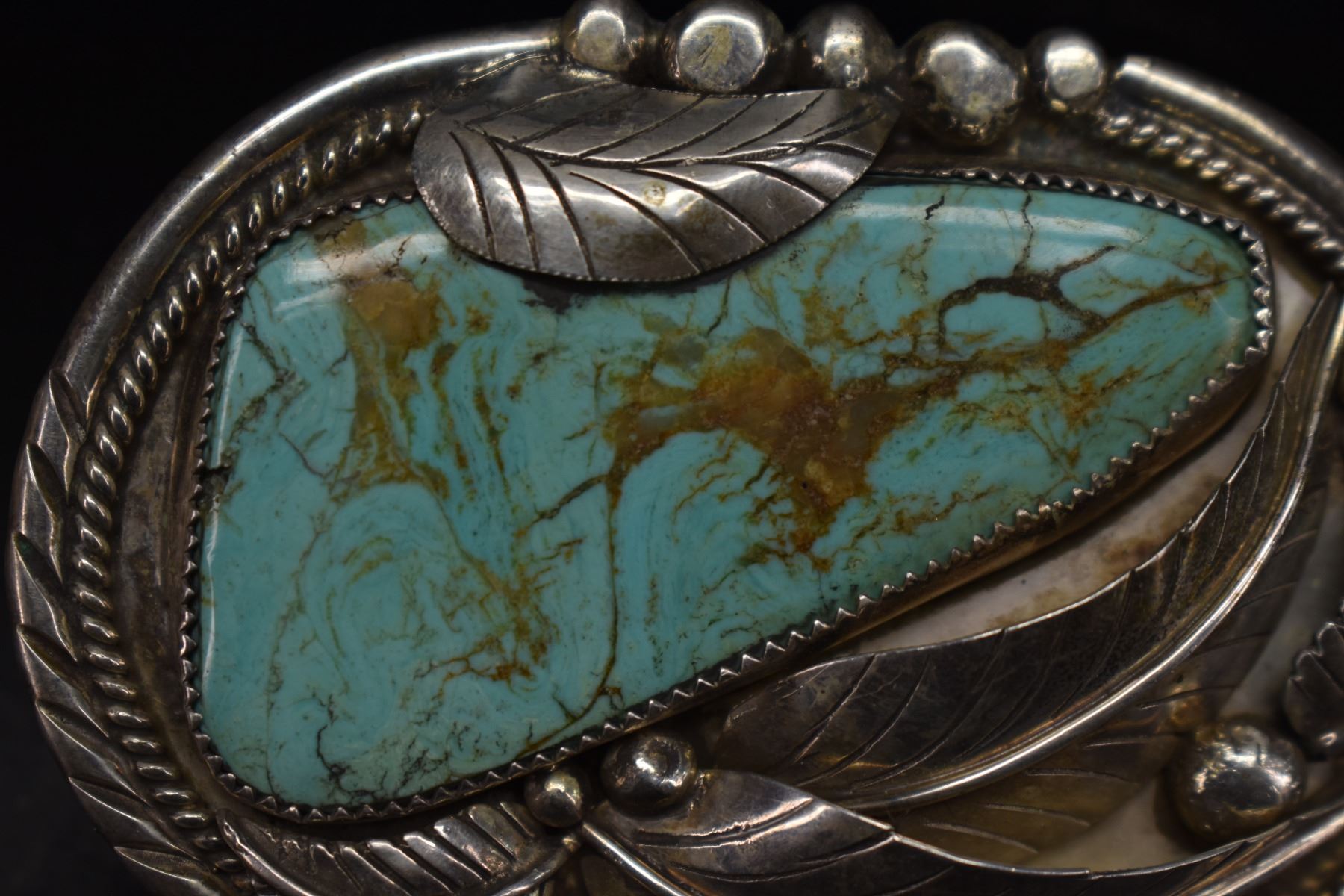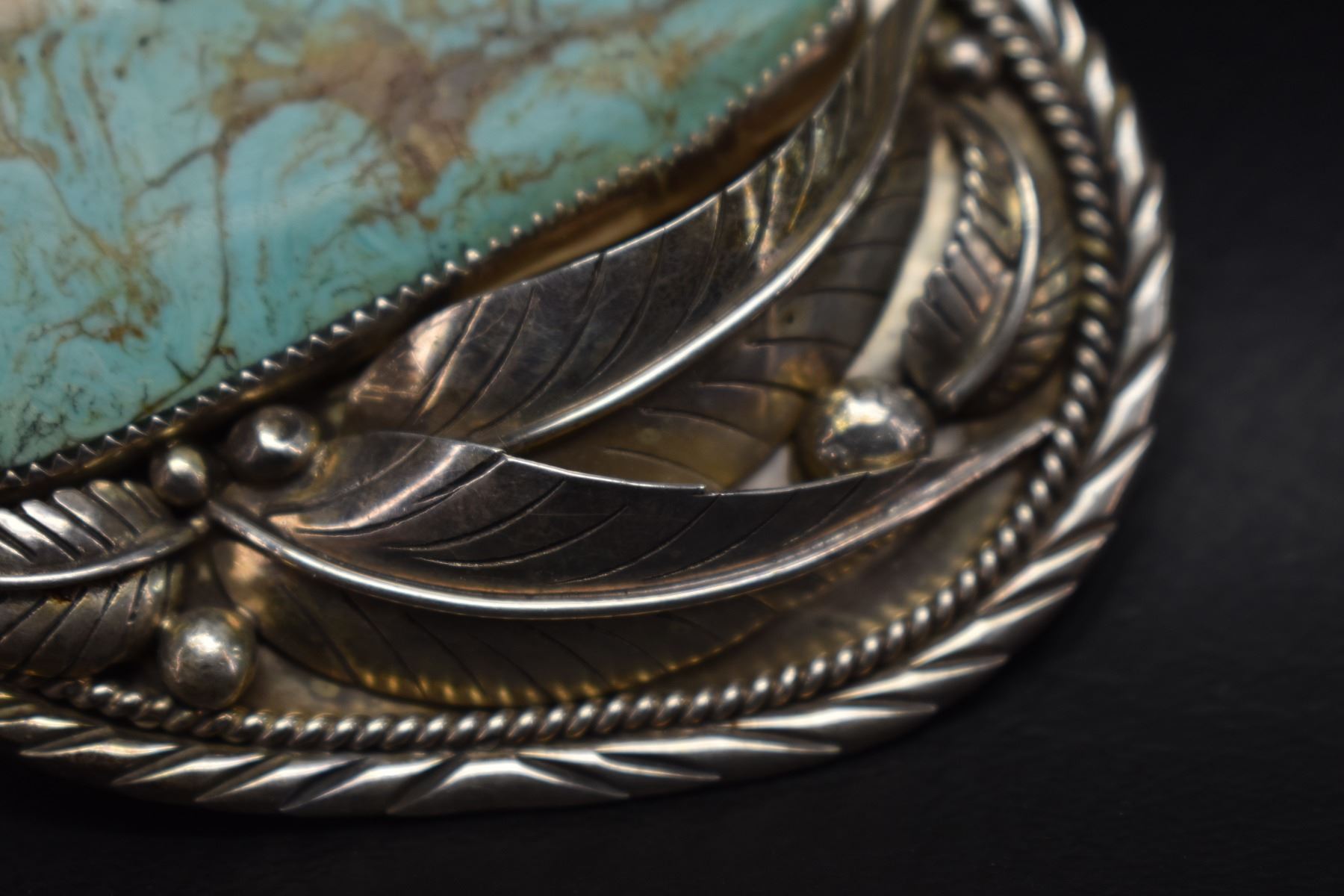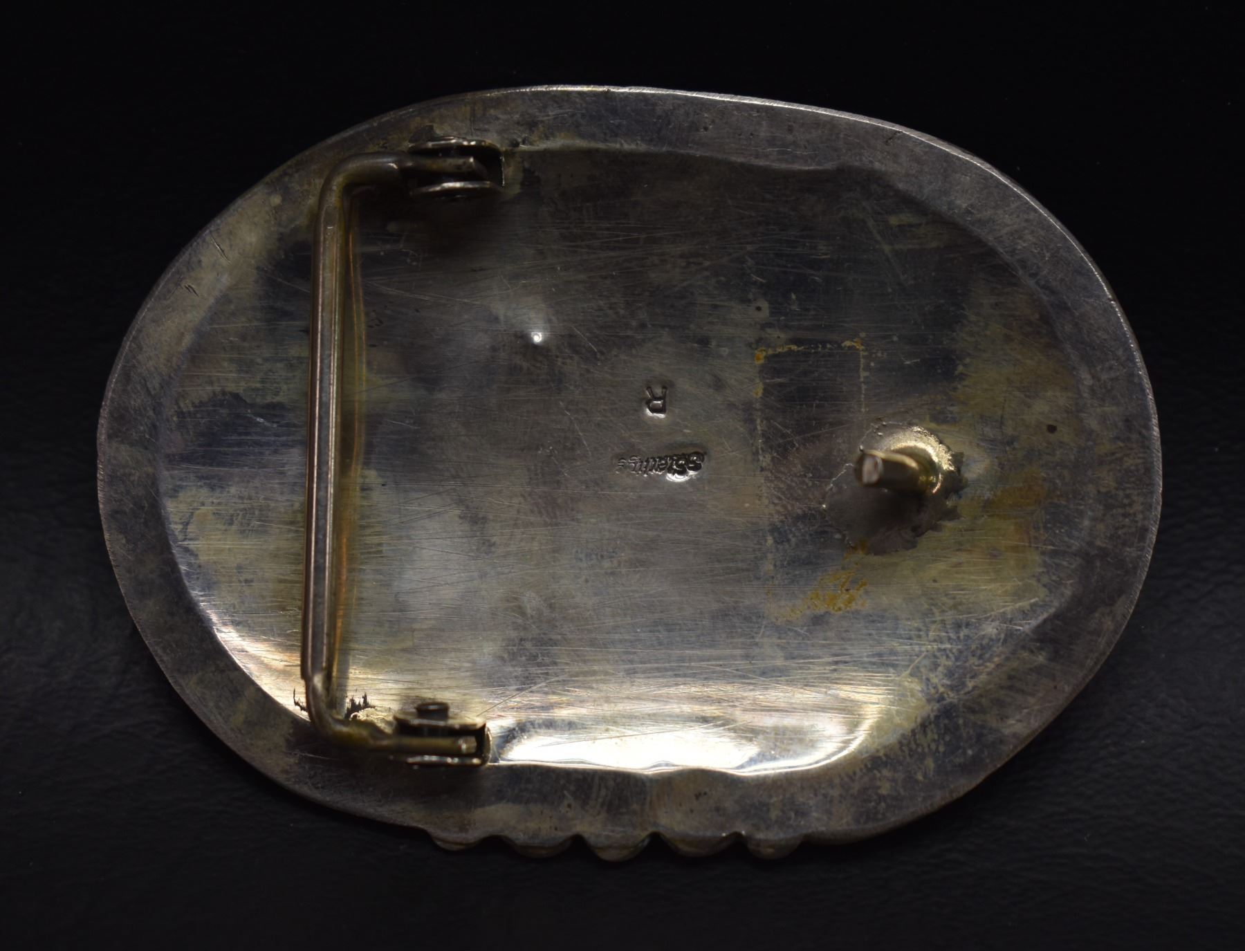 1970's Navajo Indian. Sterling silver and turquoise buckle. 2.25'' x 3'' made for 1.5'' belt . Total weight 50 grams