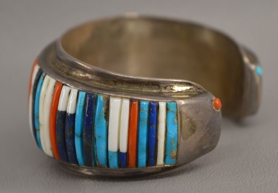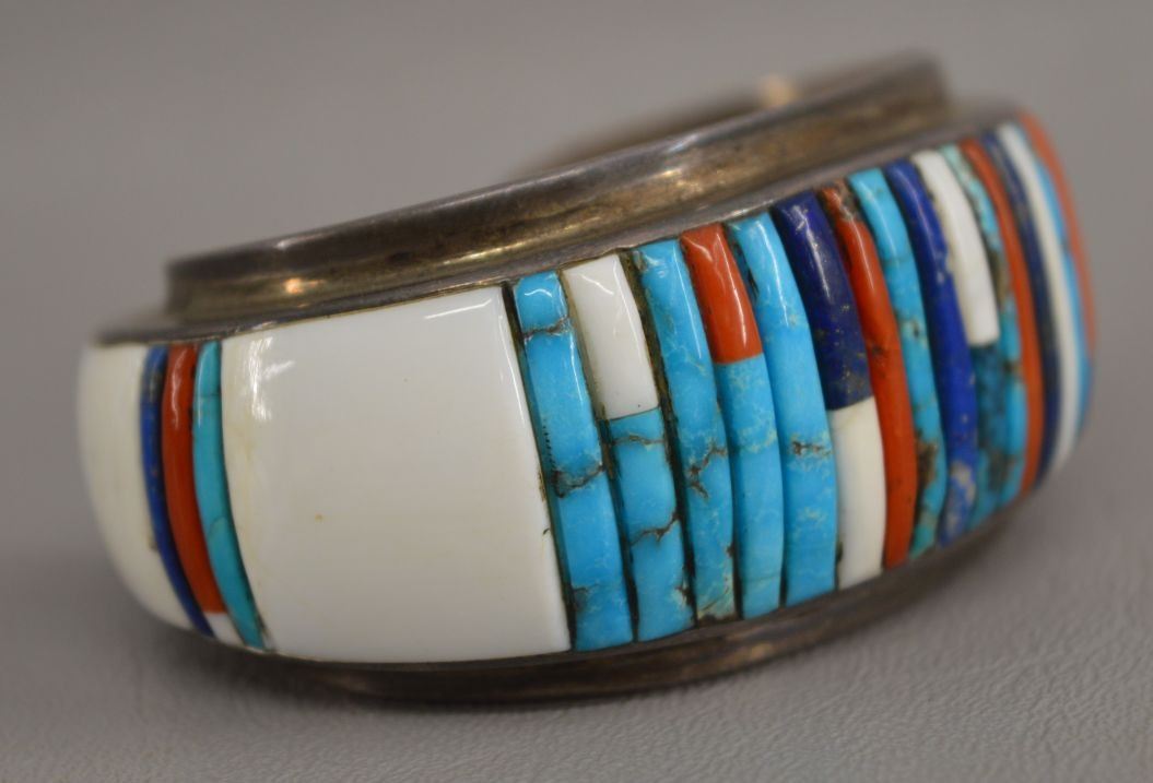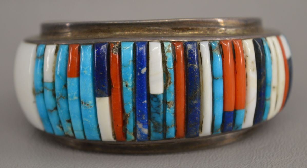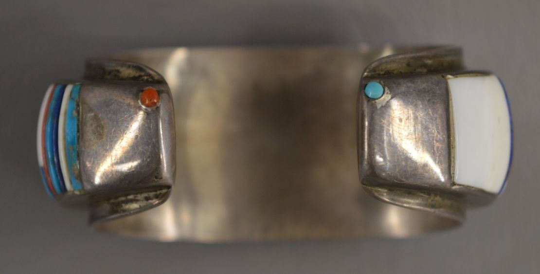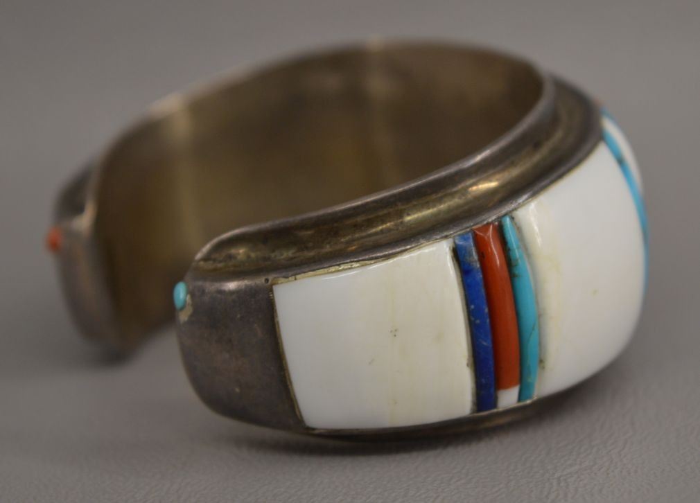 Damage that is visible in photos we do not note in description. Unless noted NO damage. All items have some amount of acceptable wear, scratches, nicks, etc. for their age. Bracelets measurements are width, inside circumference, opening. Weight on jewelry includes stones, leather from Concho belts and bolos removed when possible.