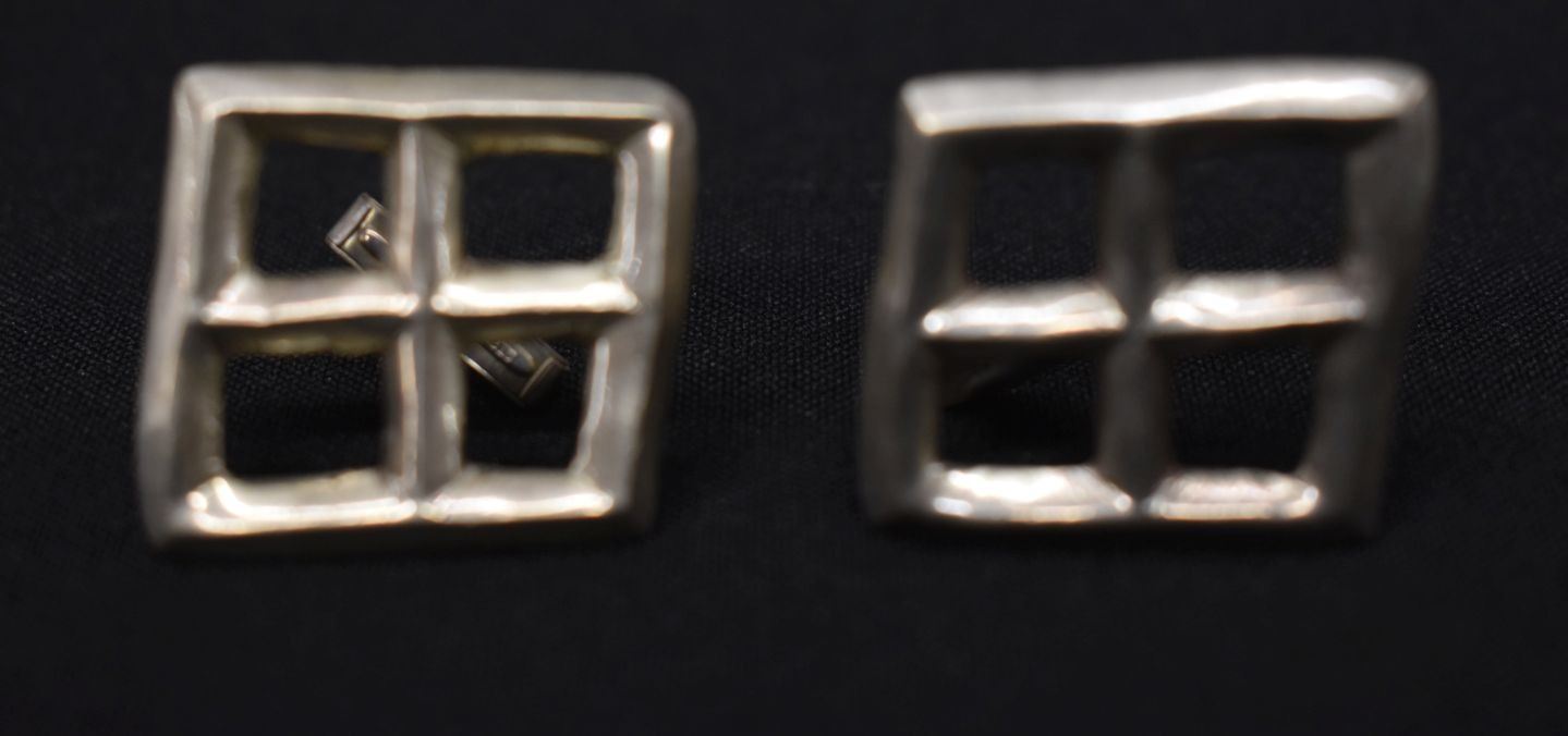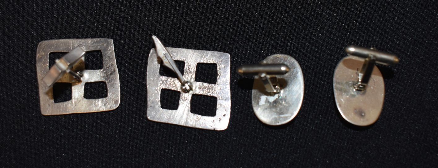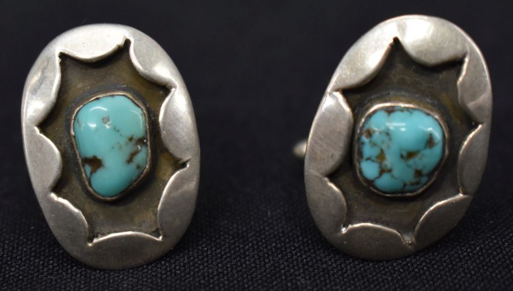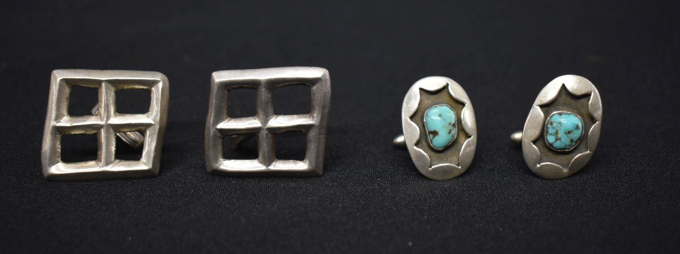 1970's Navajo Indian. Sterling silver and turquoise cuff links1'' x 1.25'' and 1'' x .75'' total weight 34 grams