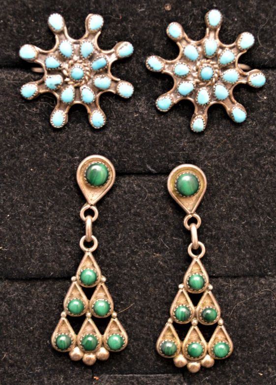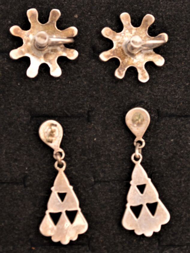 1970's Navajo Indian. Sterling silver and turquoise screw back1'' dia and pierced 1.75'' long total weight 13 grams
