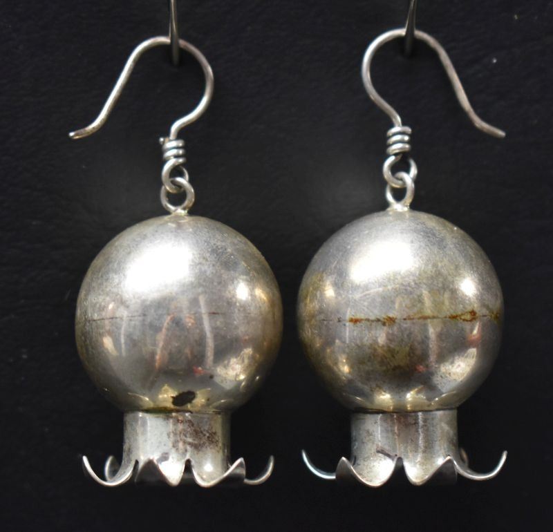 1970's Navajo Indian, sterling silver earrings, 1.5'' x 1'' total weight 22 grams