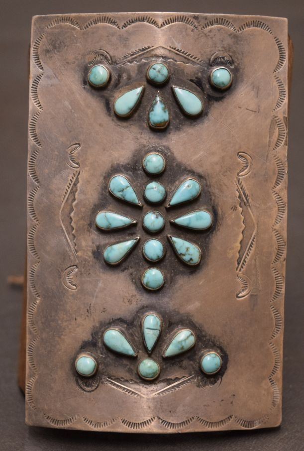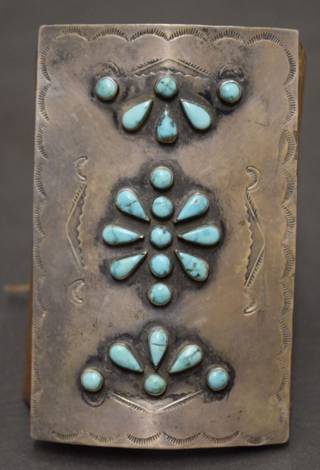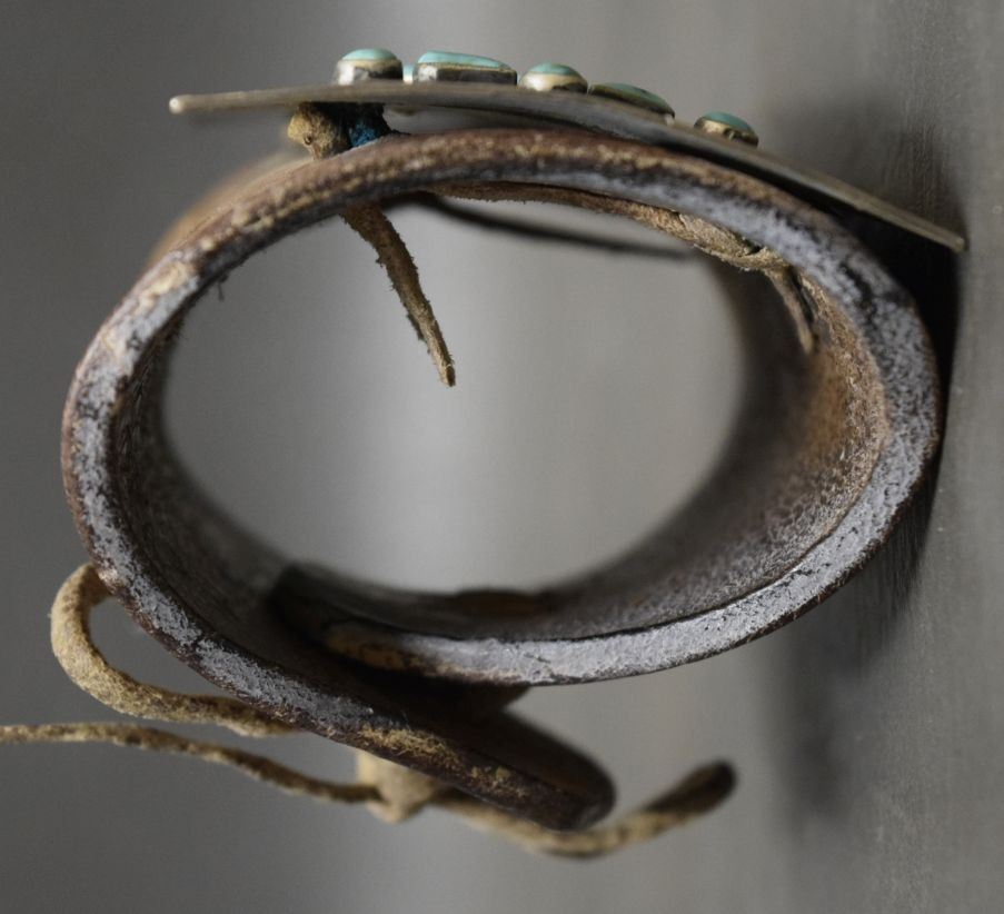 1960's Navajo Indian ketoh sterling silver and turquoise 4'' x 2.5'' leather is 4'' x 8''
