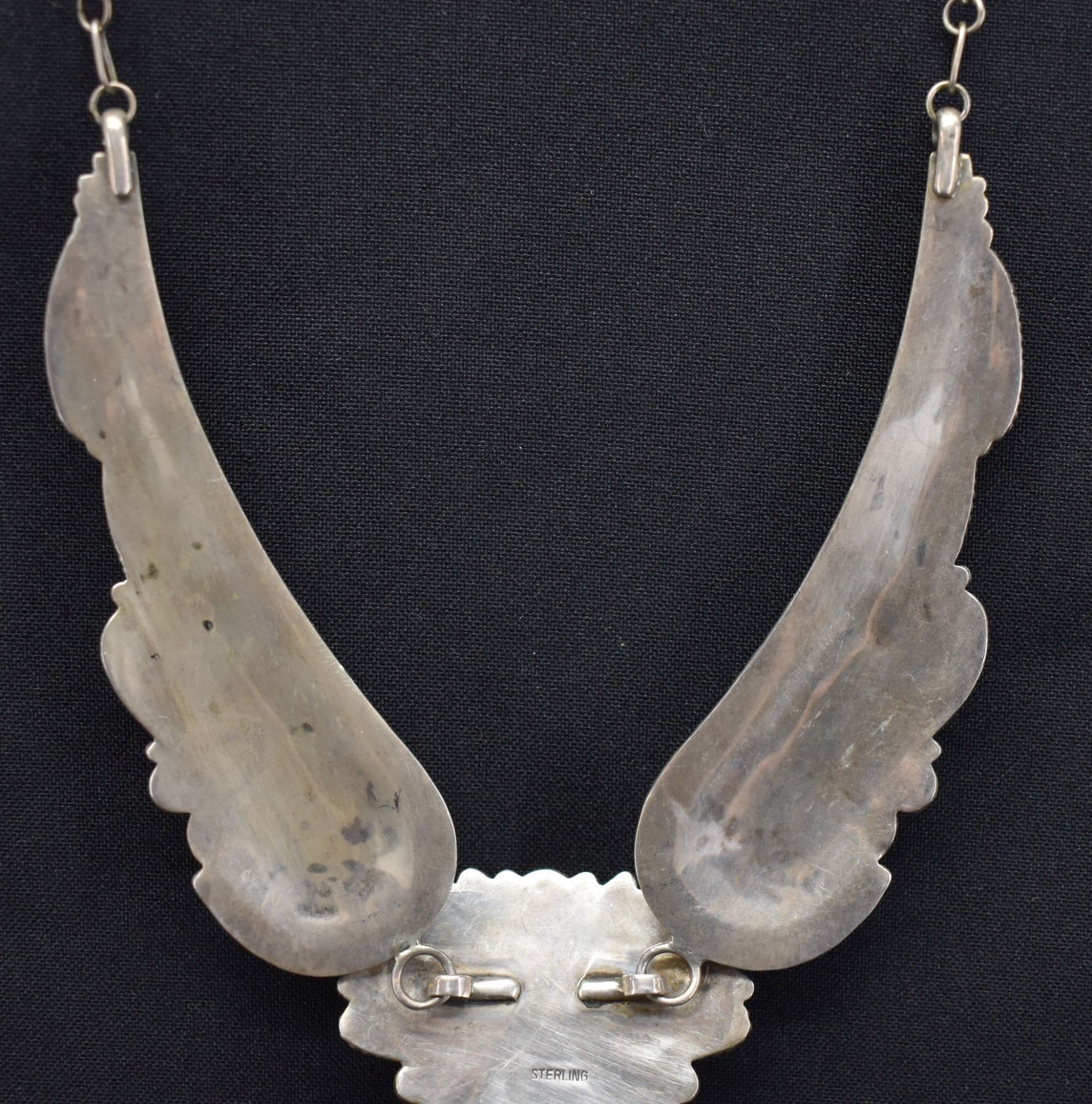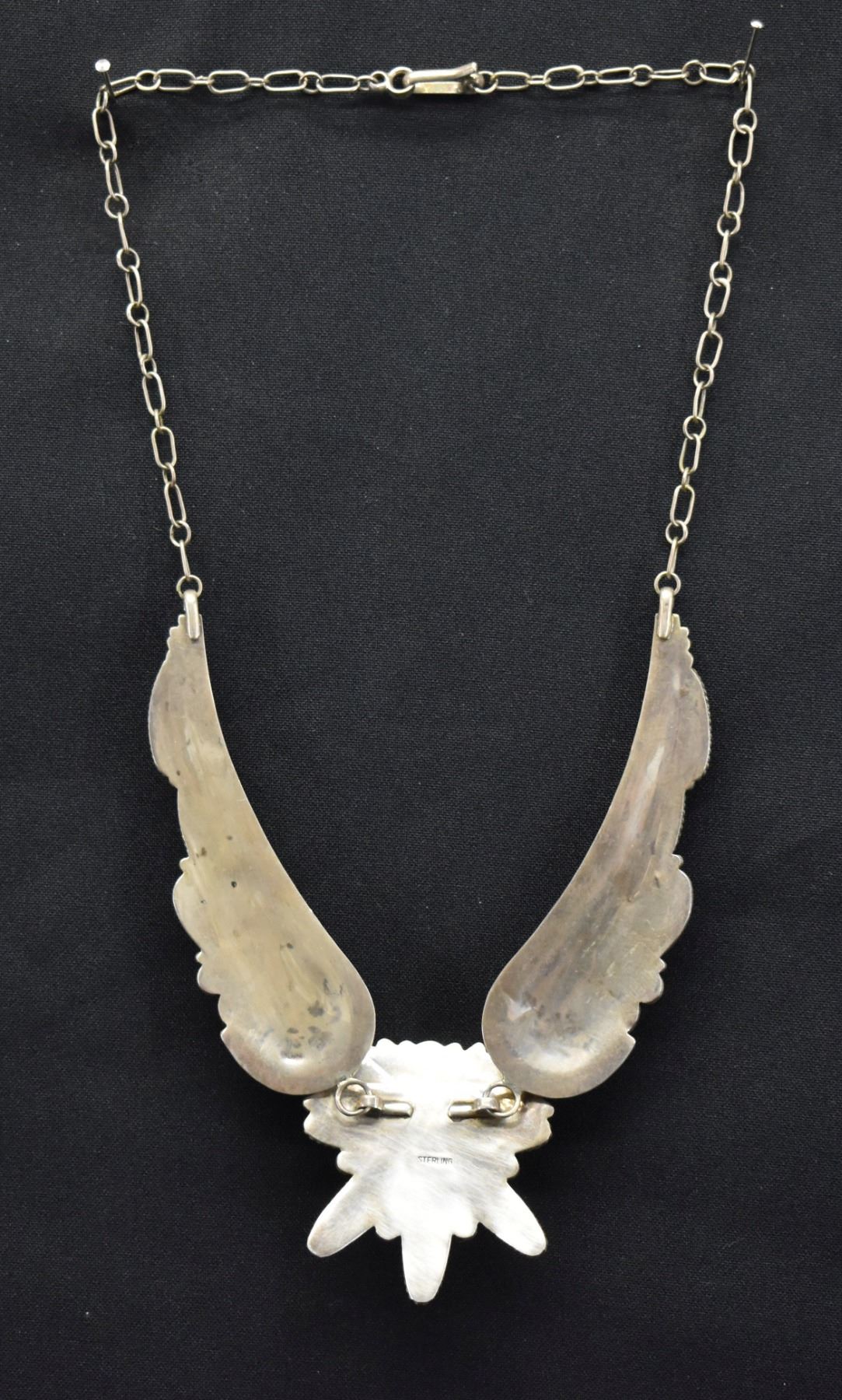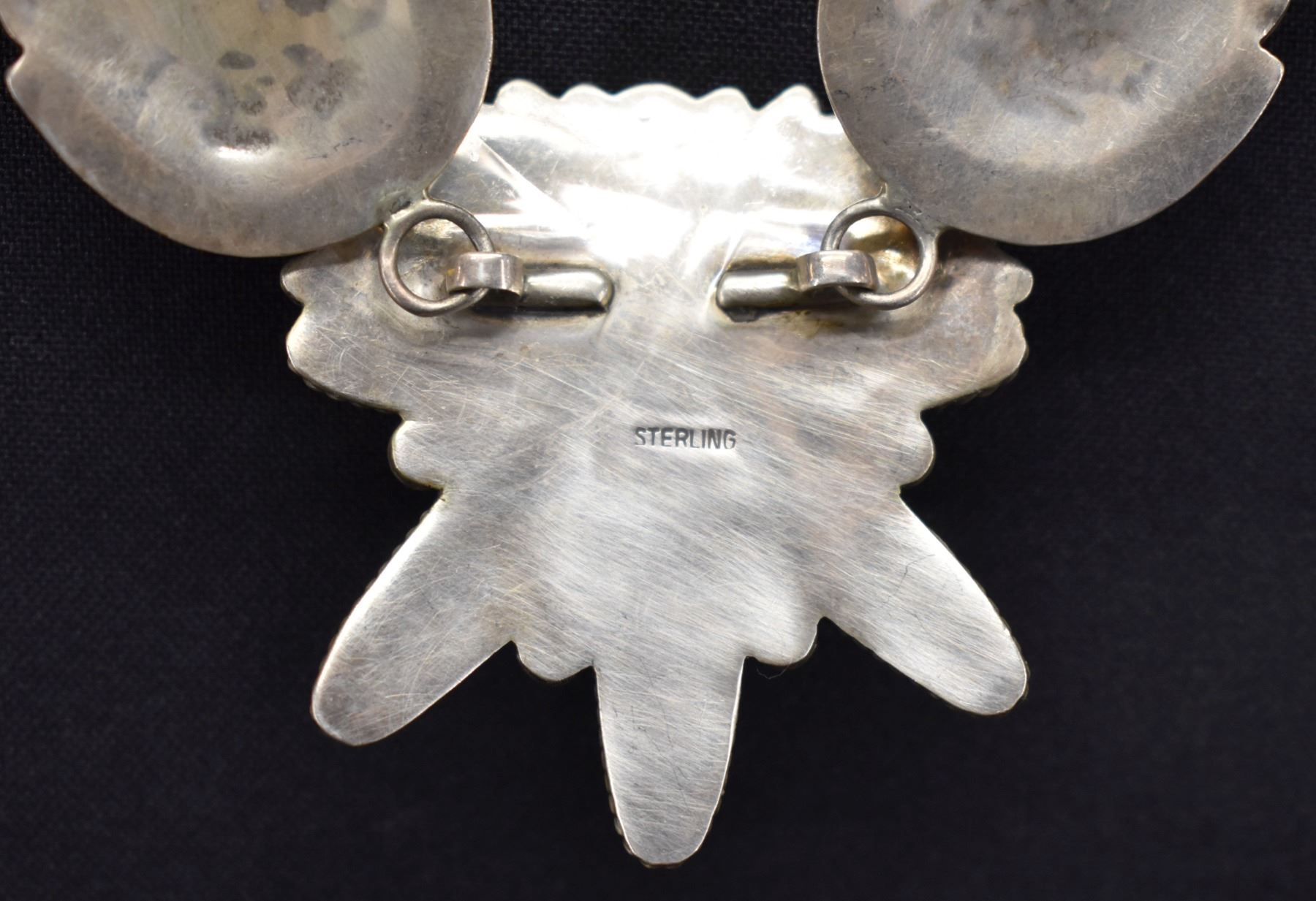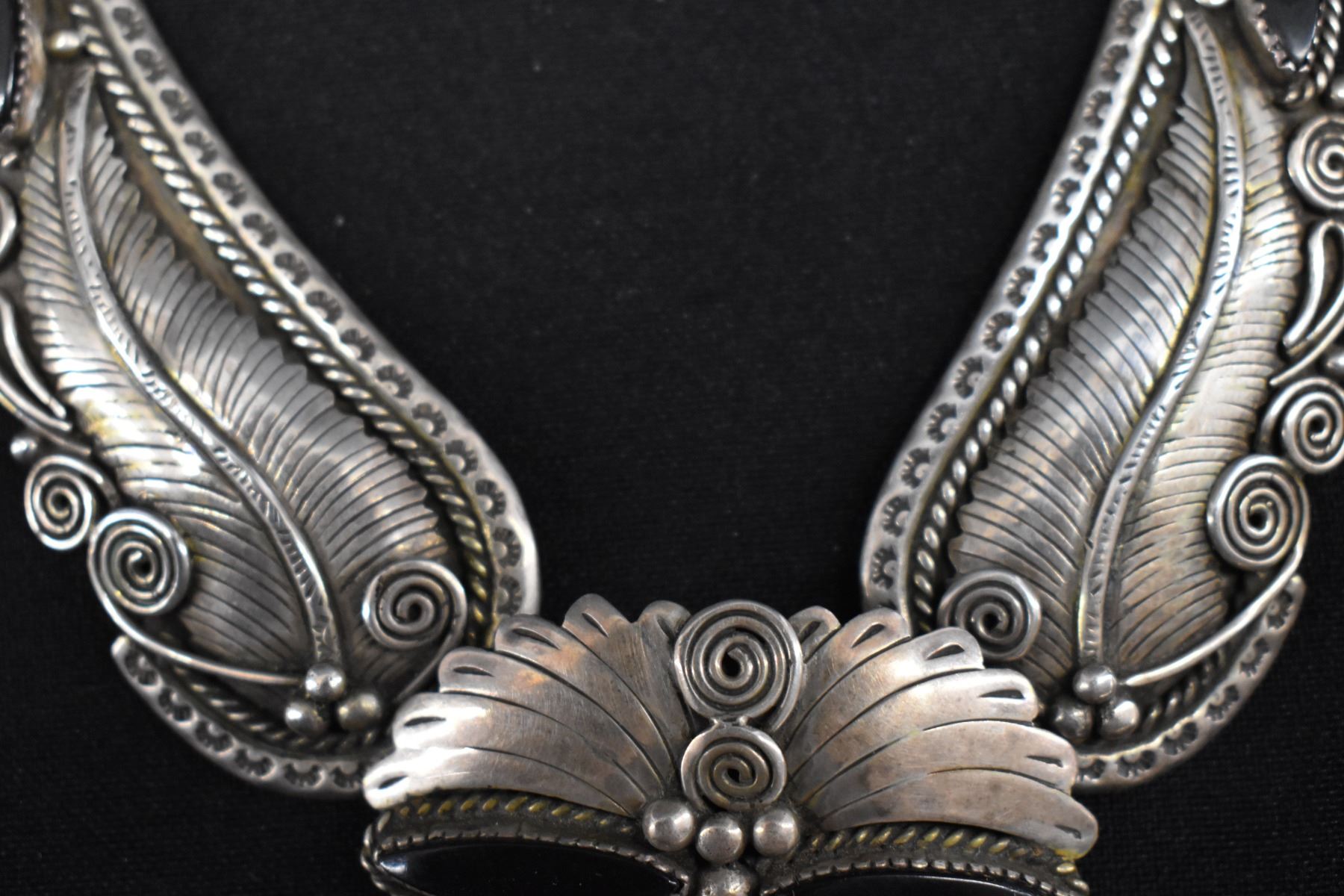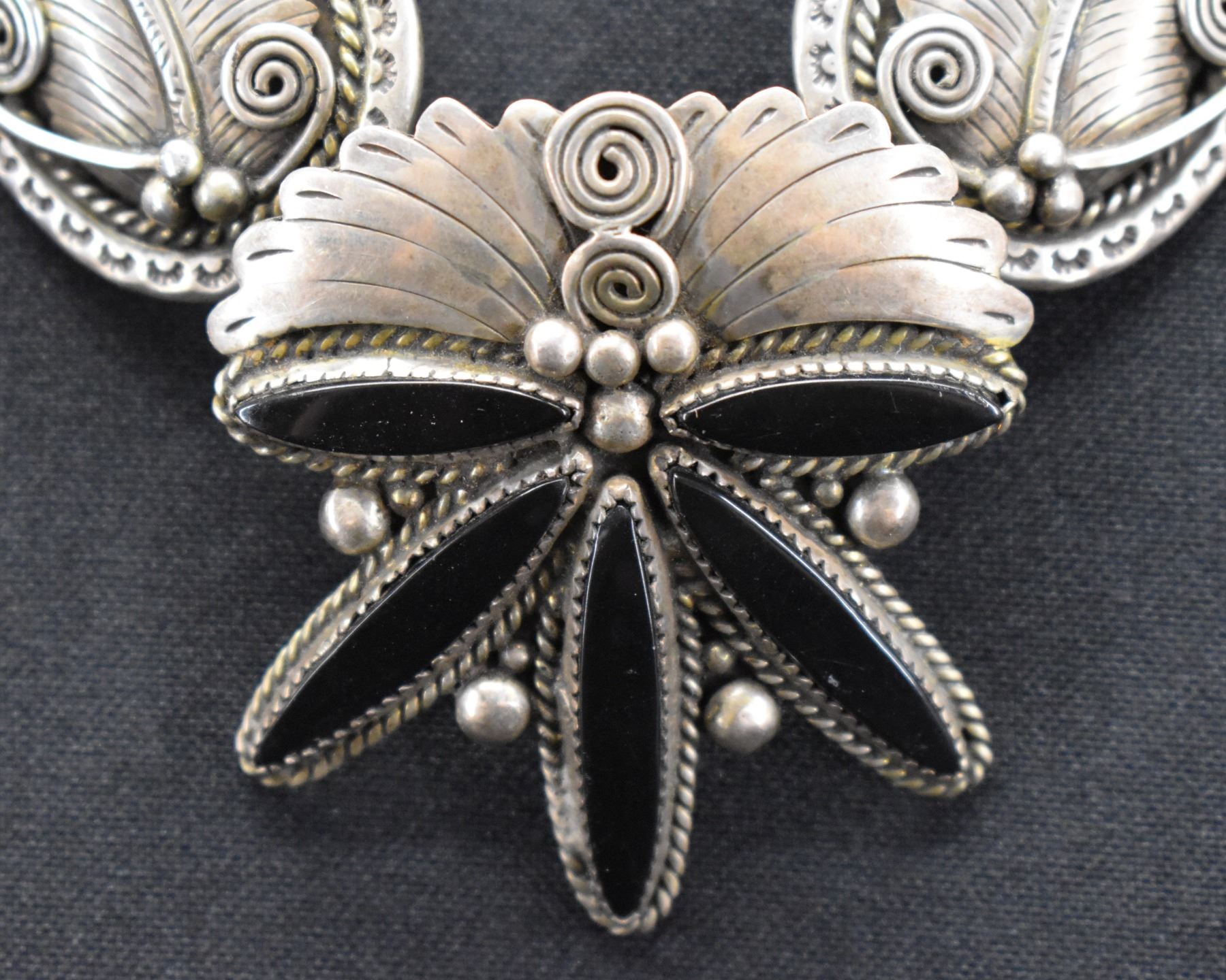 1970's Navajo Indian, sterling silver and jet necklace 20'' long. pendant 2'' x 2''. Total weight 82 grams