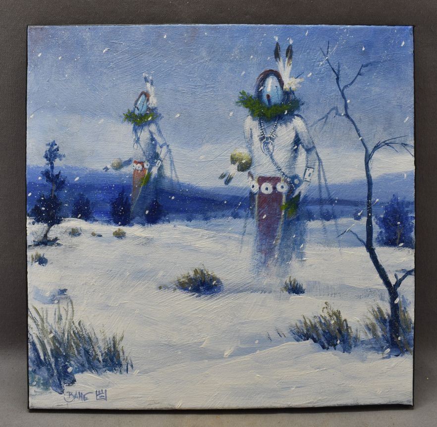2000's Navajo Indian. Original on canvas depicting Navajo Yeis. 14'' x 14'' signed Bahe.