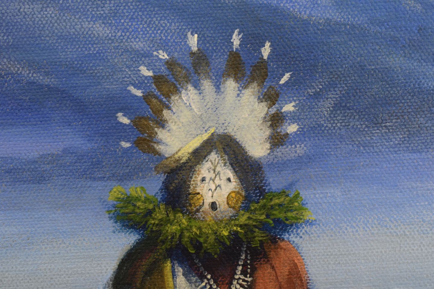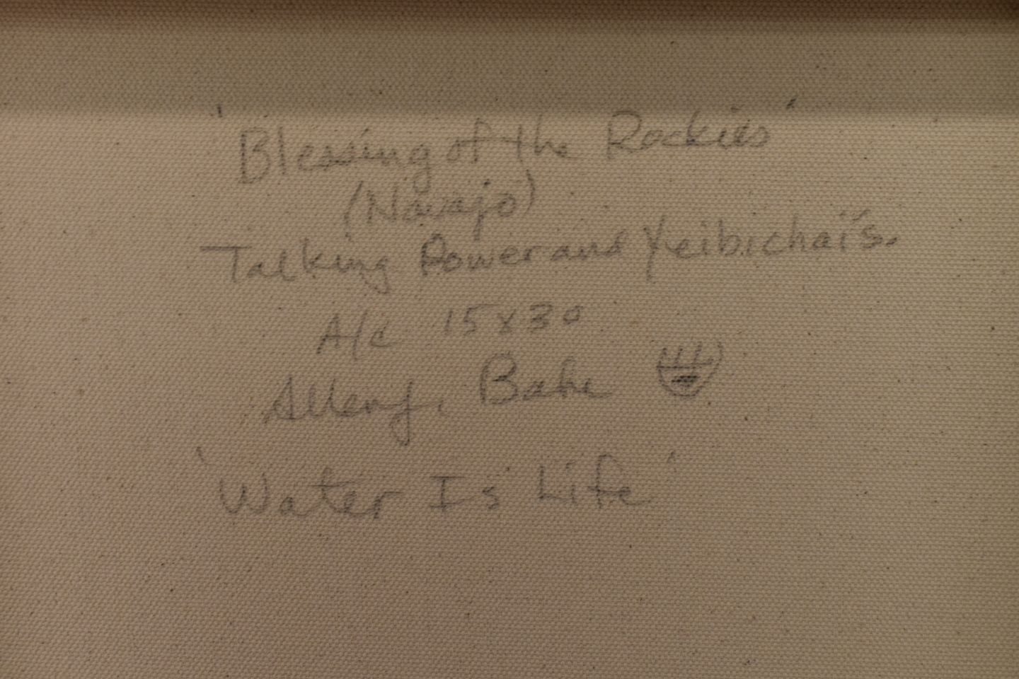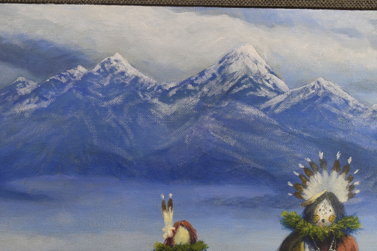 2000's Navajo Indian. Original on canvas depicting Yeibichai's. Signed Bahe . 15'' x 30'' *THIS ITEM WILL HAVE ADDITIONAL SHIPPING CHARGE*
