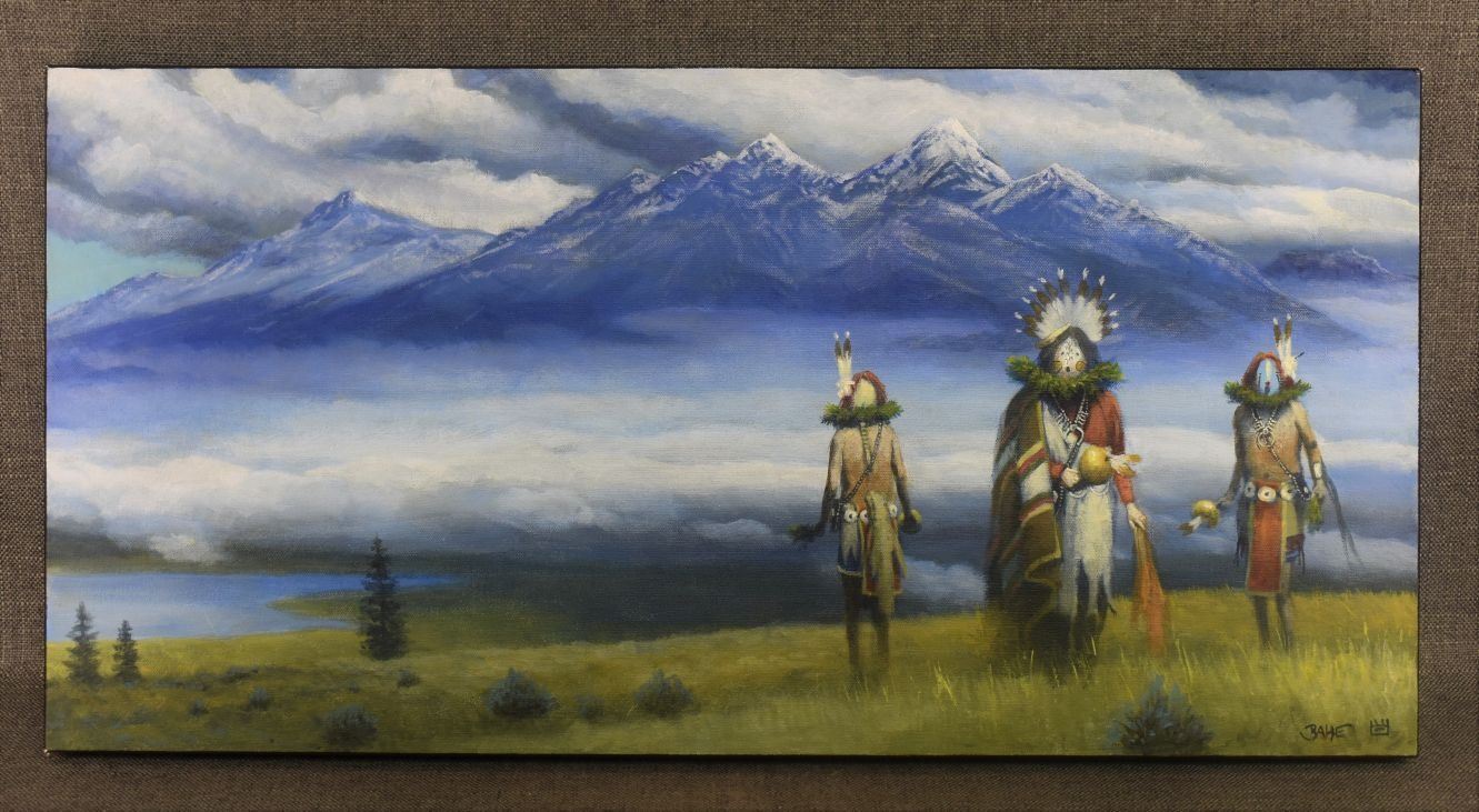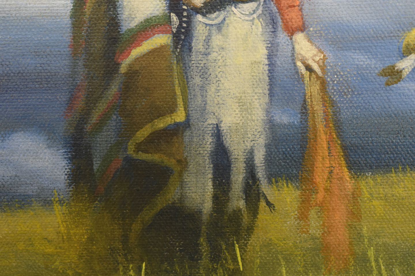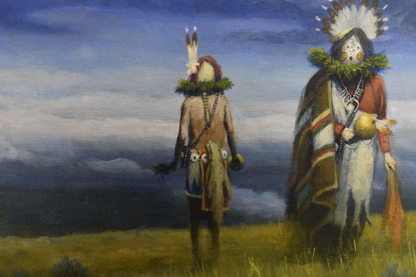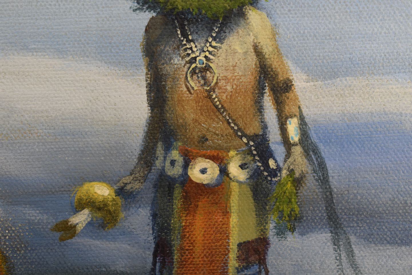 2000's Navajo Indian. Original on canvas depicting Yeibichai's. Signed Bahe . 15'' x 30'' *THIS ITEM WILL HAVE ADDITIONAL SHIPPING CHARGE*