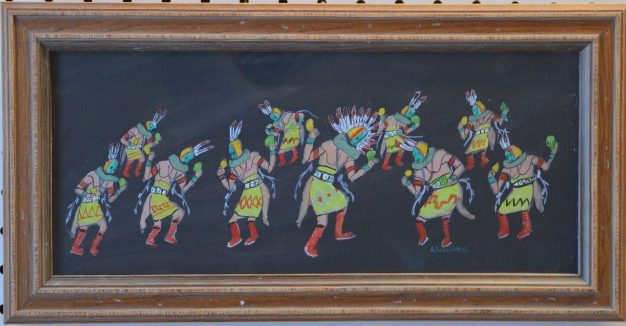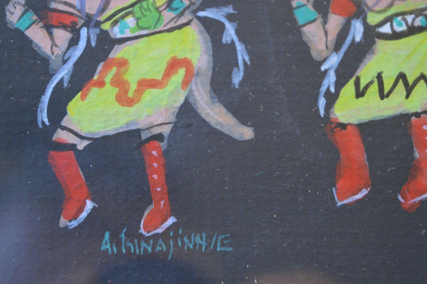 1970's Navajo Indian. Original on paper depicting Yeis, signed A. Tsinajinnie. 6'' x 12'' frame size 8'' x 15''