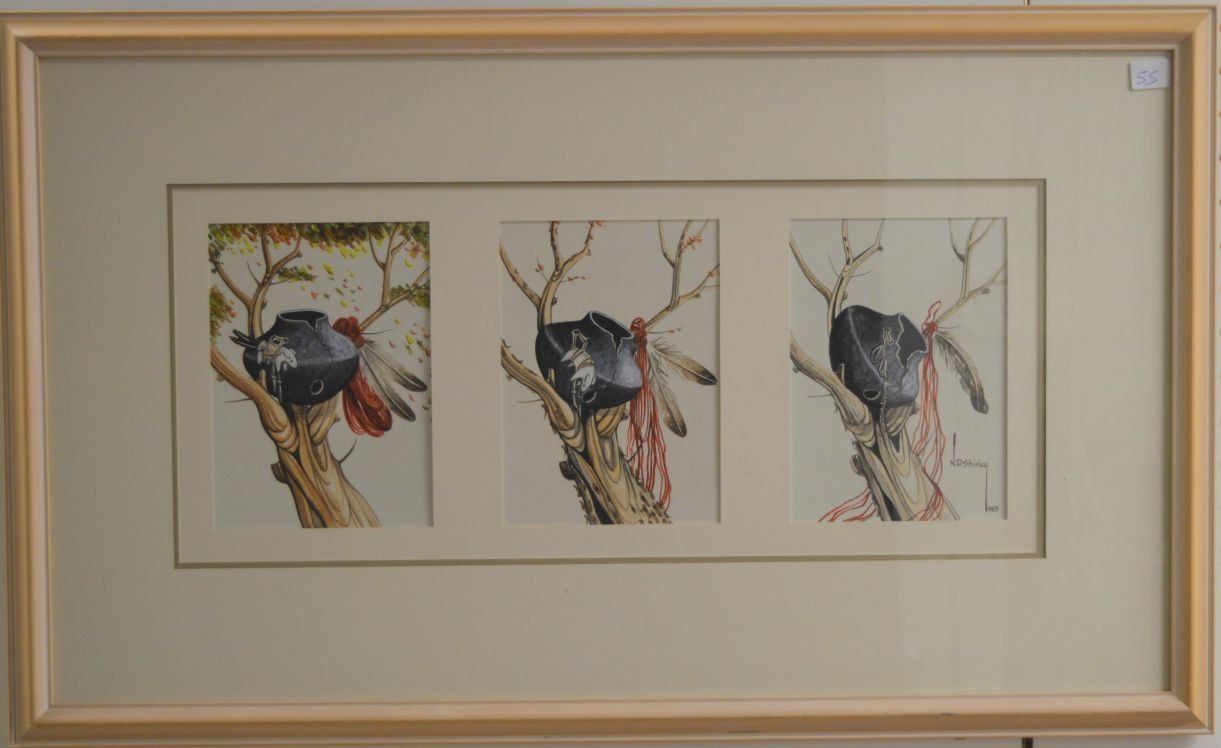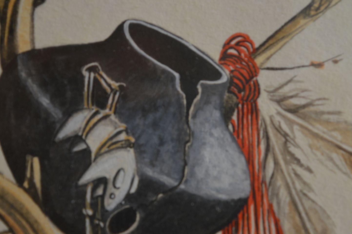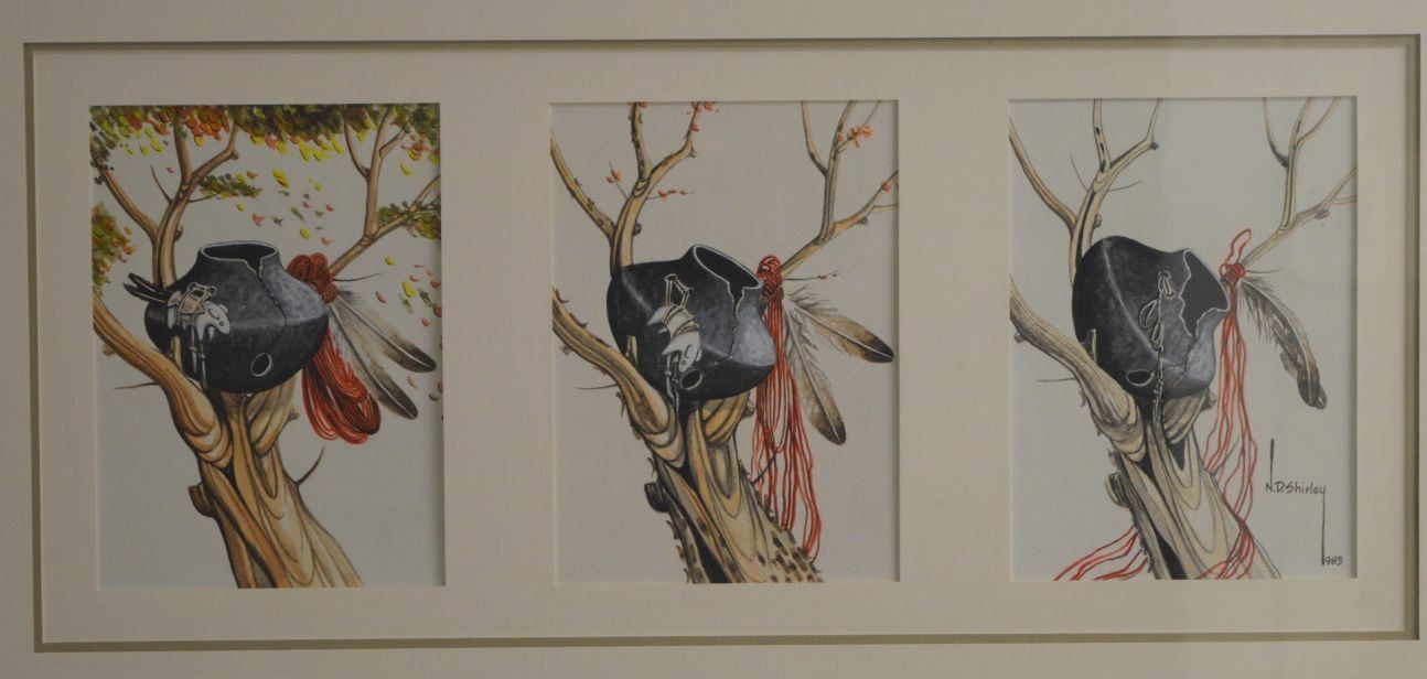 1983 Navajo Indian. Original on paper depicting fetish bowl signed ND Shirley. Images are 5'' x 7'' frame size 16'' x 27''