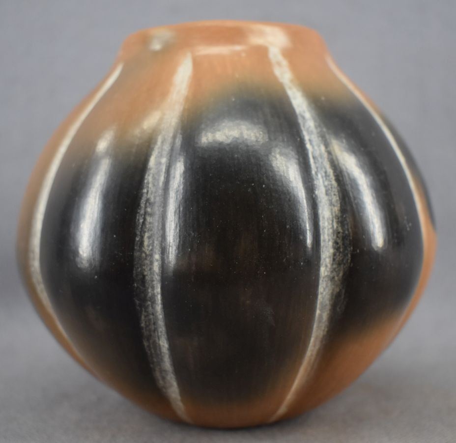 1990's Navajo Indian. Hand coiled and polished melon design pottery jar, signed Sue. 4.25'' x 5''